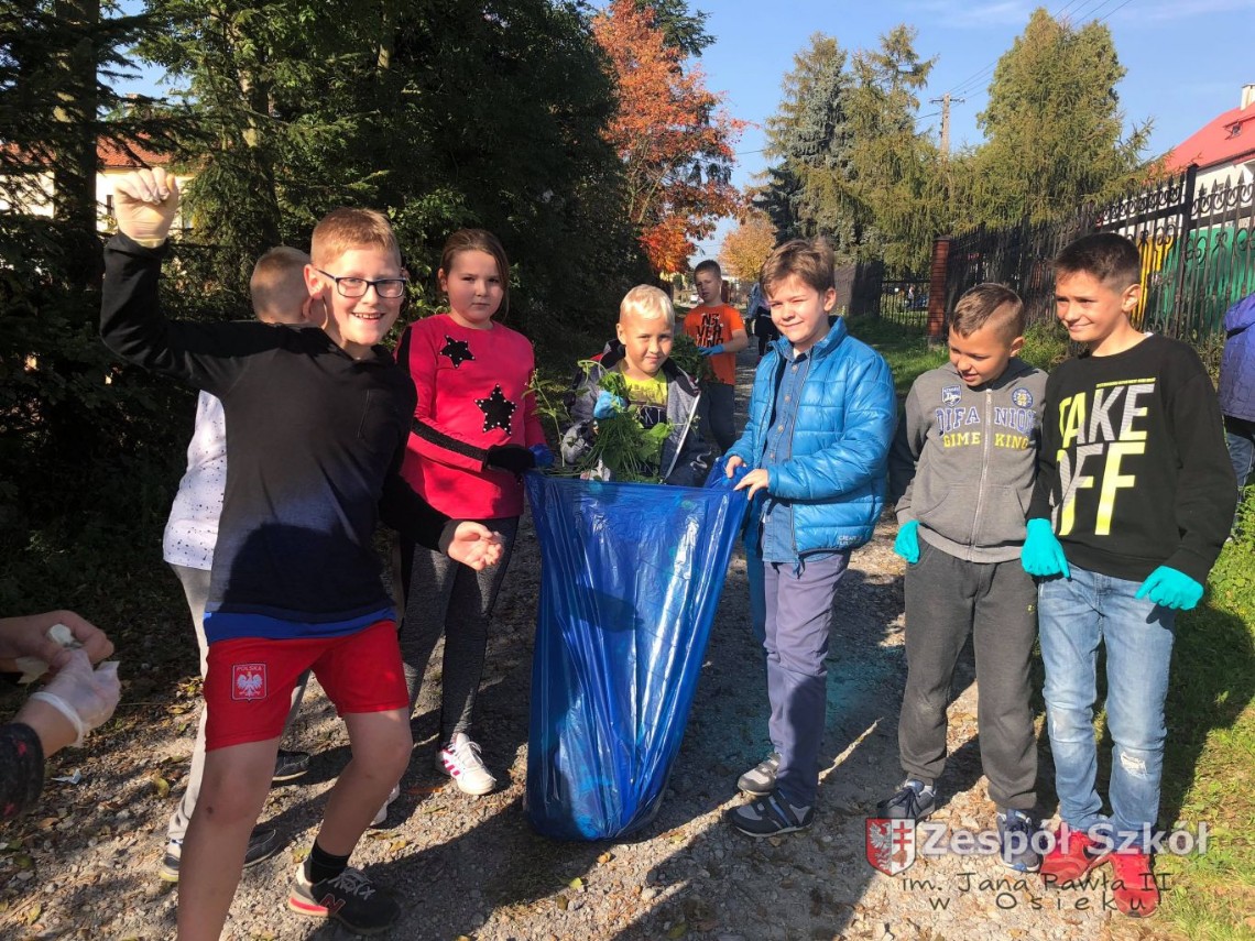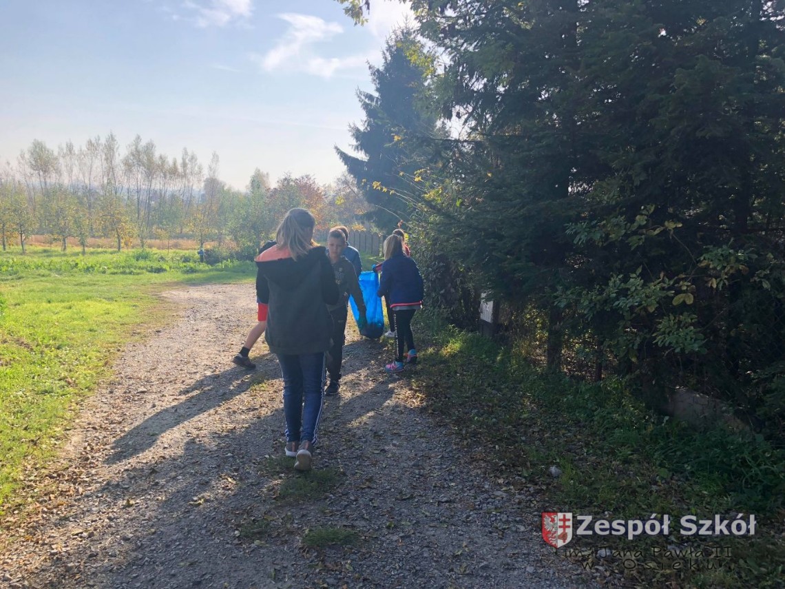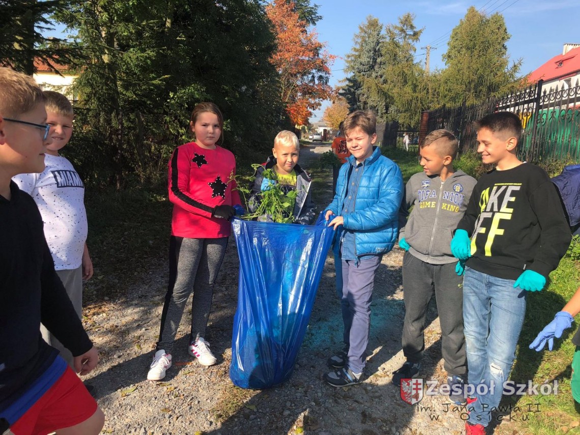 W sprzątanie najbliższej okolicy włączyli się wszyscy uczniowie Zespołu Szkół im. Jana Pawła II, ale szczególnie wzruszające było zaangażowanie najmłodszych. To oni pod opieką swoich nauczycieli dali dobry przykład dorosłym, jak sprzątać i segregować śmieci, a przez to dbać o swoje otoczenie.