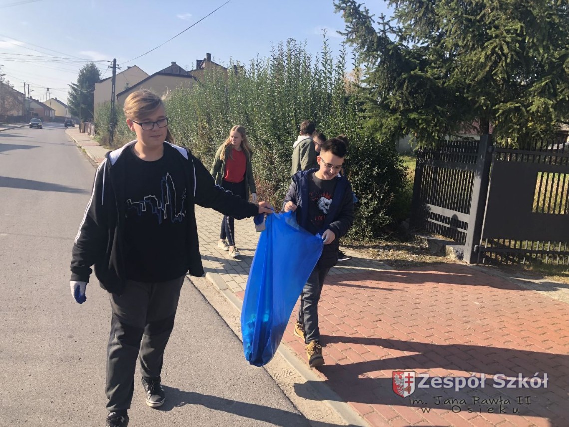 Rokrocznie Zespół Szkół im. Jana Pawła II uczestniczy w akcji zwanej „Sprzątaniem Świata” inicjowanej przez Fundację „Nasza Ziemia”. Tegoroczna, jubileuszowa 25 edycja odbyła się w naszej szkole w dniu 17 października 2018 roku, a jej hasłem przewodnim było: „Akcja – segregacja, 2x więcej, 2x czyściej”. Głównym celem tego przedsięwzięcia jest rozbudzenie świadomości ekologicznej uczniów i odpowiedzialności za środowisko naturalne. To także zachęta do działań na rzecz ochrony środowiska oraz poszanowania zasobów naturalnych i racjonalnej gospodarki odpadami.