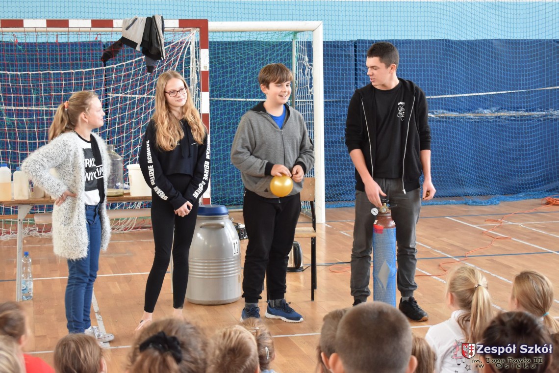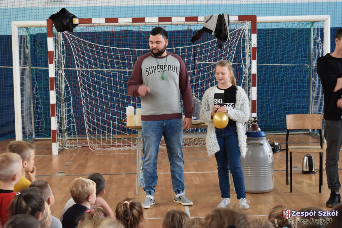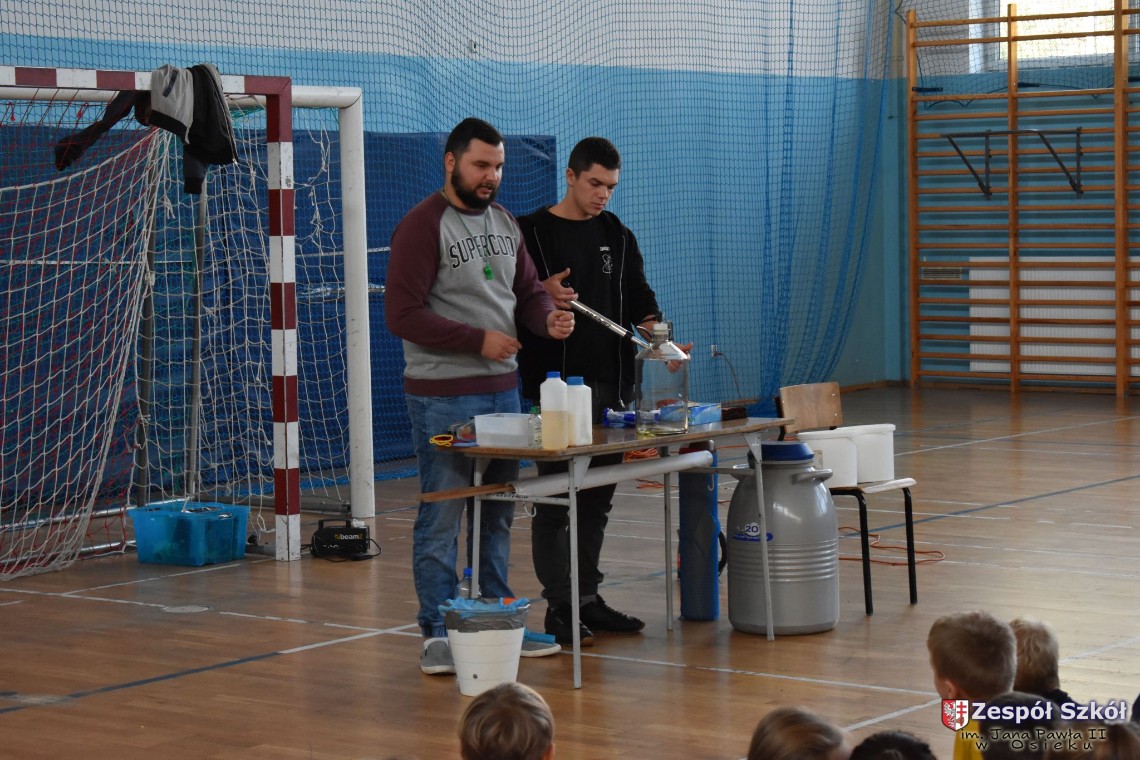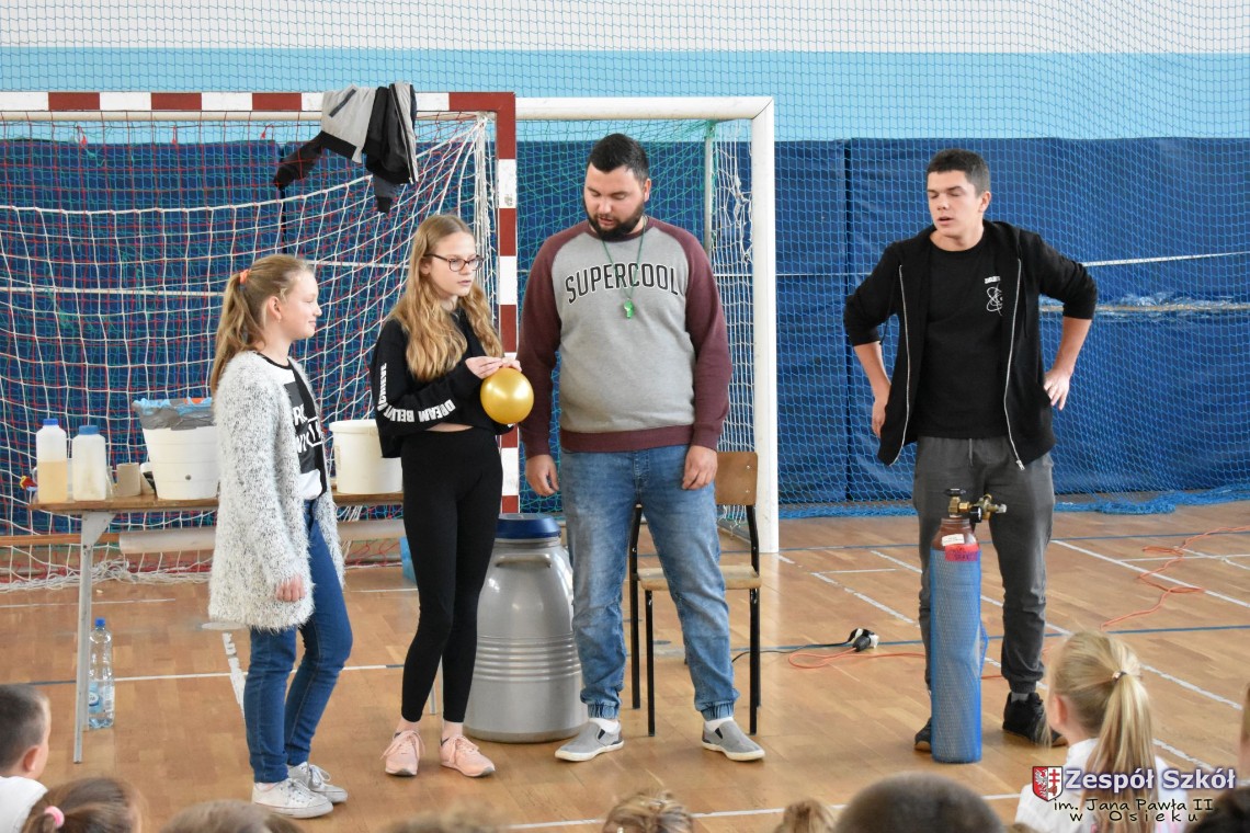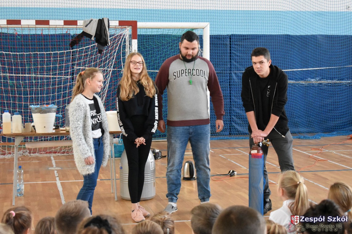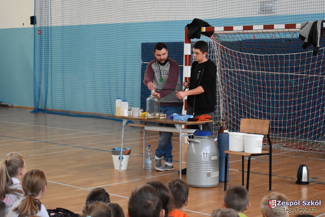 W dniu 08.11.2018 r. uczniowie ze wszystkich klas szkoły podstawowej oglądali i uczestniczyli w spektaklu „Fizyka wszędzie styka”, który był przedstawiony prze grupę Zaelektryzowani. Jest to grupa specjalizująca się w propagowaniu atrakcyjnej edukacji poprzez przedstawianie interaktywnych spektakli, których celem jest zaprezentowanie w sposób zabawny wybranych treści edukacyjnych z przyrody, fizyki i chemii. W ramach spektaklu dzieci miały okazję obejrzeć eksperymenty i dowiedzieć się na czym polegają: powstawanie wirów pierścieniowych, wytwarzanie wodoru, zabawy z helem i ciekłym azotem. Była to świetna zabaw dla uczestników, którzy w czynny sposób brali udział w wydarzeniach i eksperymentach.