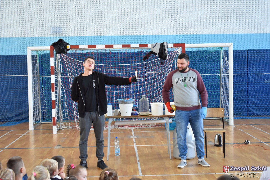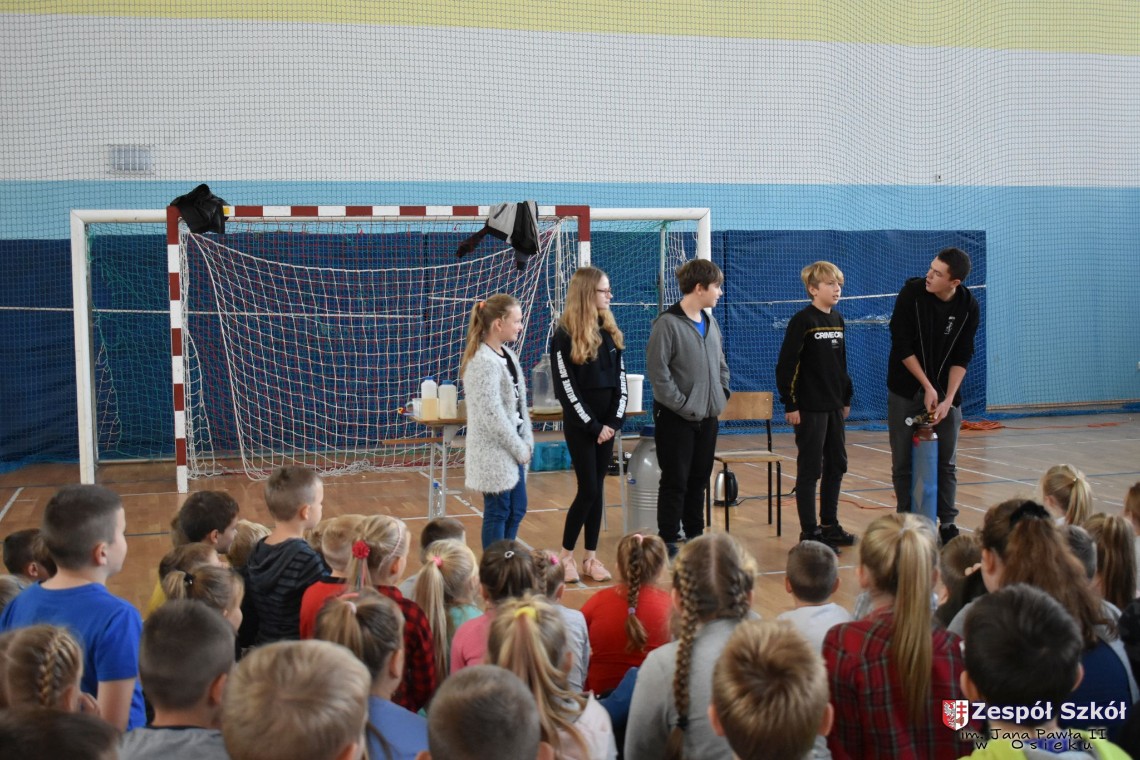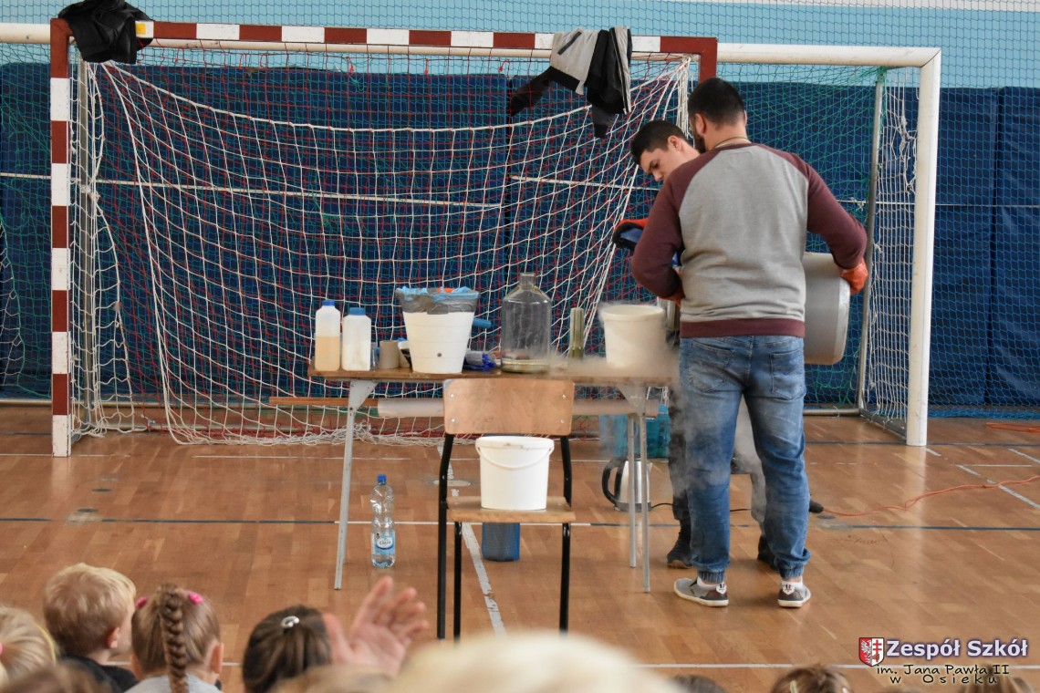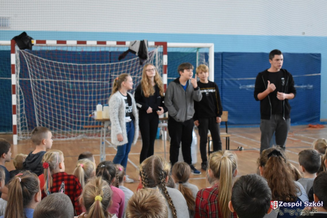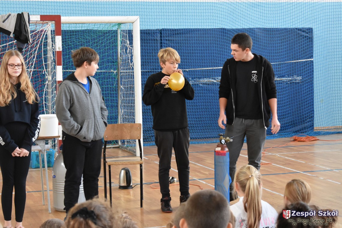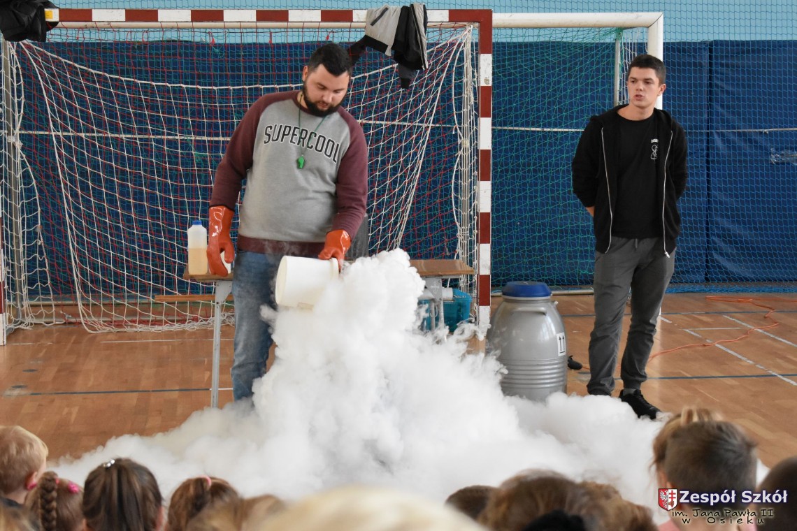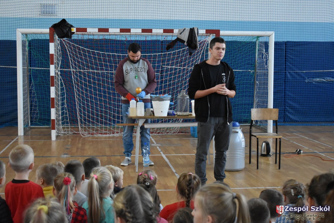 W dniu 08.11.2018 r. uczniowie ze wszystkich klas szkoły podstawowej oglądali i uczestniczyli w spektaklu „Fizyka wszędzie styka”, który był przedstawiony prze grupę Zaelektryzowani. Jest to grupa specjalizująca się w propagowaniu atrakcyjnej edukacji poprzez przedstawianie interaktywnych spektakli, których celem jest zaprezentowanie w sposób zabawny wybranych treści edukacyjnych z przyrody, fizyki i chemii. W ramach spektaklu dzieci miały okazję obejrzeć eksperymenty i dowiedzieć się na czym polegają: powstawanie wirów pierścieniowych, wytwarzanie wodoru, zabawy z helem i ciekłym azotem. Była to świetna zabaw dla uczestników, którzy w czynny sposób brali udział w wydarzeniach i eksperymentach.