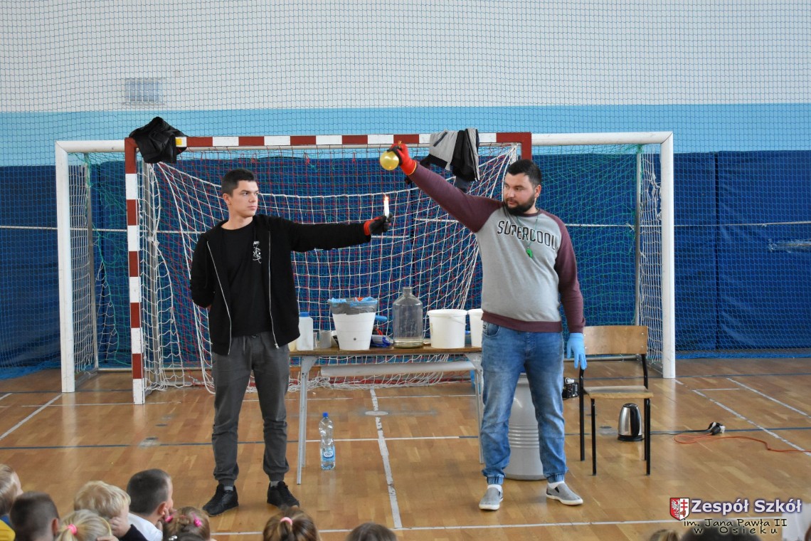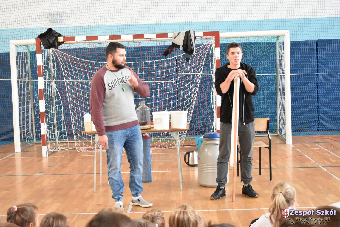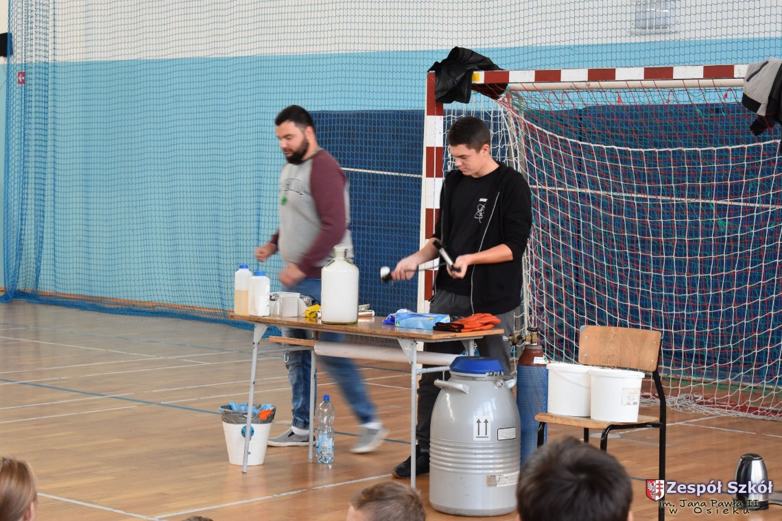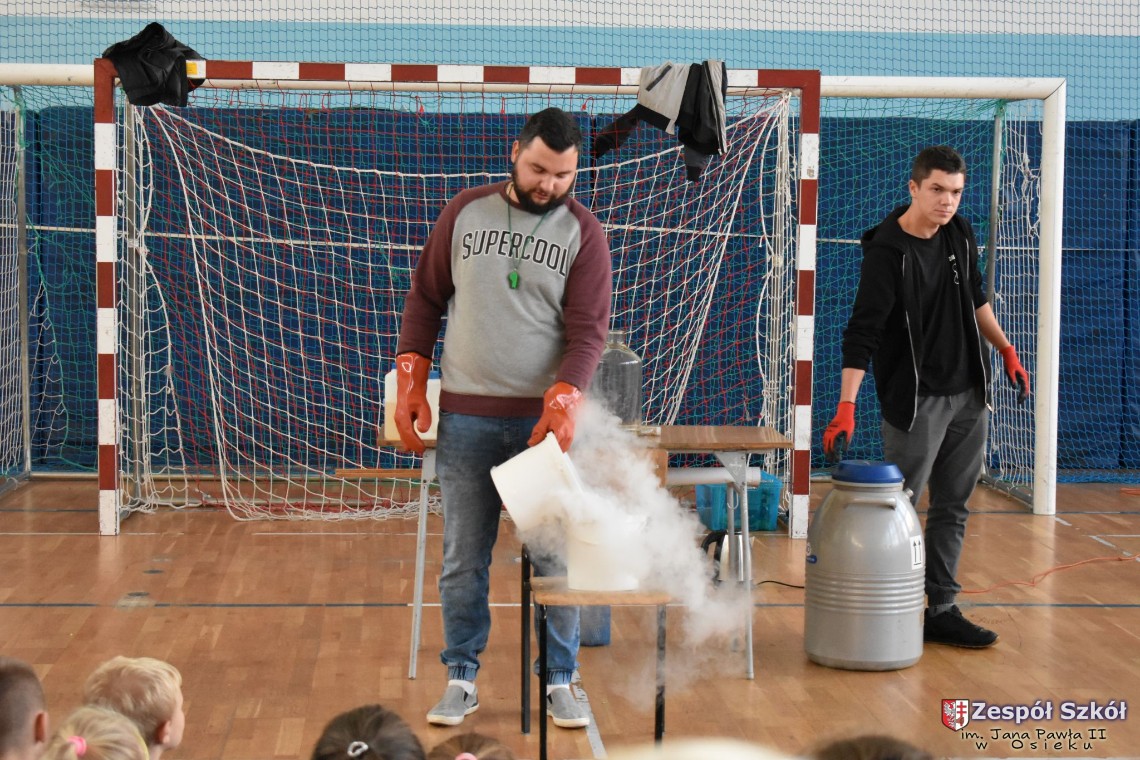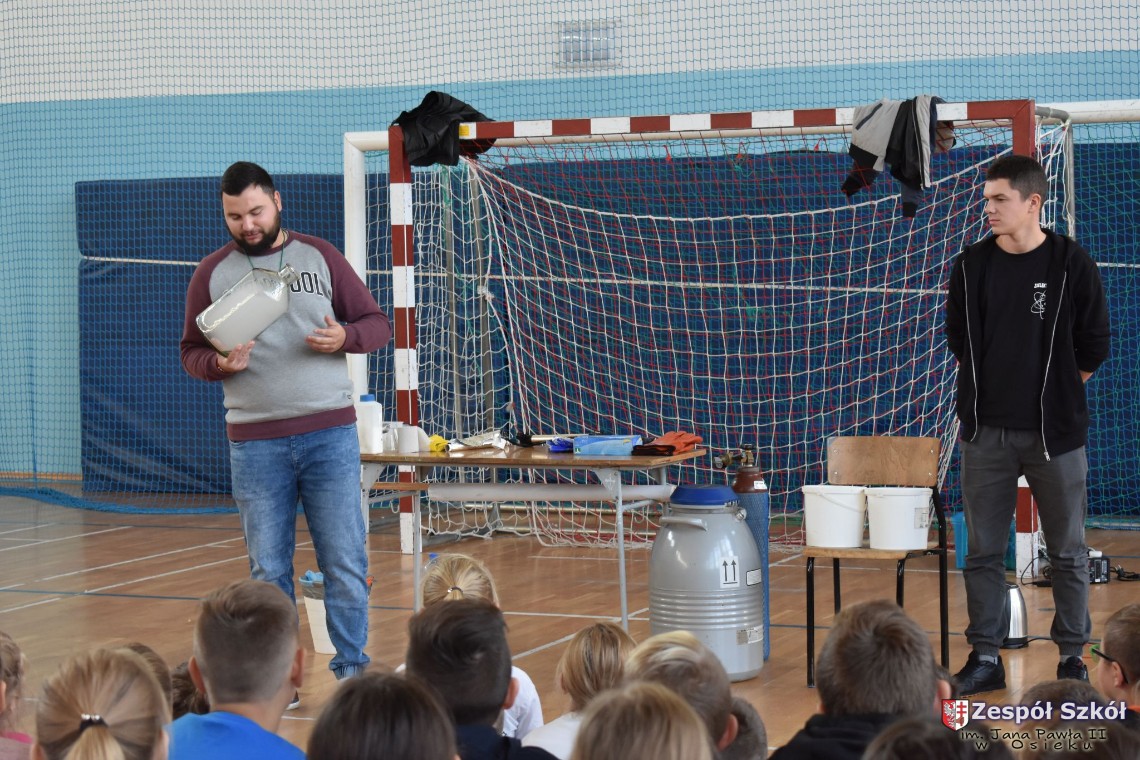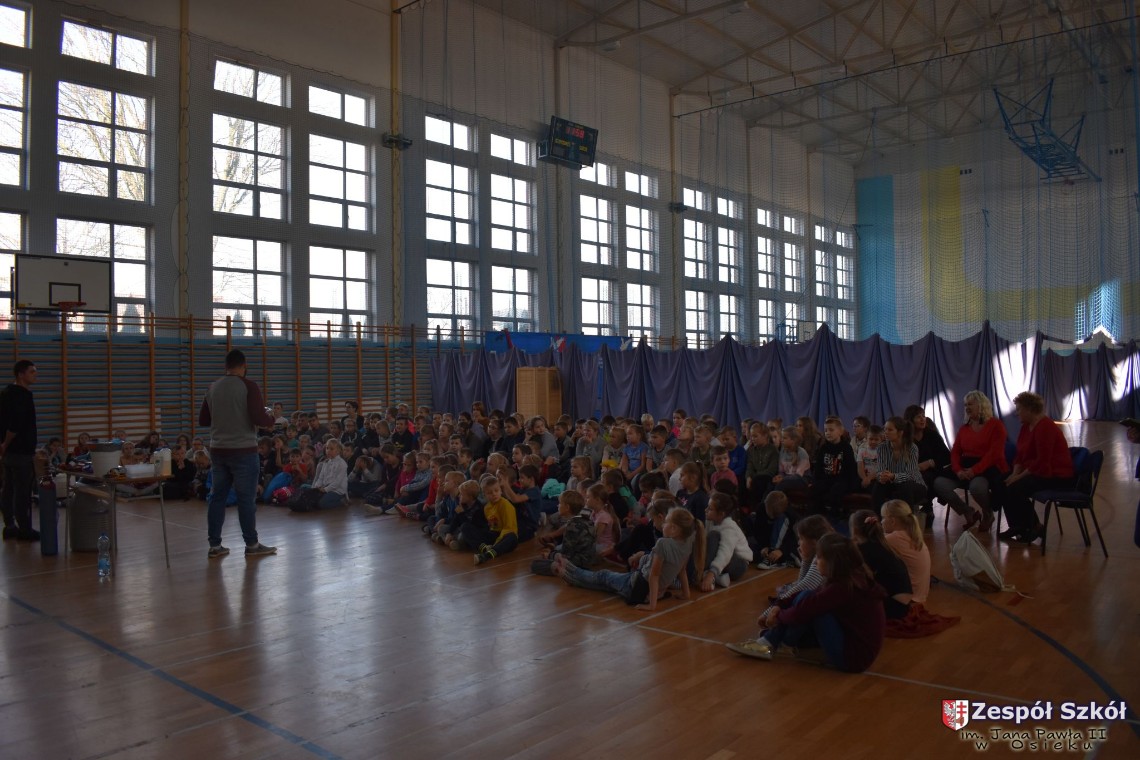 W dniu 08.11.2018 r. uczniowie ze wszystkich klas szkoły podstawowej oglądali i uczestniczyli w spektaklu „Fizyka wszędzie styka”, który był przedstawiony prze grupę Zaelektryzowani. Jest to grupa specjalizująca się w propagowaniu atrakcyjnej edukacji poprzez przedstawianie interaktywnych spektakli, których celem jest zaprezentowanie w sposób zabawny wybranych treści edukacyjnych z przyrody, fizyki i chemii. W ramach spektaklu dzieci miały okazję obejrzeć eksperymenty i dowiedzieć się na czym polegają: powstawanie wirów pierścieniowych, wytwarzanie wodoru, zabawy z helem i ciekłym azotem. Była to świetna zabaw dla uczestników, którzy w czynny sposób brali udział w wydarzeniach i eksperymentach.