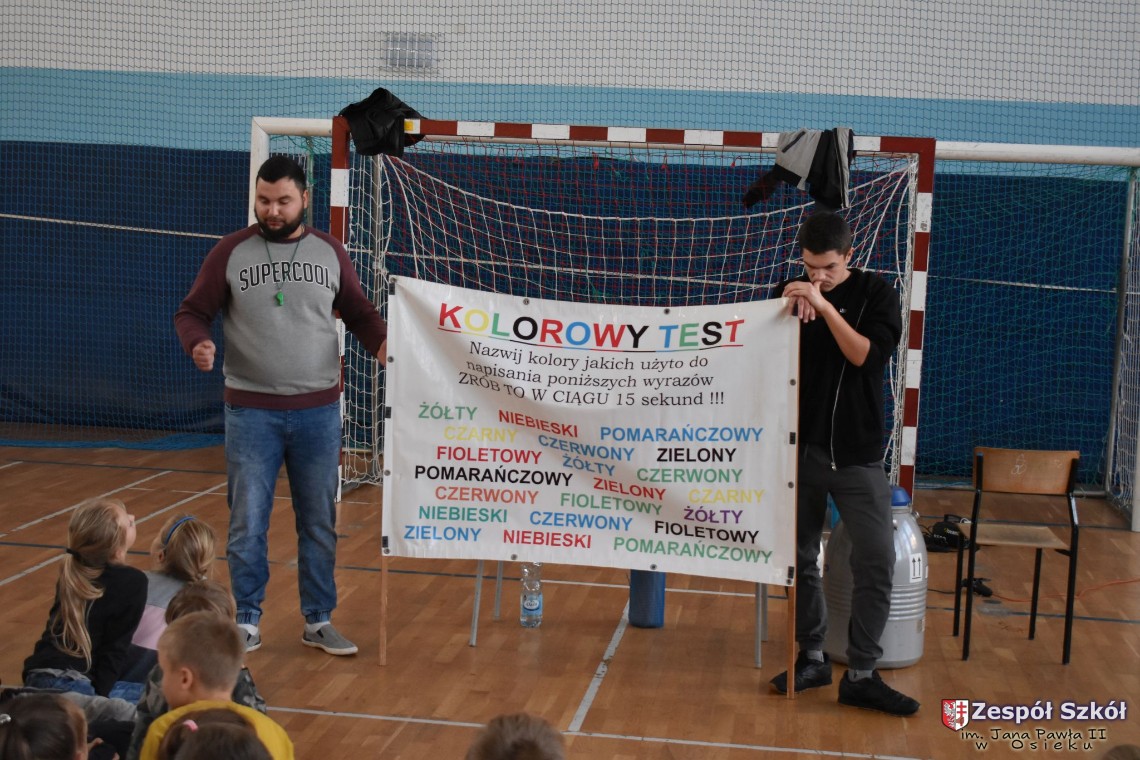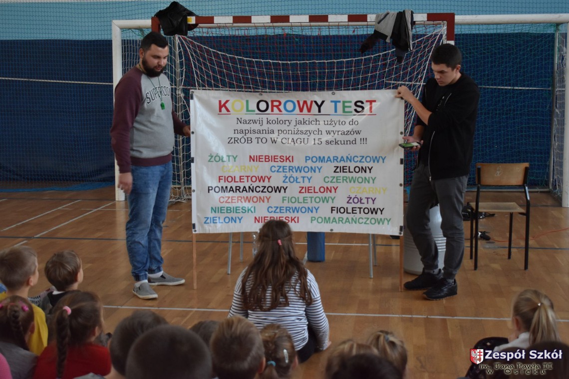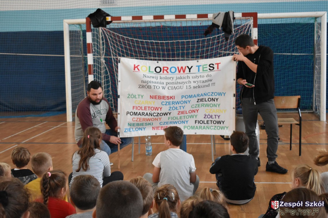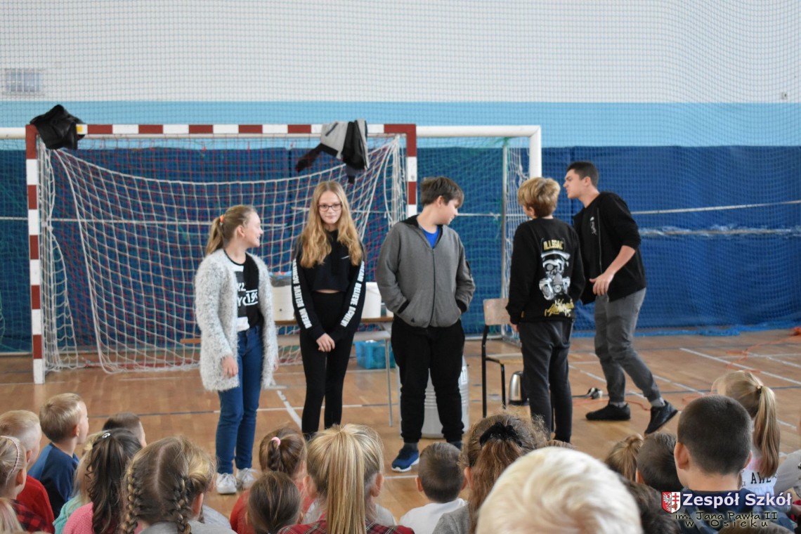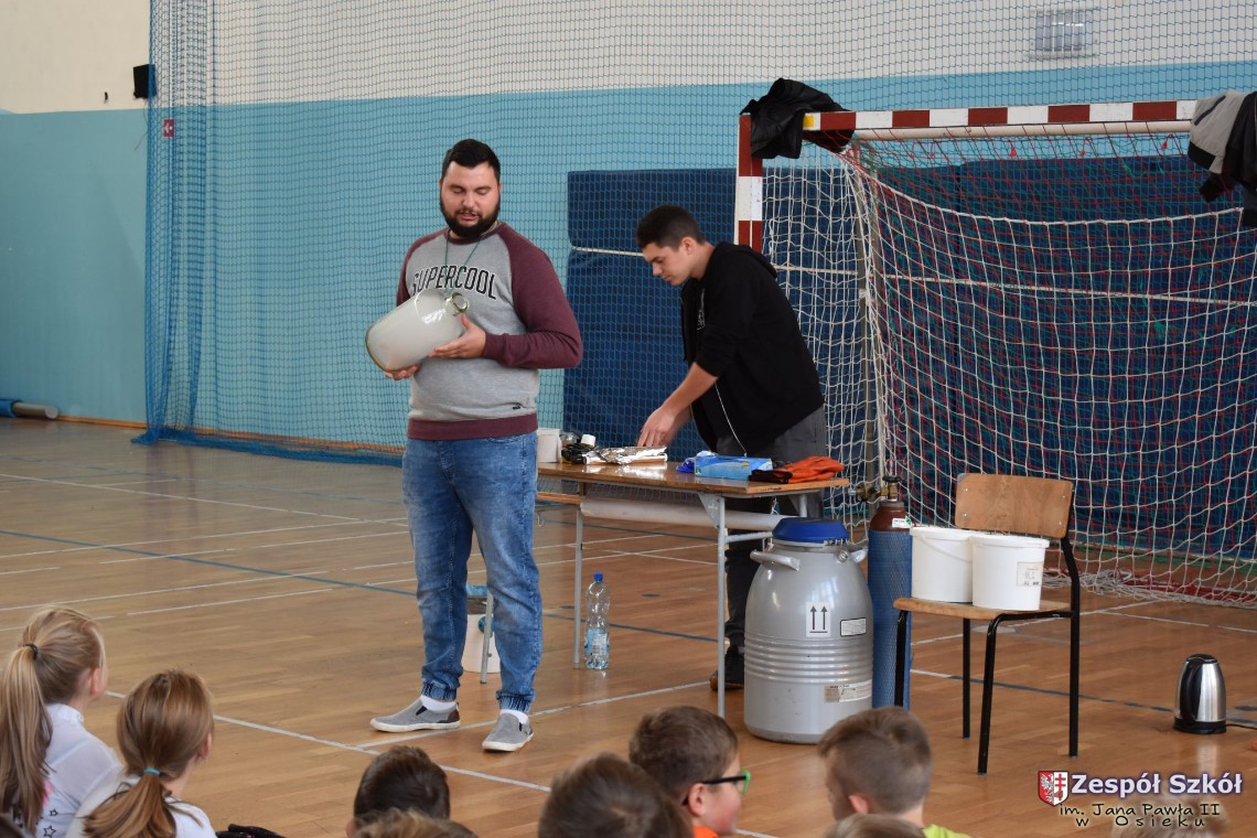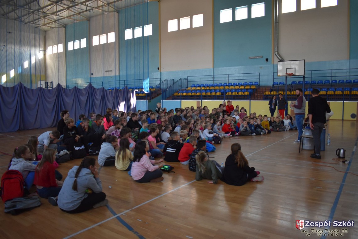 W dniu 08.11.2018 r. uczniowie ze wszystkich klas szkoły podstawowej oglądali i uczestniczyli w spektaklu „Fizyka wszędzie styka”, który był przedstawiony prze grupę Zaelektryzowani. Jest to grupa specjalizująca się w propagowaniu atrakcyjnej edukacji poprzez przedstawianie interaktywnych spektakli, których celem jest zaprezentowanie w sposób zabawny wybranych treści edukacyjnych z przyrody, fizyki i chemii. W ramach spektaklu dzieci miały okazję obejrzeć eksperymenty i dowiedzieć się na czym polegają: powstawanie wirów pierścieniowych, wytwarzanie wodoru, zabawy z helem i ciekłym azotem. Była to świetna zabaw dla uczestników, którzy w czynny sposób brali udział w wydarzeniach i eksperymentach.