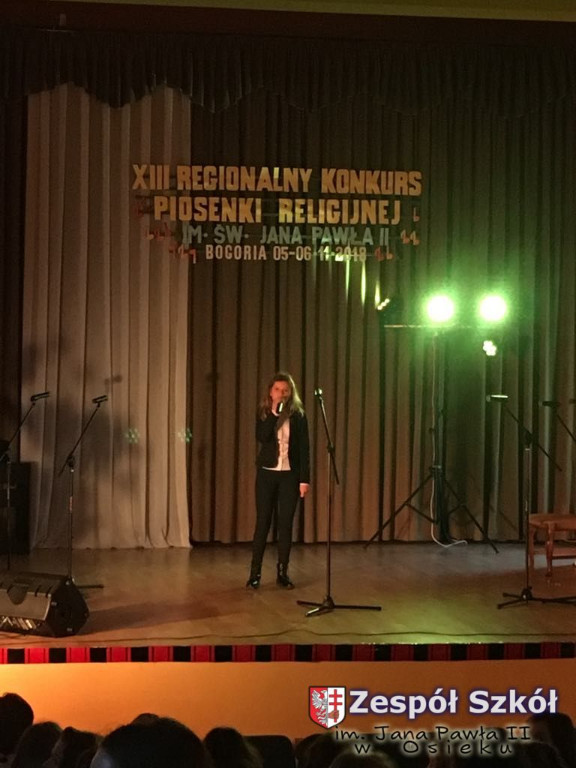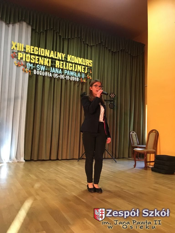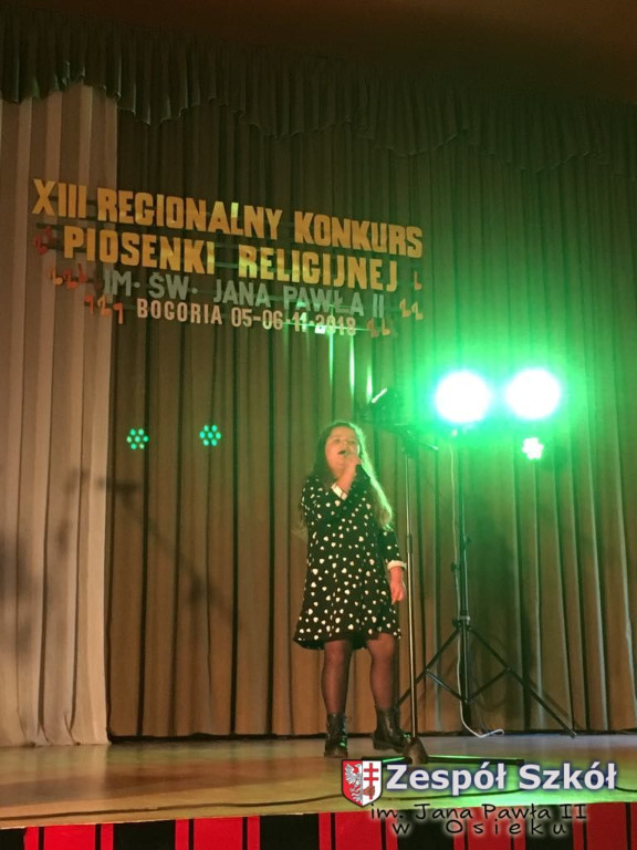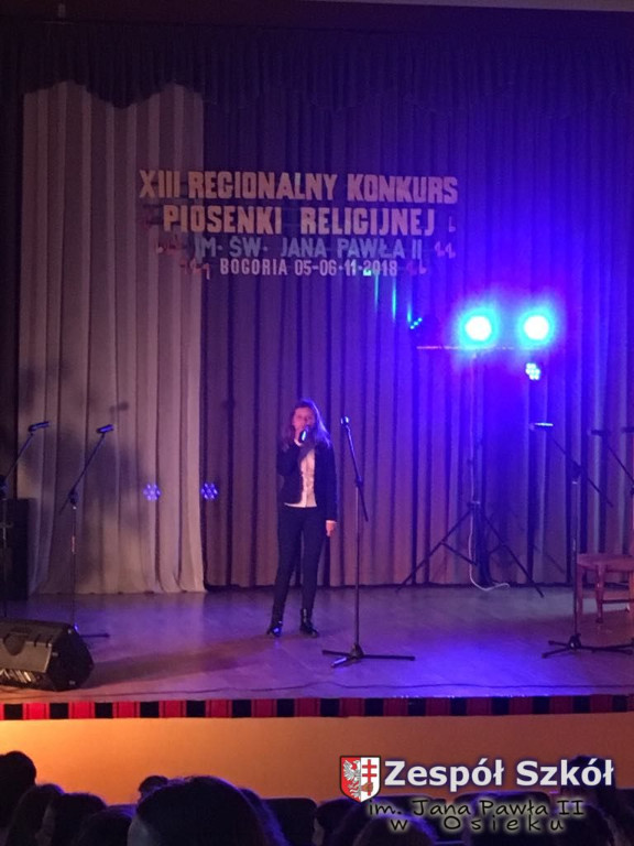 06.11.2018 odbył się konkurs piosenki religijnej w której naszą szkołę w różnych kategoriach wiekowych reprezentowały uczennice: