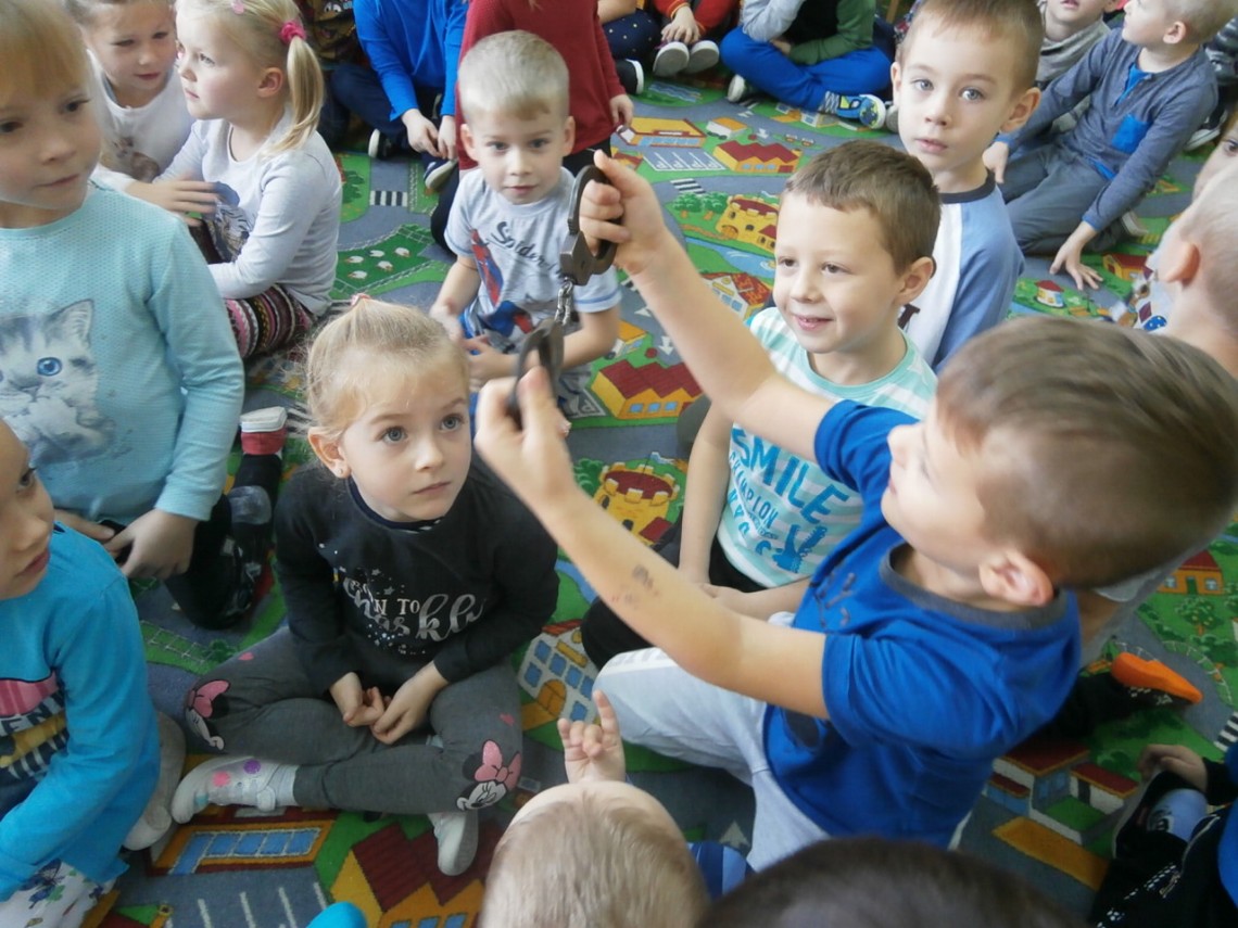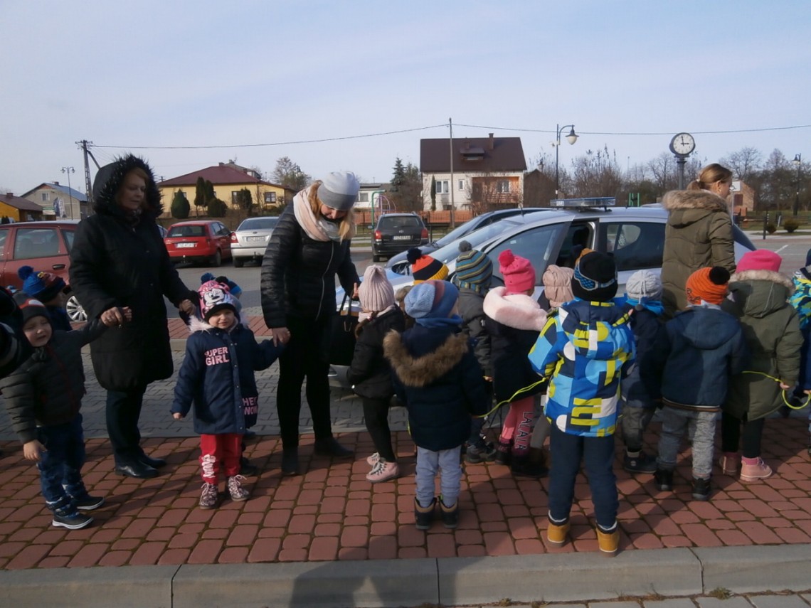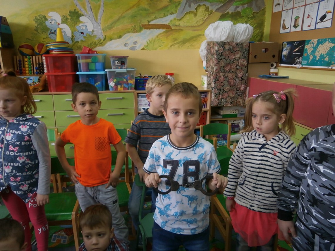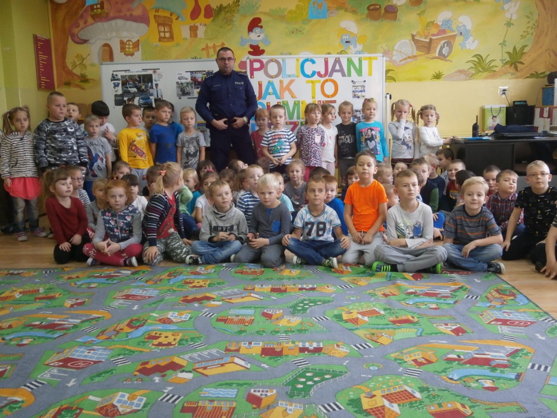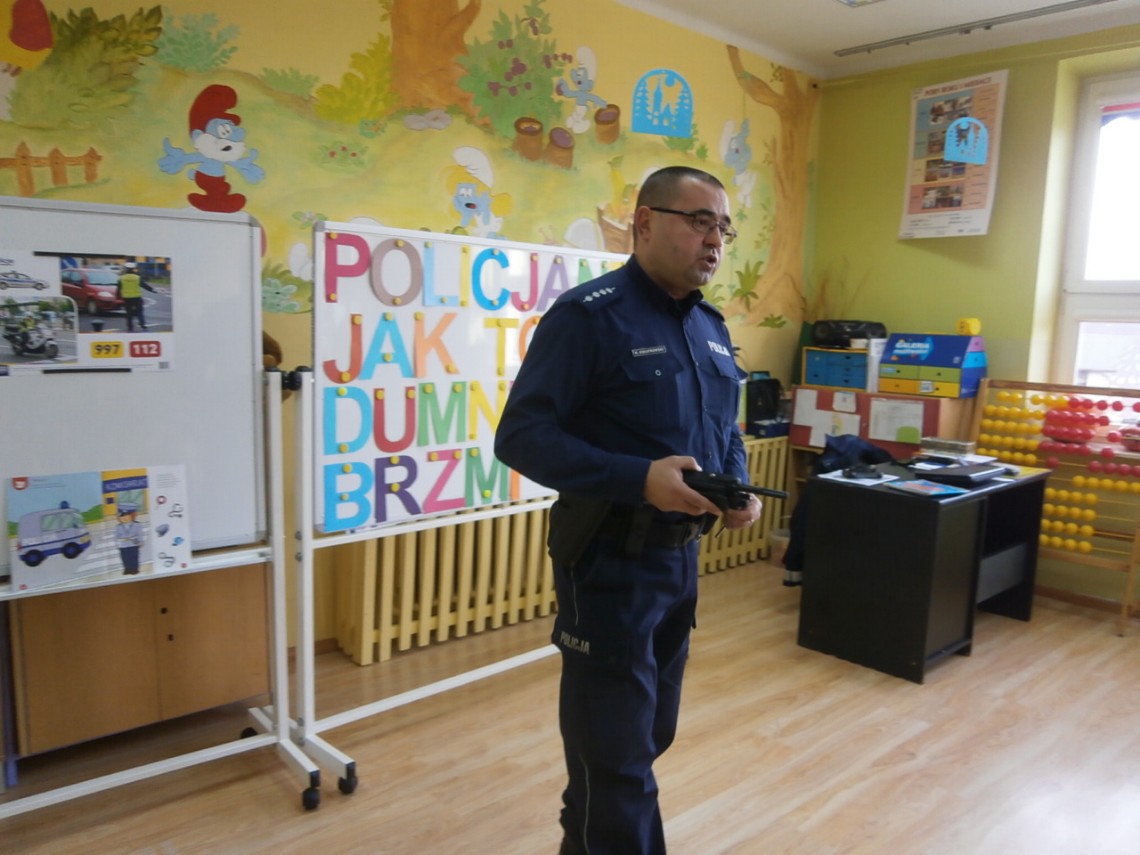 Zawód policjanta stanowi jedną z bardziej intrygujących profesji na rynku pracy. Do podstawowych zadań policji należy ochrona porządku publicznego, wykrywanie i walka z przestępczością, ściganie osób poszukiwanych oraz poszukiwania osób zaginionych. W zakresie zadań znajduje się również ochrona osób i mienia, działalność antykryzysowa w przypadku katastrof i klęsk żywiołowych, działalność antyterrorystyczna oraz wszelkie działania prewencyjne. O tym właśnie opowiadał przedszkolakom asp.szt. Krzysztof Kwiatkowski. Dzieci miały również możliwość zobaczyć wyposażenie policjanta i auto służbowe.