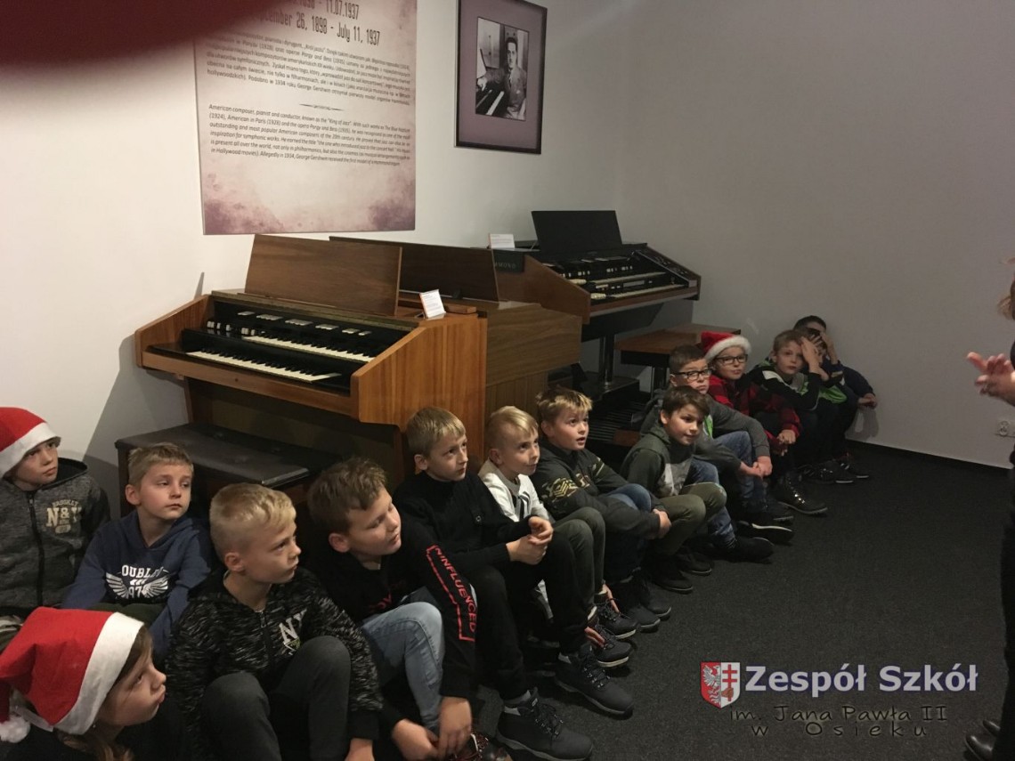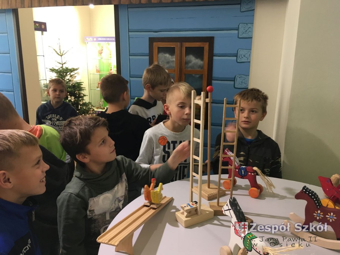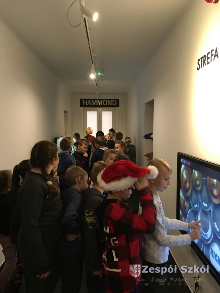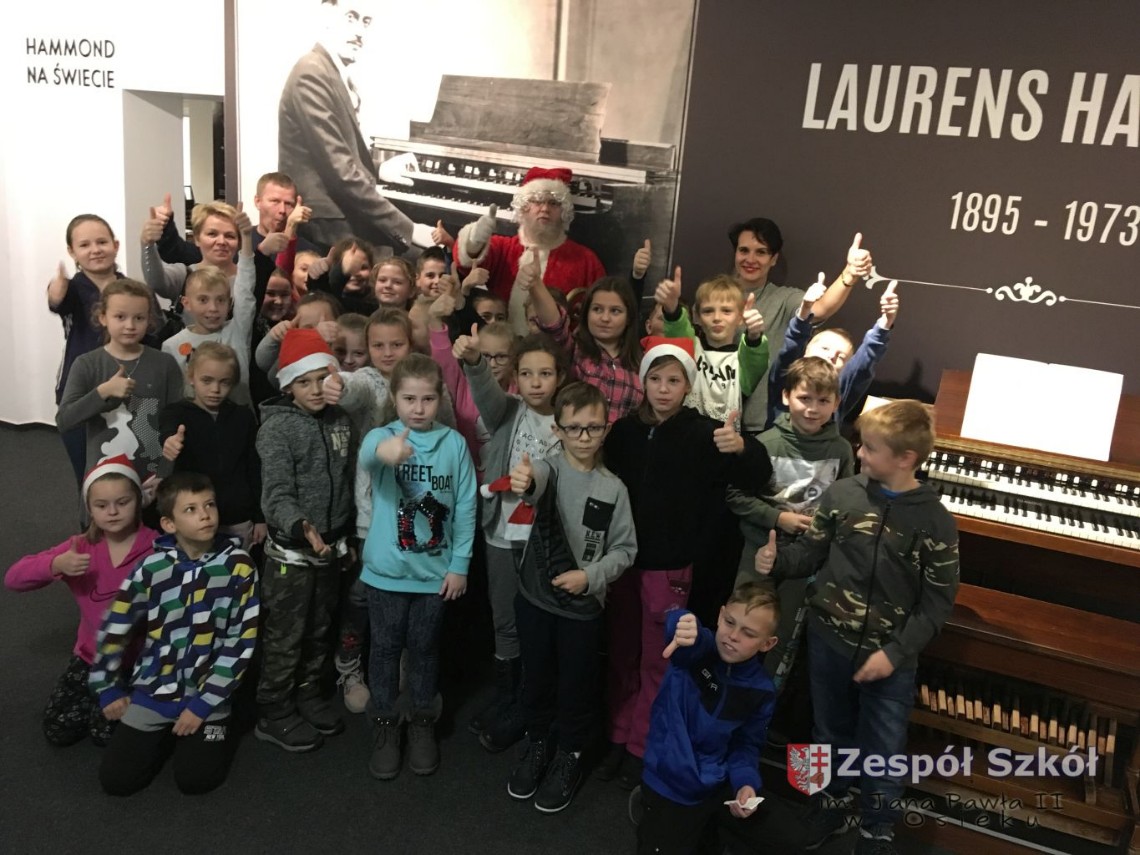 W dzień św. Mikołaja czwartoklasiści wybrali się na wycieczkę do Kielc. Najpierw zwiedzili Muzeum Laurensa Hammonda oraz Muzeum Zabawy i Zabawek. Celem było poznanie osoby amerykańskiego inżyniera i wynalazcy organów oraz największego i najstarszego muzeum zabawek w Polsce. Dzieci mogły obejrzeć kilkanaście wystaw m.in. lalki z całego świata, zabawki historyczne i ludowe, modele samochodów, samolotów, statków itd.