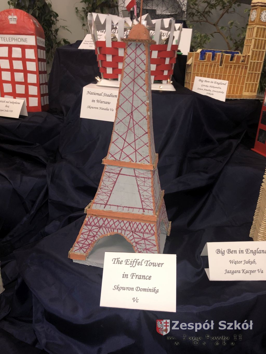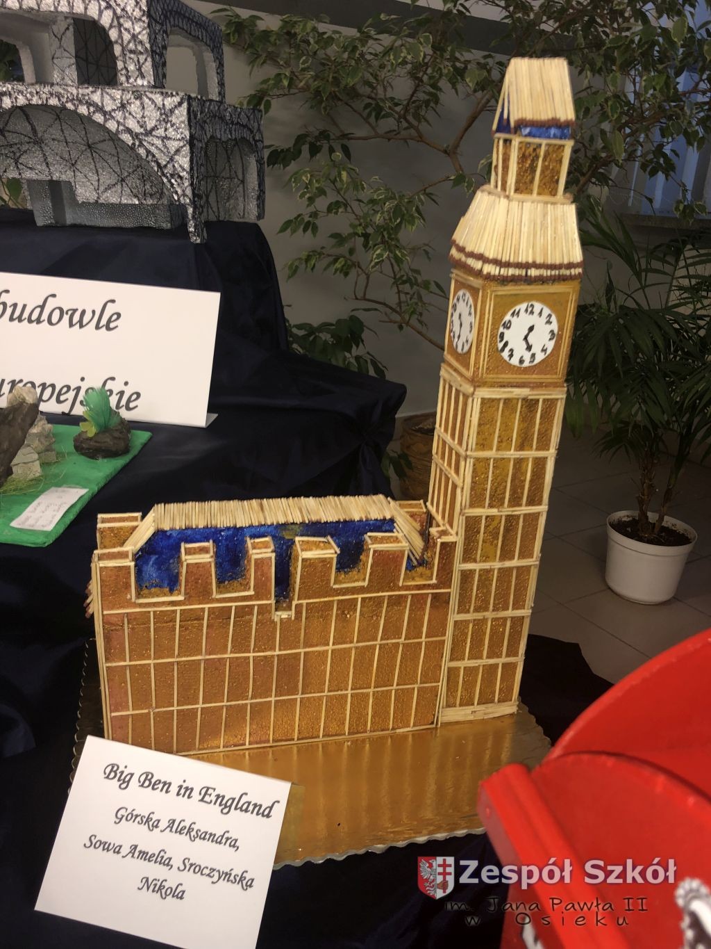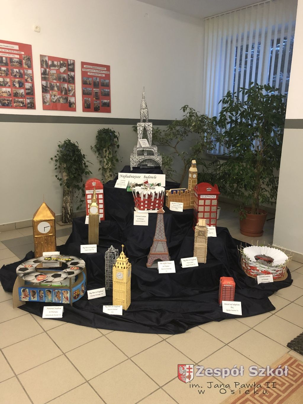 Na korytarzu szkolnym została zorganizowana wystawa  tych budowli.