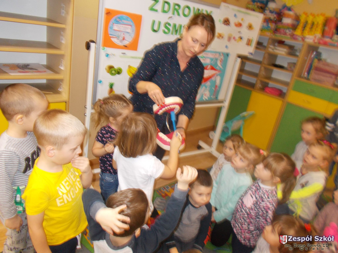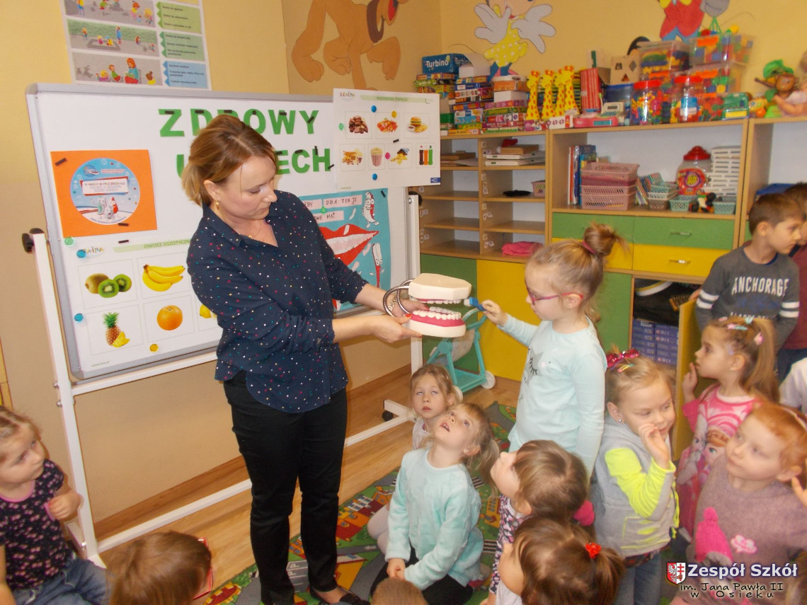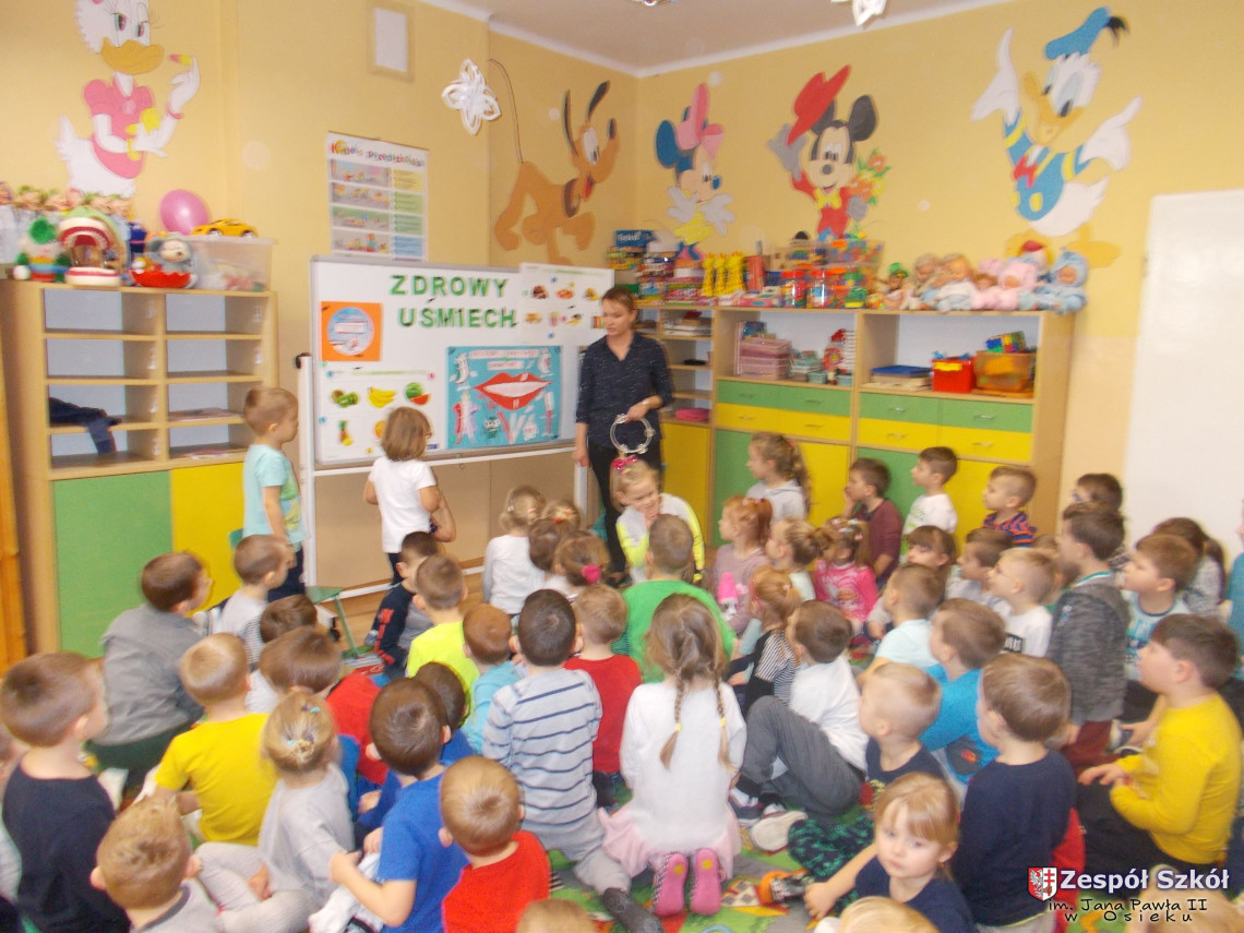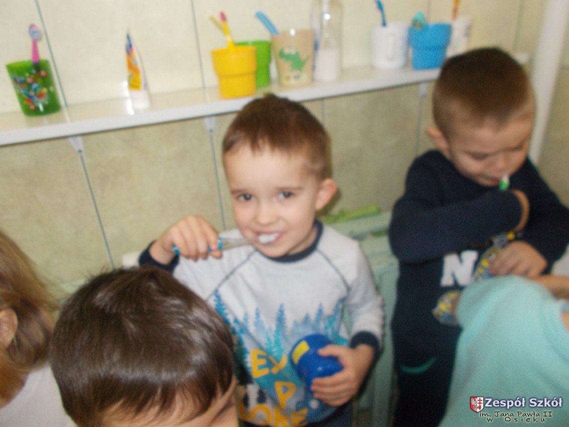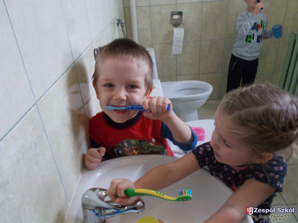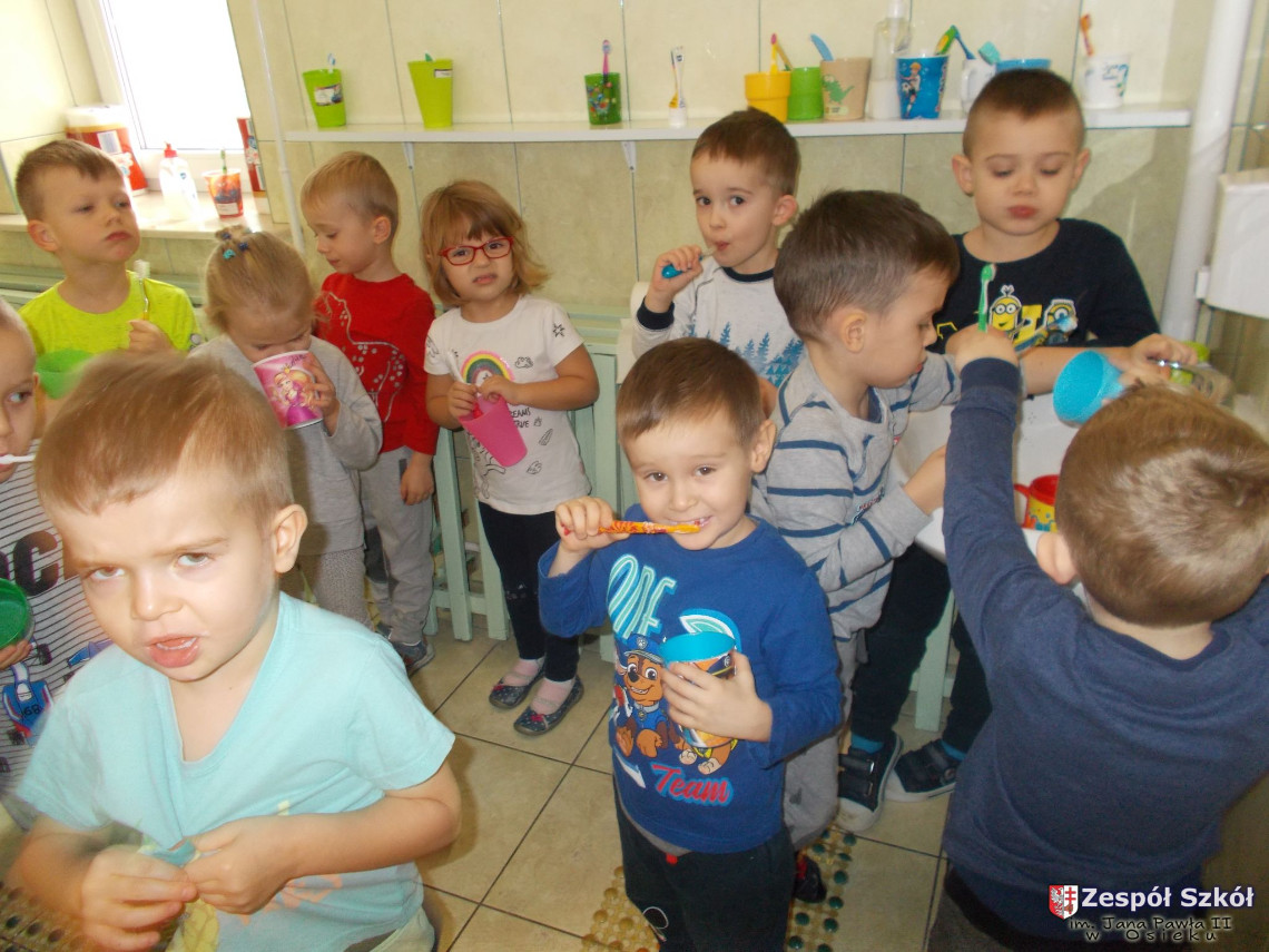 W realizacji programu wzięły udział wszystkie grupy wiekowe. Dzieci zapoznawały się z tematem podczas różnorodnych czynności, działań, sytuacji edukacyjnych z wykorzystaniem różnorodnych pomocy dydaktycznych. Zostały wprowadzone w świat Pastusiowej Krainy, w której poznawały ich mieszkańców – Pastusiów. Dzieci bardzo ciepło przyjęły ich bohaterów Milky’ego, Billy’ego, Lilly, Szczotkusia i Pastusia, ale najwięcej radości sprawił im Robaczek Próchniaczek, którego ochoczo przepędzały z dala od swoich ząbków. Przedszkolaki miały okazję brać udział w zabawach dydaktycznych, ruchowych, dotyczących problematyk higieny jamy ustnej. Podczas zajęć dzieci dowiedziały się także co należy jeść, a czego unikać, aby mieć zdrowe zęby. Wiele radości przyniosły dzieciom ćwiczenia prawidłowej higieny jamy ustnej. Dokładnie przećwiczyły technikę mycia zębów. Wszystkie dzieci bardzo chętnie uczestniczyły w proponowanych zabawach, były zainteresowane tematyką i zgodnie zapowiedziały, że będą zawsze pamiętały o codziennym myciu zębów.