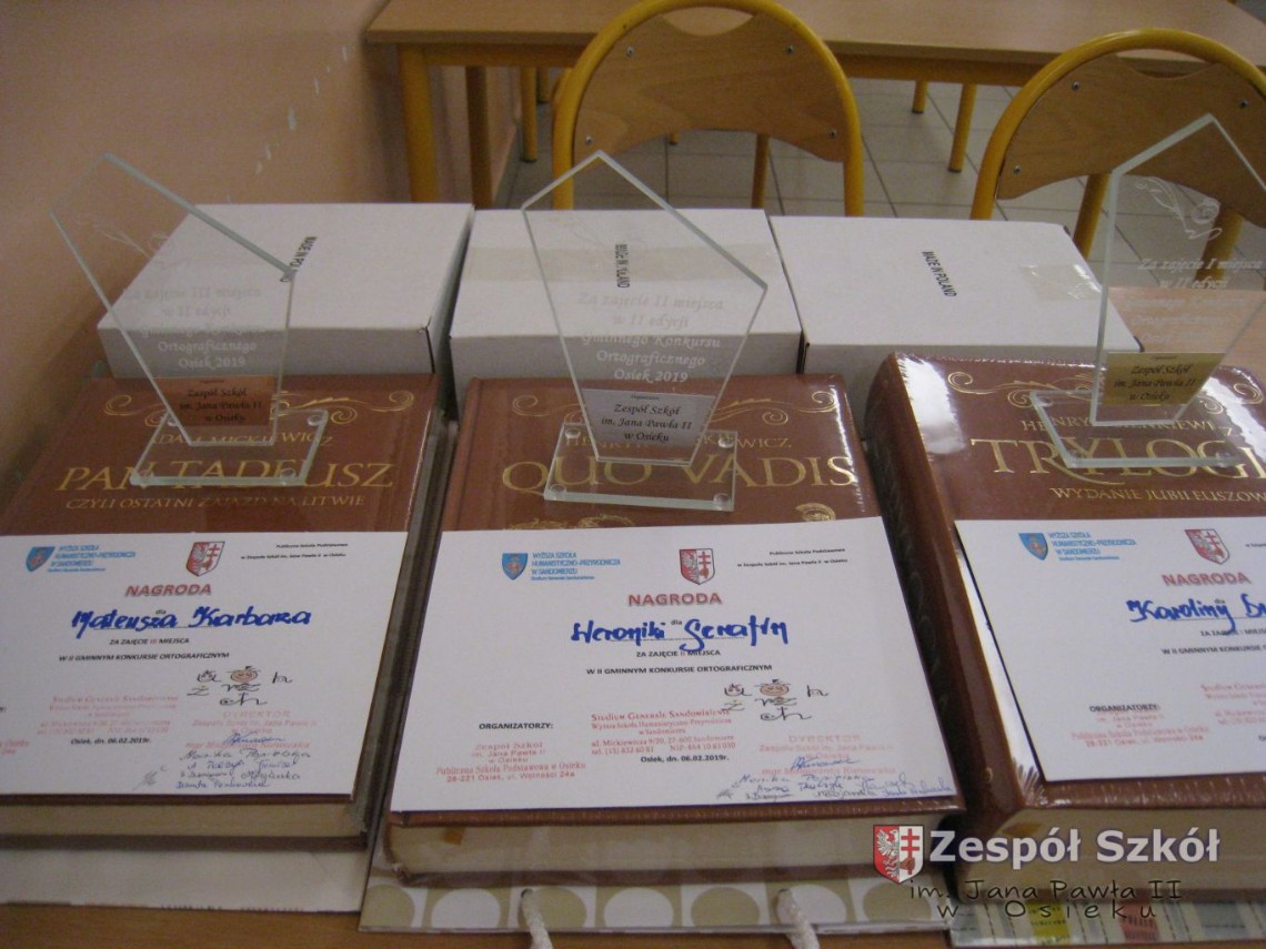 6 lutego 2019 roku w Publicznej Szkole Podstawowej w Zespole Szkół im. Jana Pawła II w Osieku odbył się II Gminny Konkurs Ortograficzny pod patronatem Rektora Wyższej Szkoły Humanistyczno – Przyrodniczej w Sandomierzu.