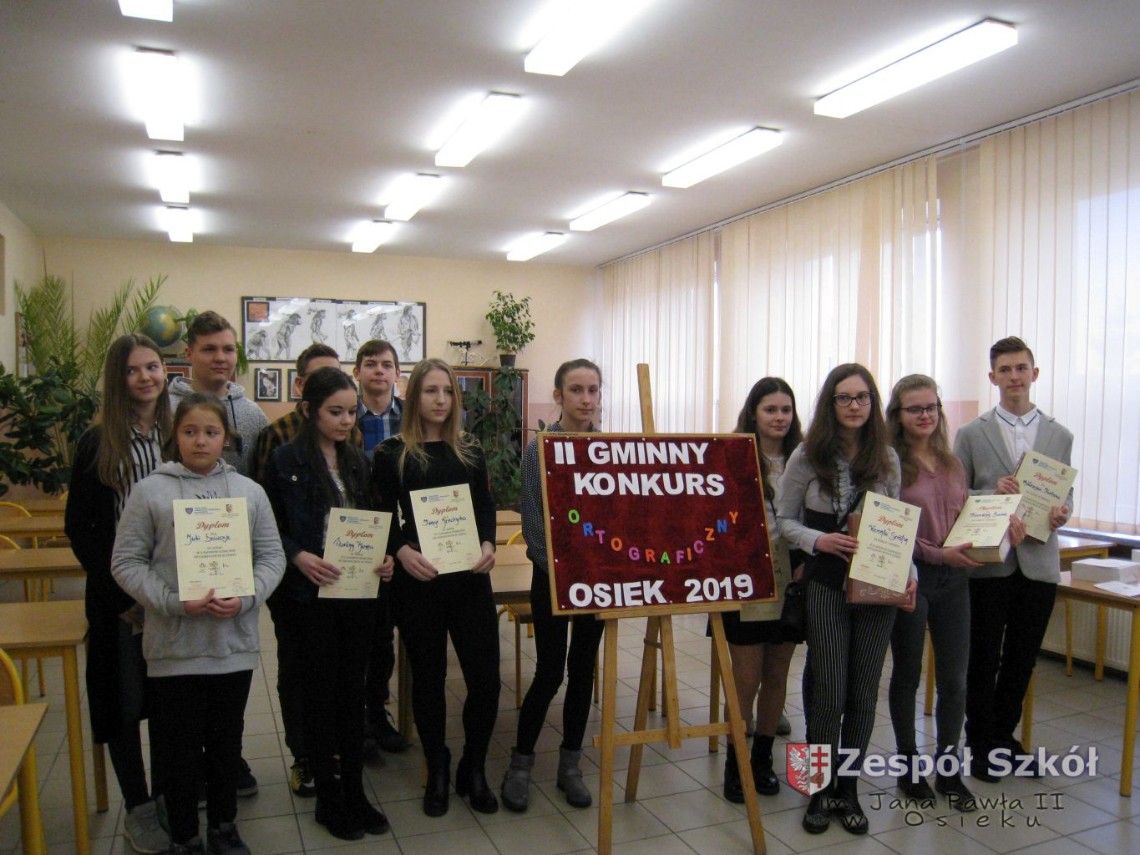II Gminny Konkurs Ortograficzny spotkał się z dużym zainteresowaniem ze strony uczniów oraz nauczycieli. Wzięło w nim udział 14 uczniów ze szkół podstawowych z terenu gminy Osiek, którzy w swoich placówkach wykazali się najlepszą znajomością zasad ortografii i interpunkcji.