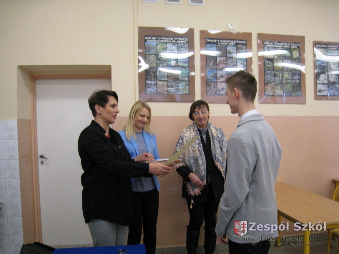 Ortograficzne zmagania uczeń naszej szkoły z klasy VIII – Mateusz Karbarz zakończył zajęciem III miejsca.