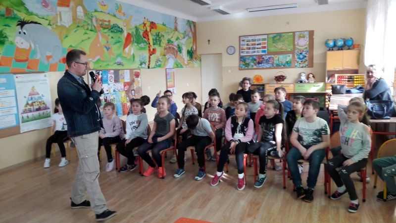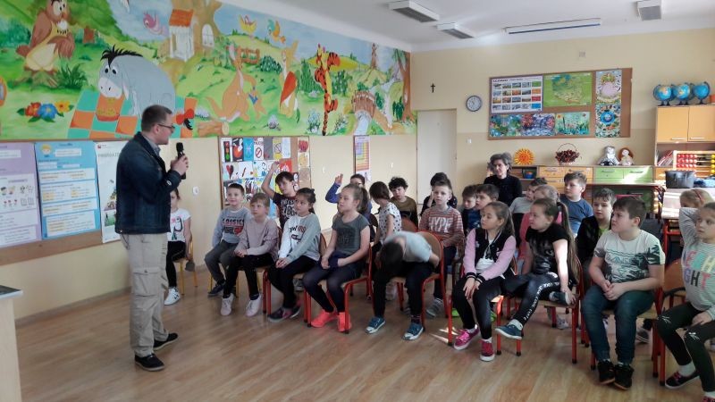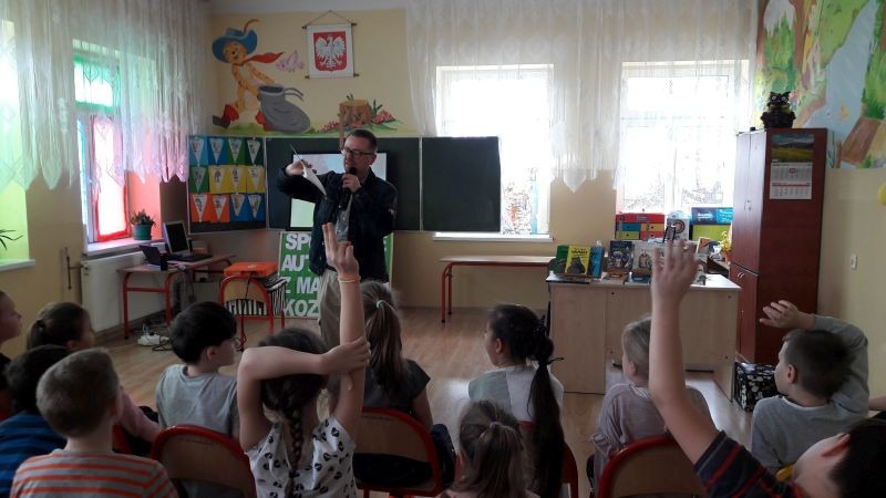 W dniu 07 marca 2019 roku Publiczna Szkoła Podstawowa w Osieku gościła Pana Marcina Kozioła pisarza i podróżnika, autora książek „Skrzynia Władcy Piorunów”, „Tajemnica przeklętej harfy” oraz podróżniczej serii „Wombat Maksymilian”, nagrodzonej prestiżowym Magellanem dla najlepszej książki podróżniczej dla dzieci roku 2016.