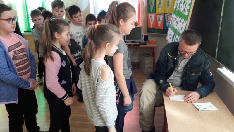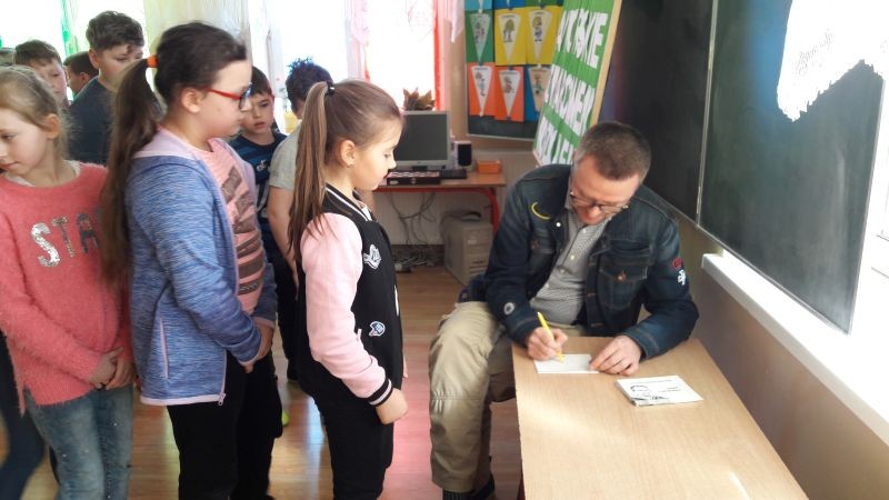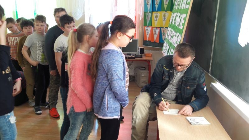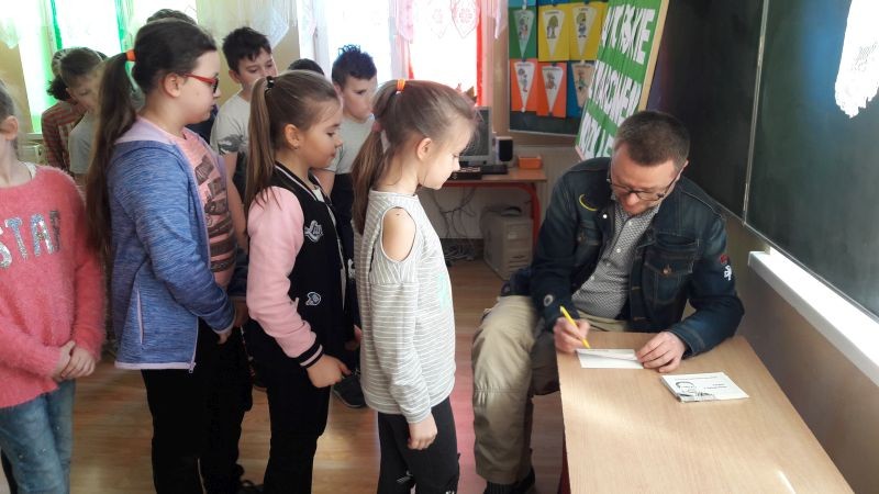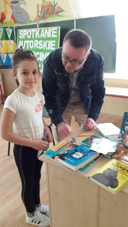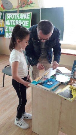 Pan Marcin podpisał także książki, które można wypożyczyć w naszej bibliotece.