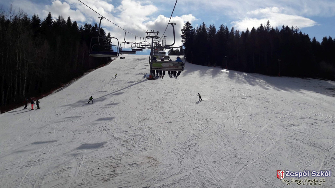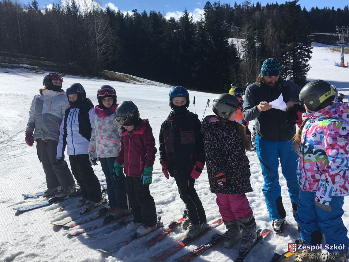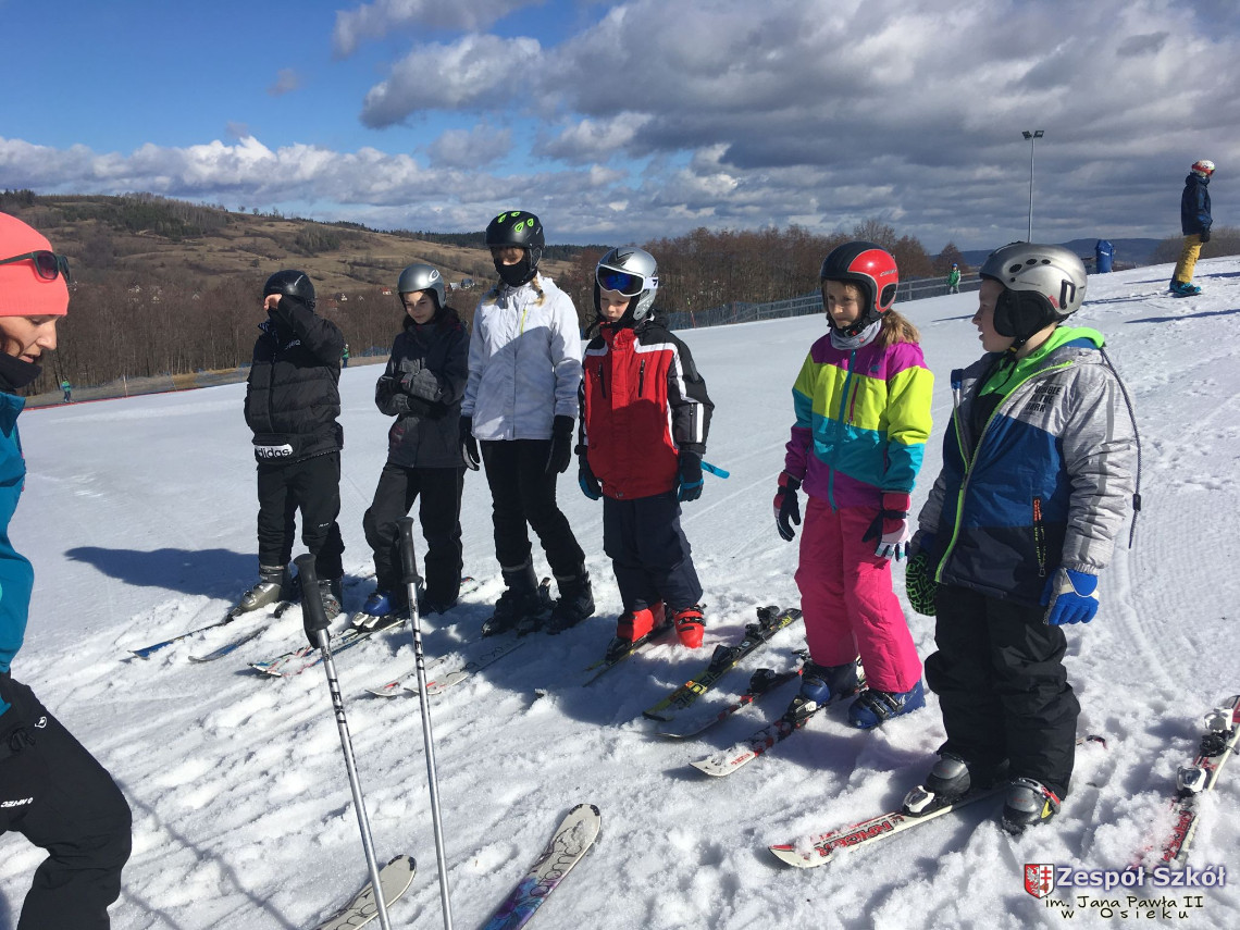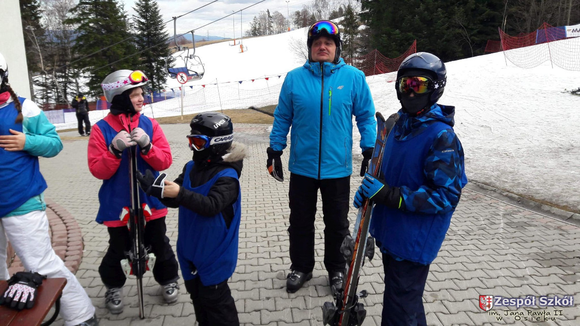 Uczniowie Zespołu Szkół im. Jana Pawła II w Osieku w dniu 4-8 marca 2019r. uczestniczyli w wycieczce do Sidziny (turnus narciarski). Codzienne zajęcia pod okiem instruktorów na stoku w Spytkowicach napełniły uczniów radością z nowo nabytej umiejętności jazdy na nartach. Wszyscy świetnie się bawili. Pogoda nam dopisała. Szczególne gratulacje dla czwartoklasistów, którzy dzielnie zmagali się nie tylko z trudami narciarstwa, jak również z tęsknotą za bliskimi i domem. Podziękowania za trud opieki i fachową pomoc na stoku dla panów: A. Rachonia i J. Gaconia.