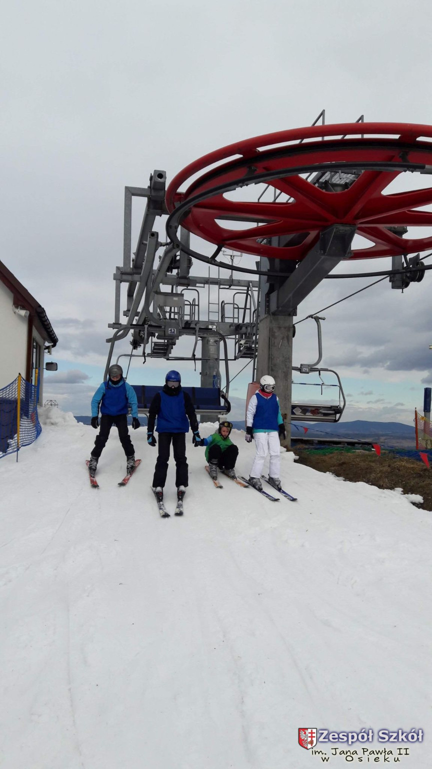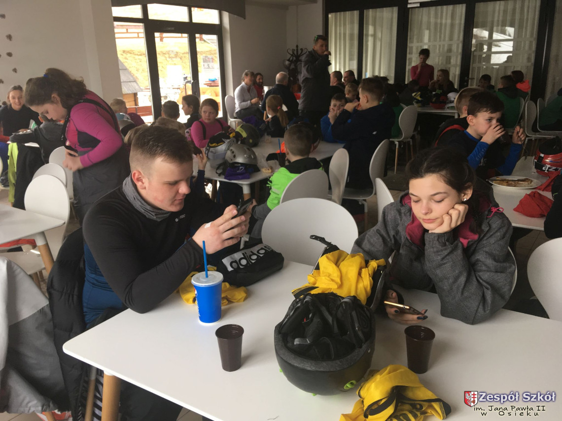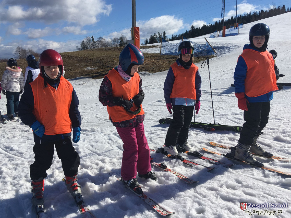 Uczniowie Zespołu Szkół im. Jana Pawła II w Osieku w dniu 4-8 marca 2019r. uczestniczyli w wycieczce do Sidziny (turnus narciarski). Codzienne zajęcia pod okiem instruktorów na stoku w Spytkowicach napełniły uczniów radością z nowo nabytej umiejętności jazdy na nartach. Wszyscy świetnie się bawili. Pogoda nam dopisała. Szczególne gratulacje dla czwartoklasistów, którzy dzielnie zmagali się nie tylko z trudami narciarstwa, jak również z tęsknotą za bliskimi i domem. Podziękowania za trud opieki i fachową pomoc na stoku dla panów: A. Rachonia i J. Gaconia.