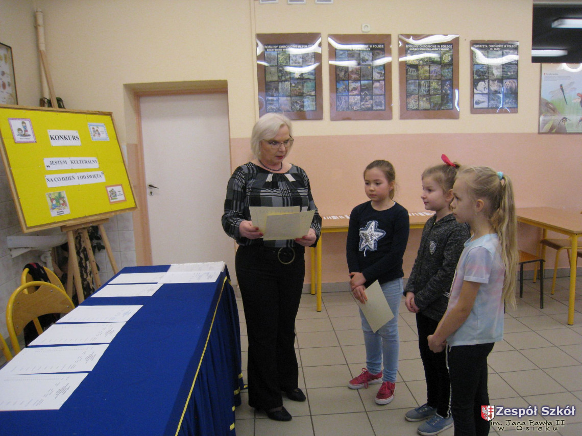 Dnia 19.03.2019 r. w Publicznej Szkole Podstawowej w Zespole Szkół im. Jana Pawła II w Osieku odbył się konkurs „Jestem kulturalny na co dzień i od święta”.