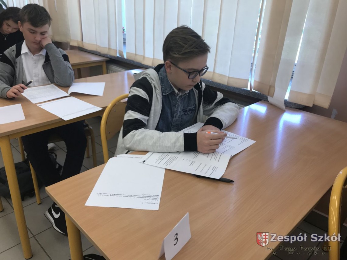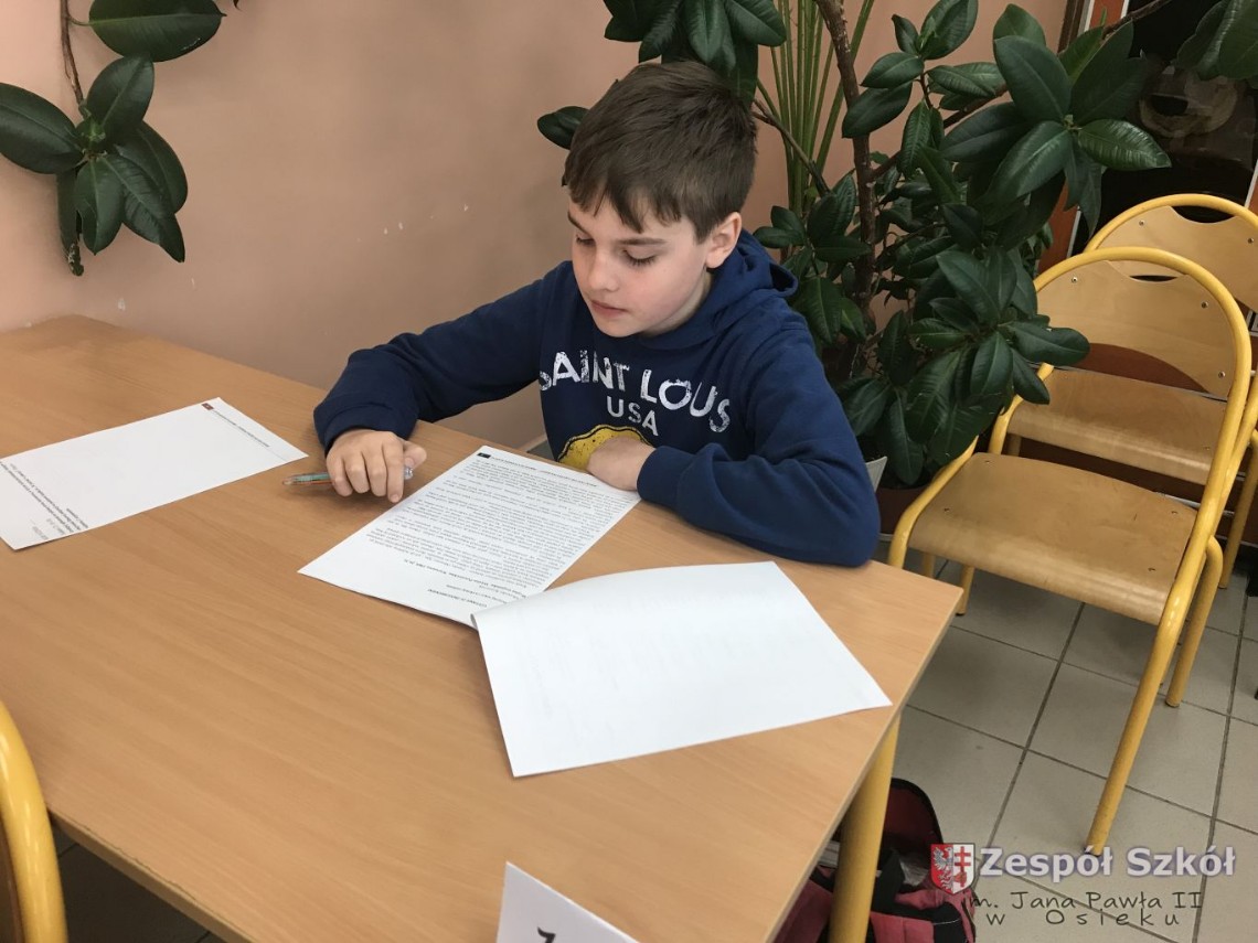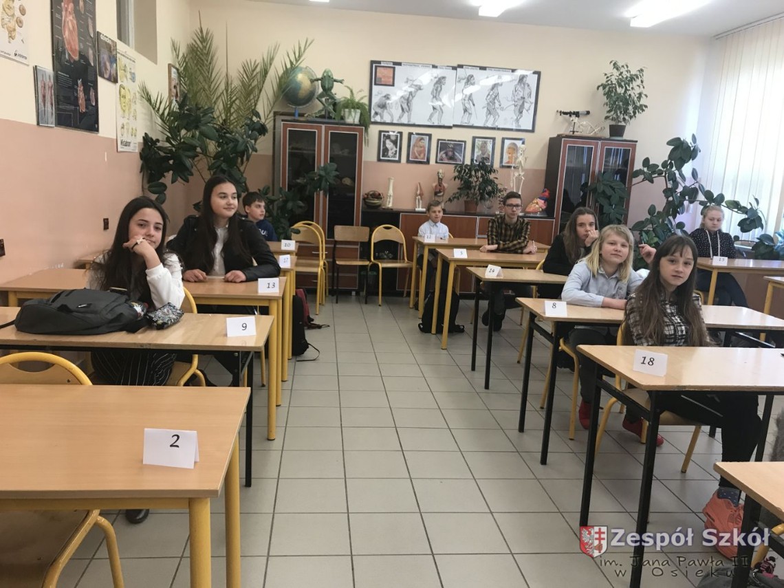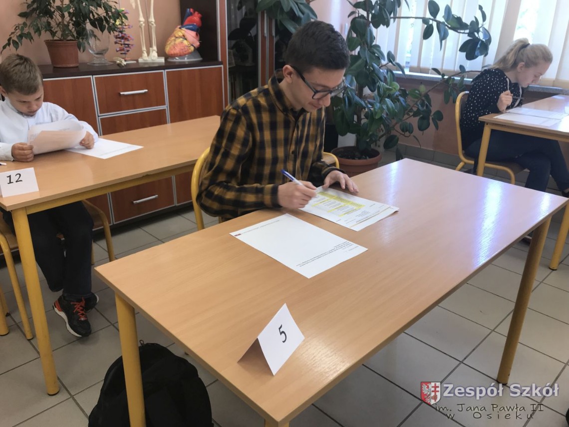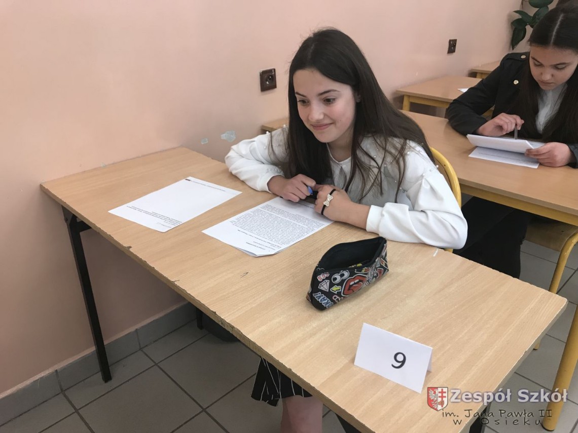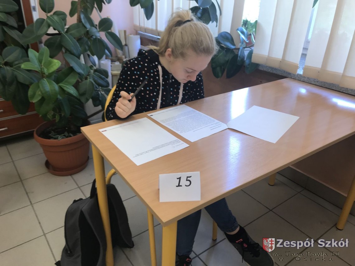 7 maja 2019 roku w Publicznej Szkole Podstawowej w Zespole Szkół im. Jana Pawła II w Osieku odbył się „Wielki Test PSP z Języka Polskiego”. Konkurs skierowany był do uczniów klas V-VIII PSP, którzy znakomicie wykazali się wiedzą w części pisemnej, ustnej i online. Na początku uczestnicy rozwiązywali test, który składał się z zadań otwartych i zamkniętych. Każdy arkusz był dostosowany według grupy wiekowej i sprawdzał wiedzę uczniów z zakresu czytania ze zrozumieniem, gramatyki i literatury. Ostatnim zadaniem na każdej pracy było zredagowanie pisma użytkowego – zaproszenia, ogłoszenia lub podania. Po wykonaniu zadań, uczniowie udali się do pracowni komputerowej, aby przystąpić do części online. Uczestnicy bardzo dobrze rozpoznali cytaty ze znanych utworów oraz nieobce im były postacie przedstawione na fotografiach. Konkurs zakończyła część ustna, w której uczniowie zdobyli dużą ilość punktów.