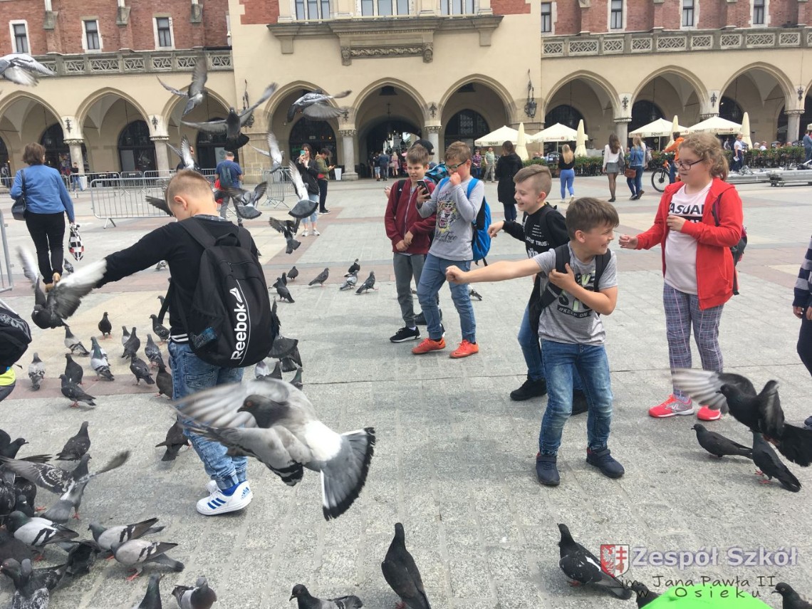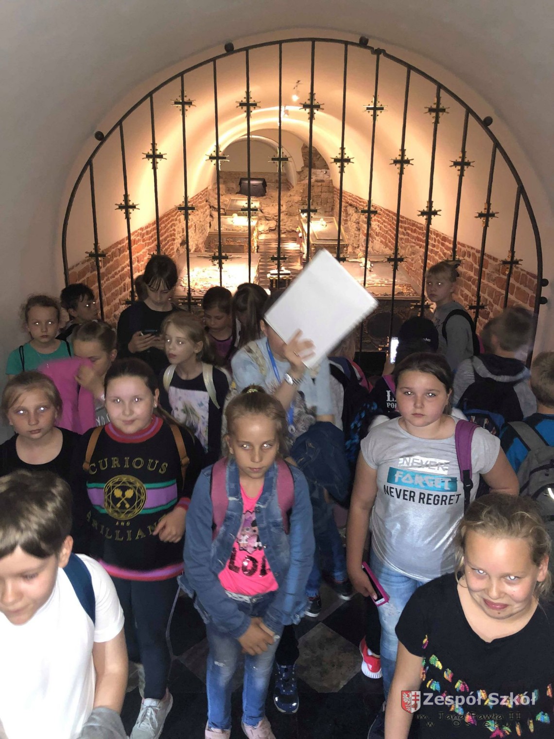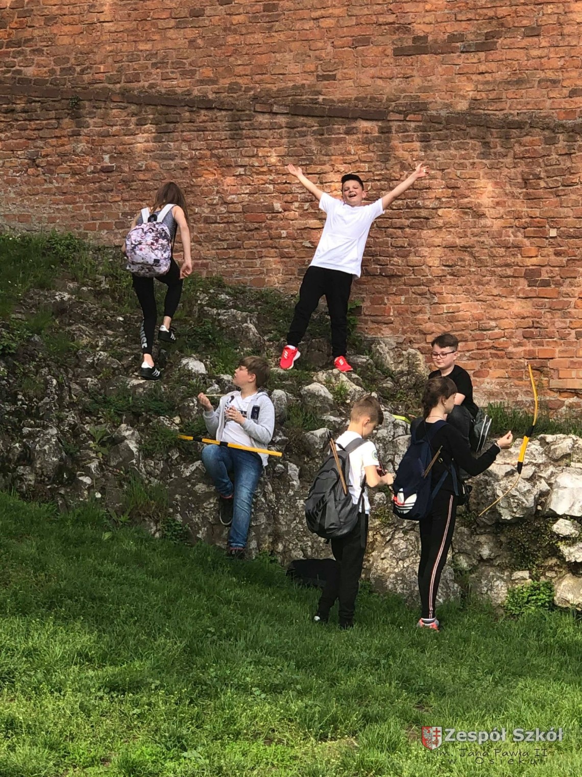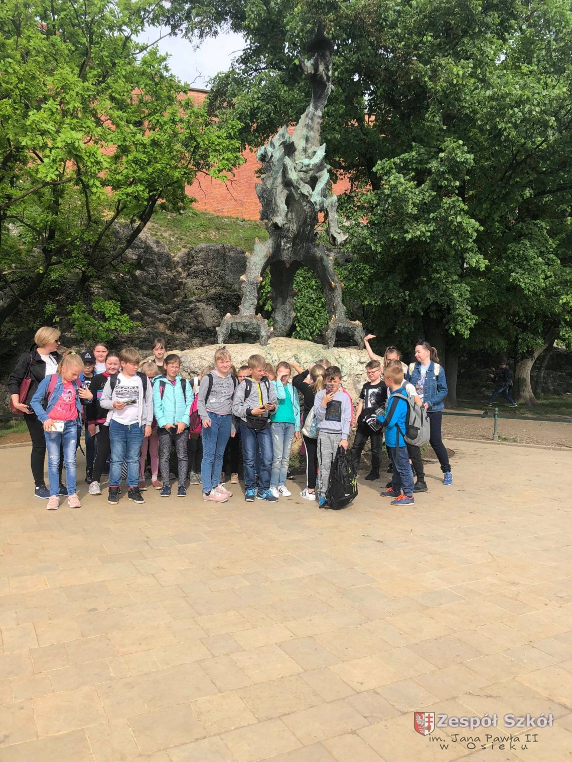 Dnia 20 maja 2019 r. uczniowie klas IV i V szkoły podstawowej udali się na wycieczkę do Krakowa. Pierwszym punktem programu była wizyta w Teatrze Groteska na premierze spektaklu „Ronja, córka zbójnika”, na podstawie powieści Astrid Lindgren. Następnie uczniowie spotkali się z przewodnikami, którzy wędrując z nami po Krakowie, odkrywali przed nami tajemnice i legendy związane z najstarszymi zabytkami Rynku Głównego. Przemierzając wzgórze wawelskie, mali turyści dowiedzieli się m.in. kto założył Kraków, gdzie mieszkali i bawili się królowie i kto zwyciężył smoka całożercę.