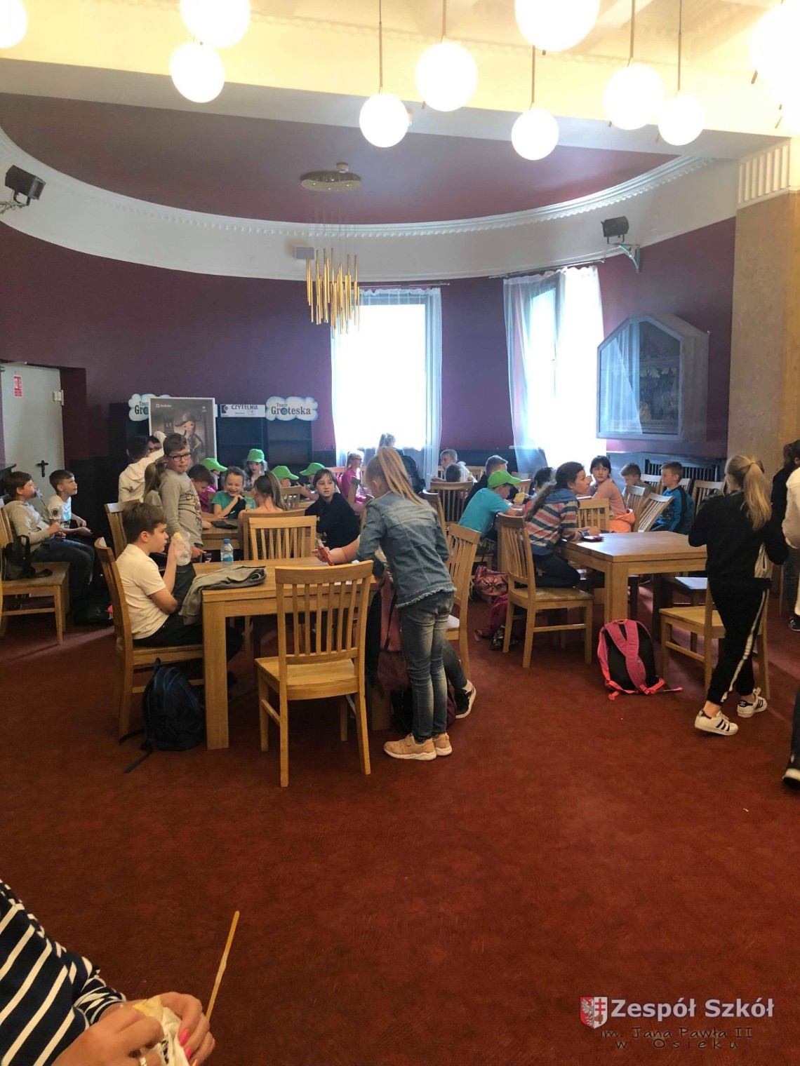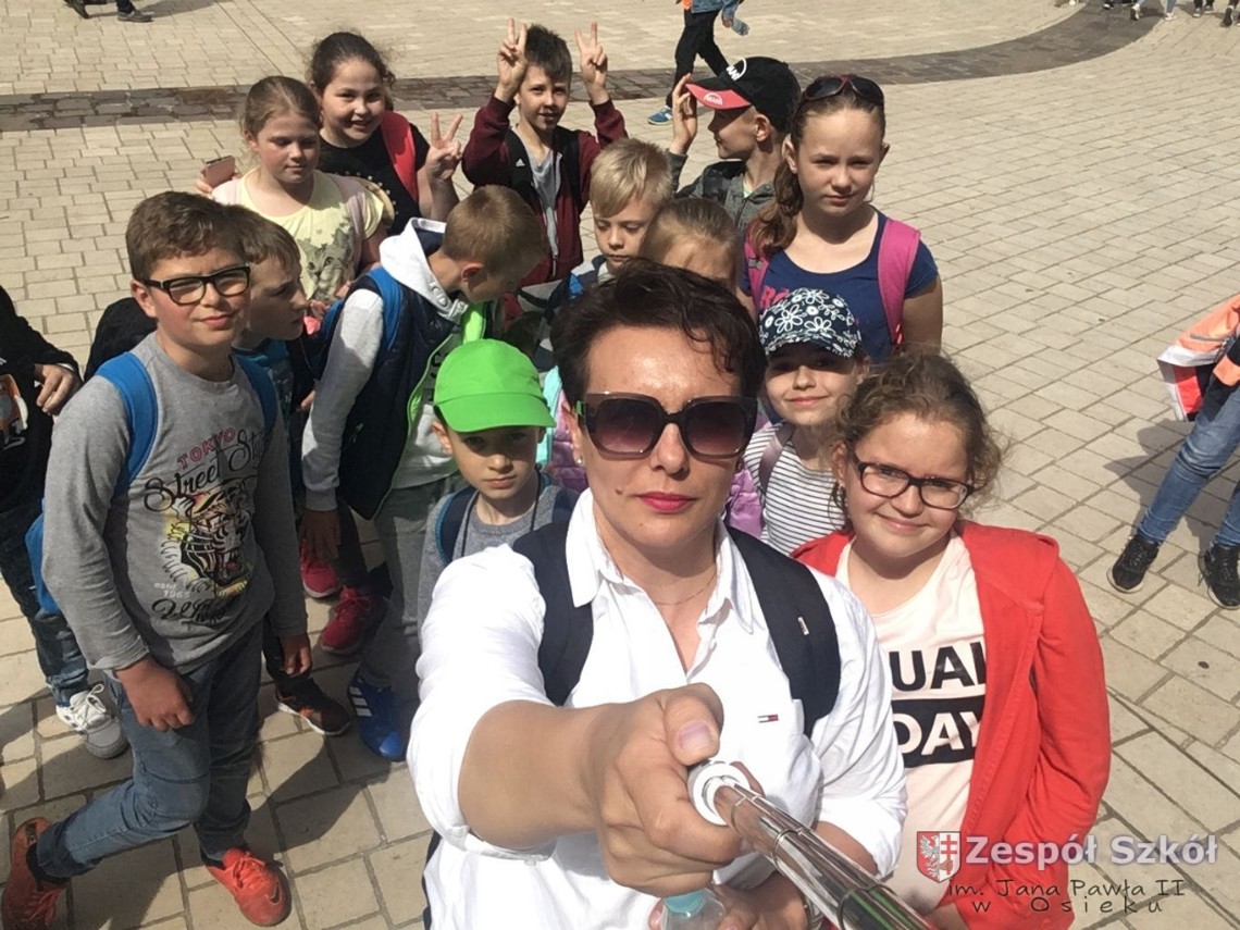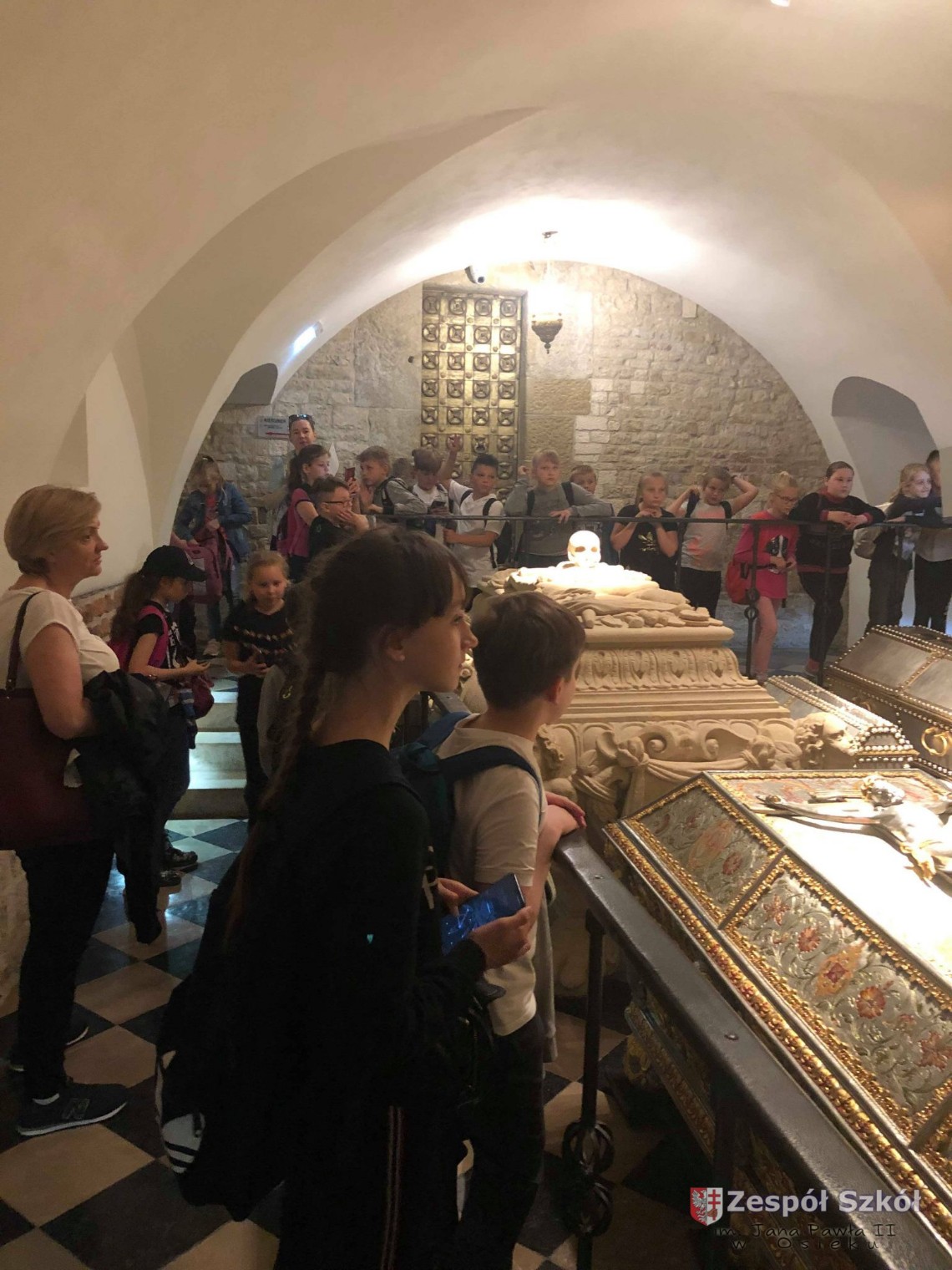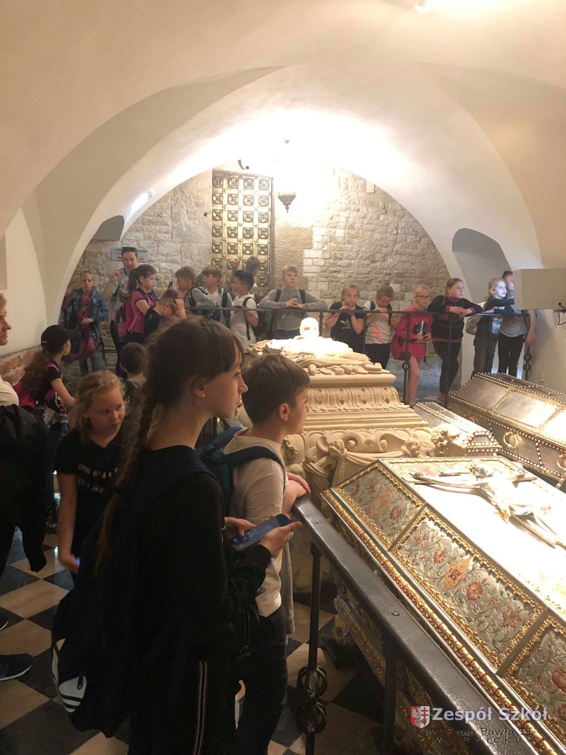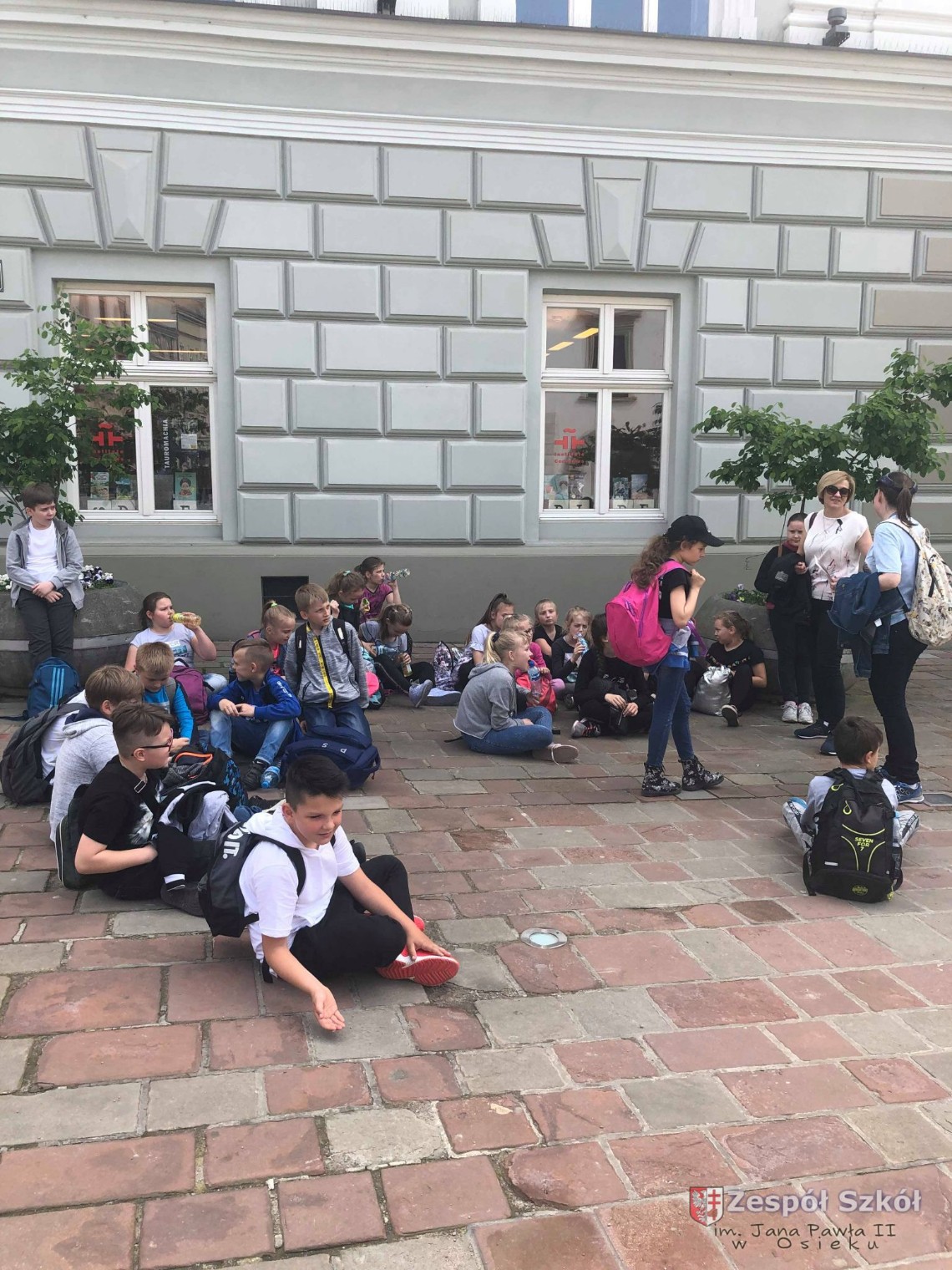 Dnia 20 maja 2019 r. uczniowie klas IV i V szkoły podstawowej udali się na wycieczkę do Krakowa. Pierwszym punktem programu była wizyta w Teatrze Groteska na premierze spektaklu „Ronja, córka zbójnika”, na podstawie powieści Astrid Lindgren. Następnie uczniowie spotkali się z przewodnikami, którzy wędrując z nami po Krakowie, odkrywali przed nami tajemnice i legendy związane z najstarszymi zabytkami Rynku Głównego. Przemierzając wzgórze wawelskie, mali turyści dowiedzieli się m.in. kto założył Kraków, gdzie mieszkali i bawili się królowie i kto zwyciężył smoka całożercę.