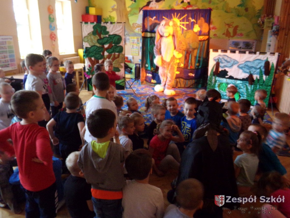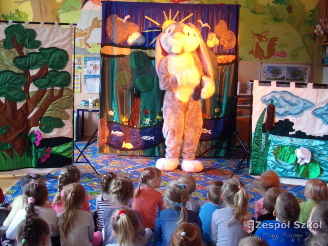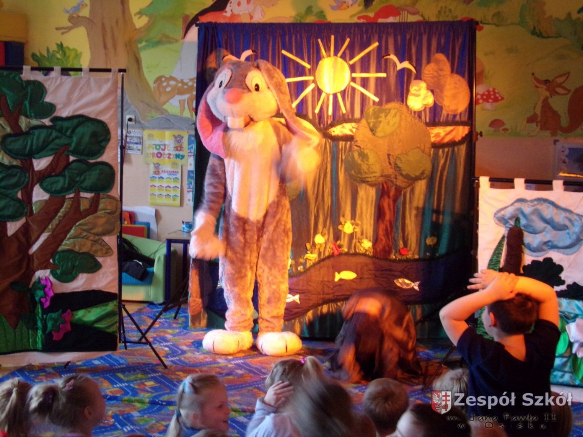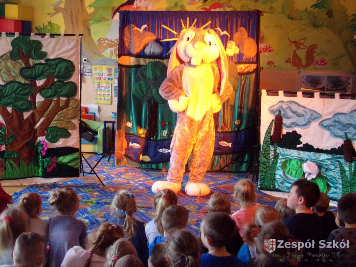 17.05.2019 r. do naszego przedszkola zawitała firma artystyczna PATIGO z przedstawieniem teatralnym pt.„Króliczek wędrowniczek”. Była to opowieść, w której główny bohater wyrusza w świat nawiązując wiele nowych przyjaźni. Z każdej znajomości płynie do przedszkolaków przesłanie o treści profilaktyczno – edukacyjnej. Całe widowisko wyreżyserowane zostało w taki sposób, aby uaktywnić w jego trakcie wszystkie dzieci poprzez ruch, śpiew, ćwiczenie umysłu…