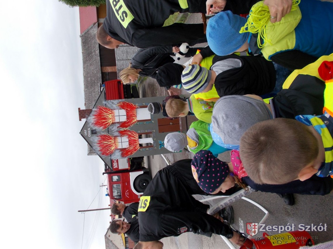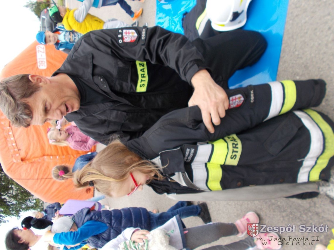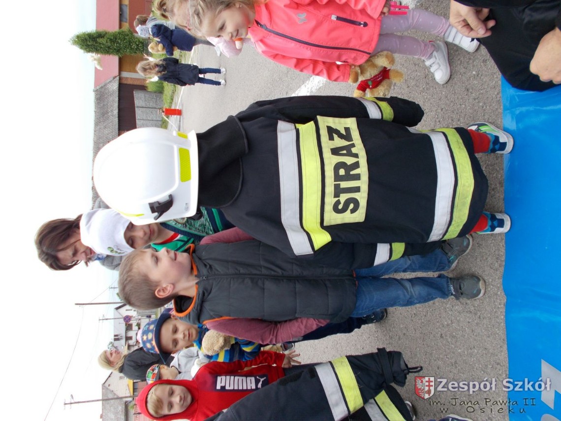 Spotkanie rozpoczęło się od pogadanki na temat pracy strażaka, utrwalenie numerów alarmowych, pokazu stroju strażaka i sprzętu medycznego.