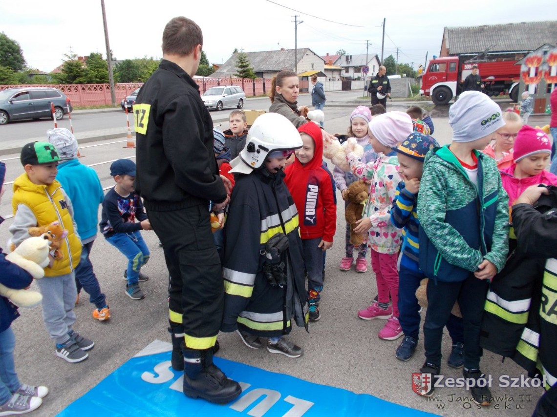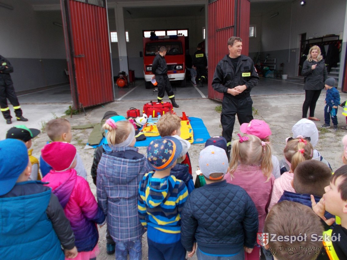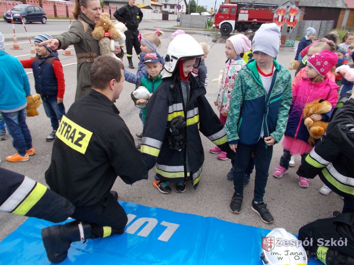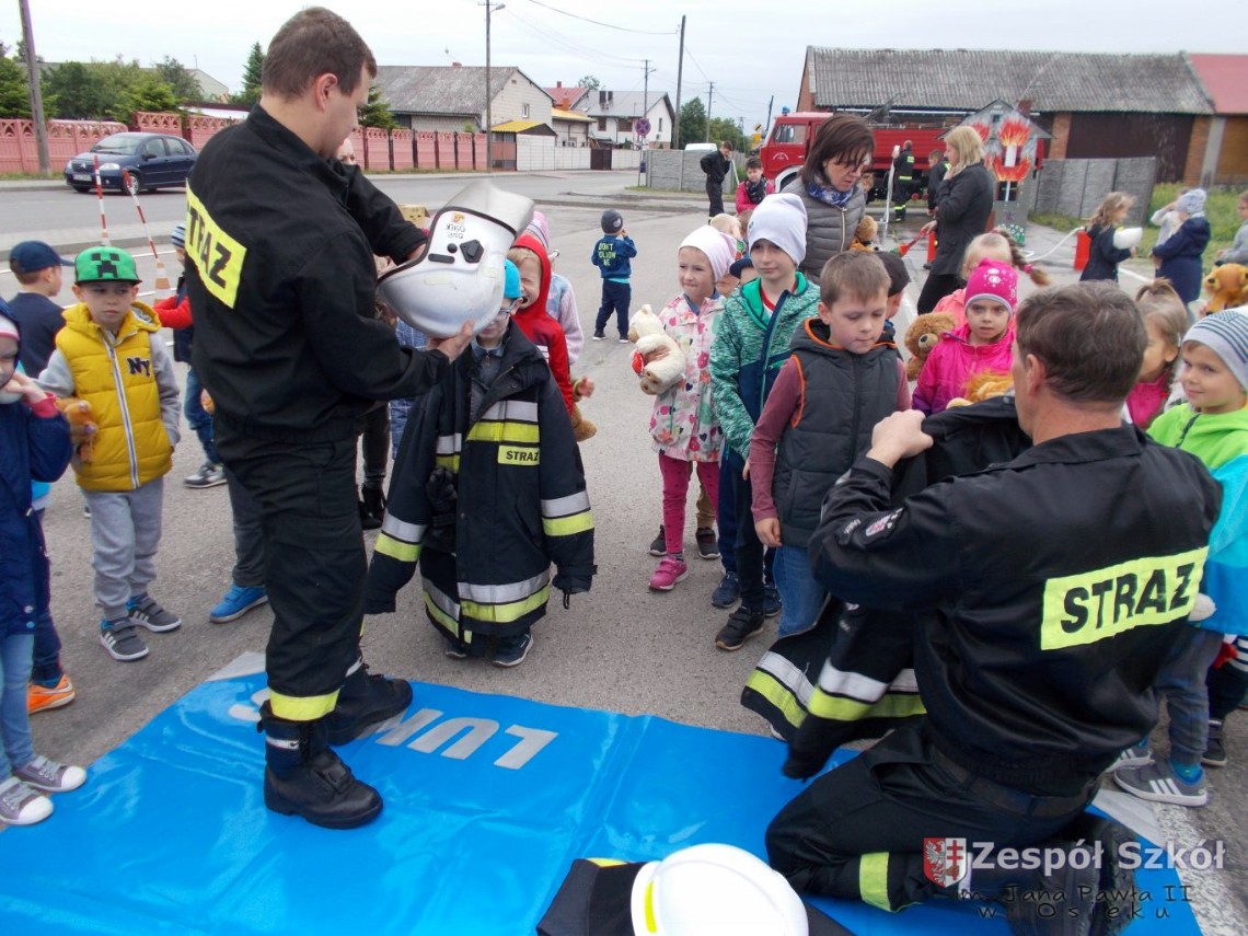 Spotkanie rozpoczęło się od pogadanki na temat pracy strażaka, utrwalenie numerów alarmowych, pokazu stroju strażaka i sprzętu medycznego.