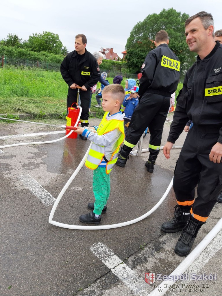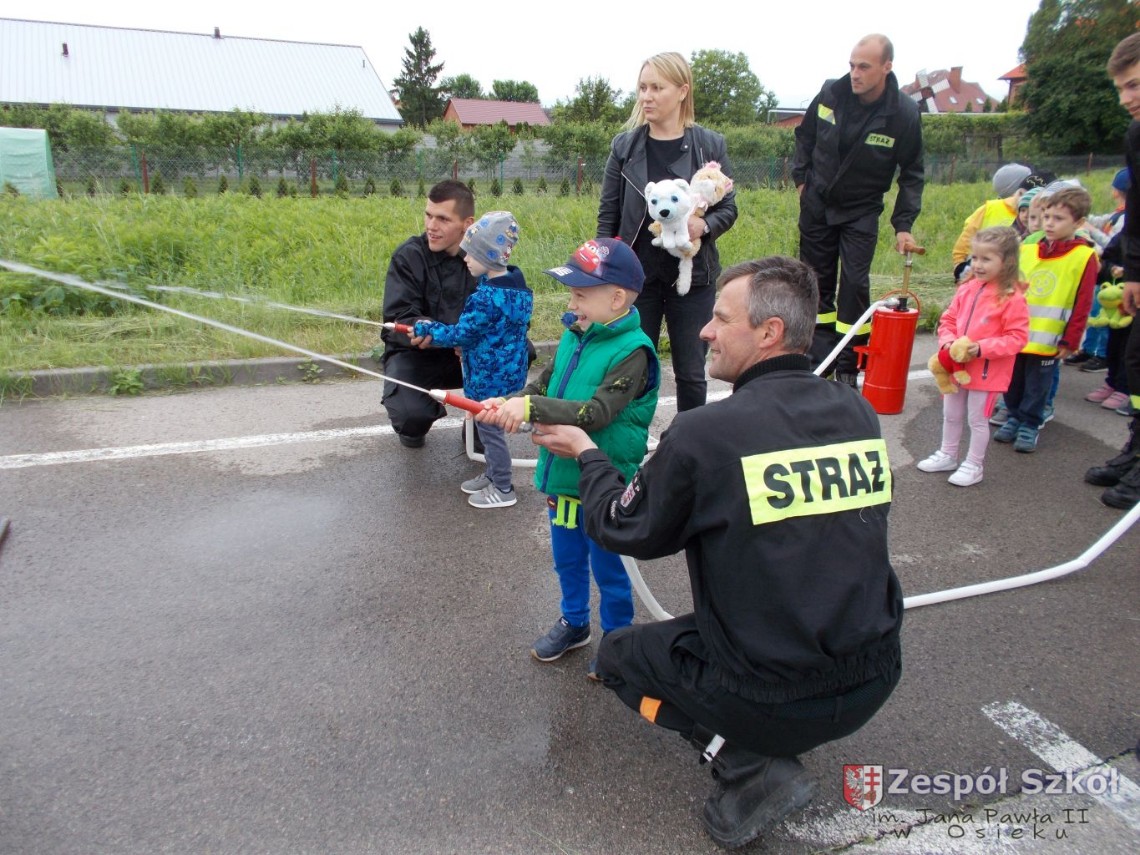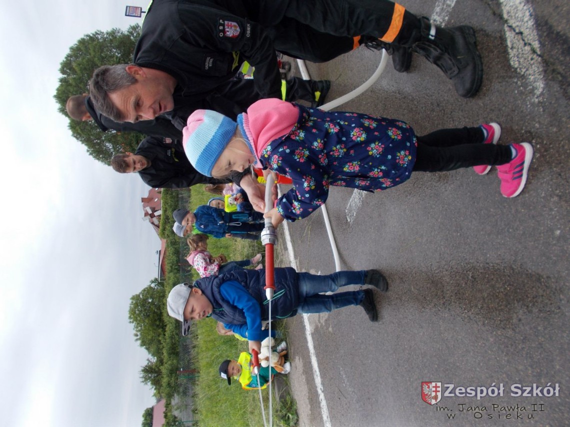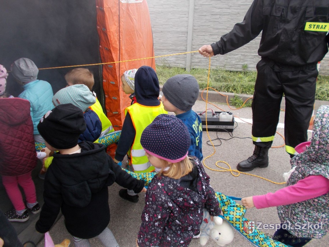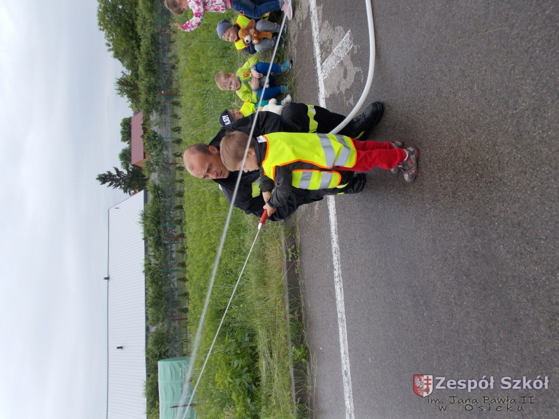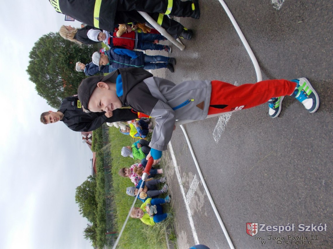W dalszej części spotkania dzieci miały możliwość konkurować w dwóch drużynach i tym sposobem ,,uratować” misia z pożaru, który był jednocześnie nagrodą za wyścig. Następnie dzieci przeszły przez ,,komorę dymną” gdzie mogli poczuć się jak prawdziwi strażacy w akcji. To nie był jednak koniec atrakcji, strażacy samodzielnie przygotowali dla dzieci makietę ,,palącego się” domku, który każdy przedszkolak mógł zgasić przy użyciu sprzętu gaśniczego.