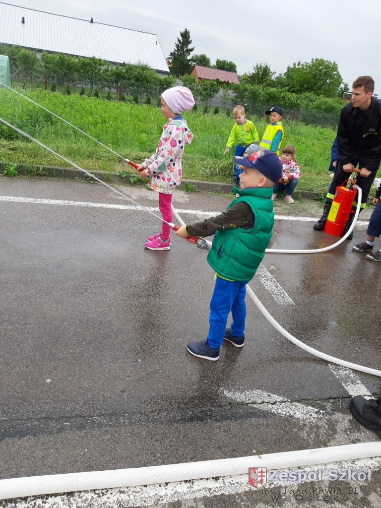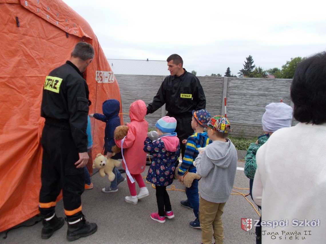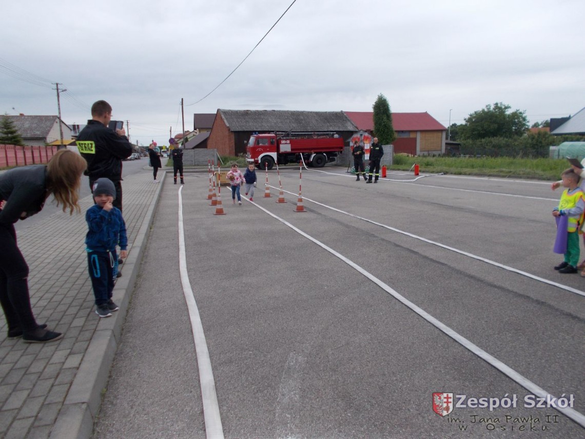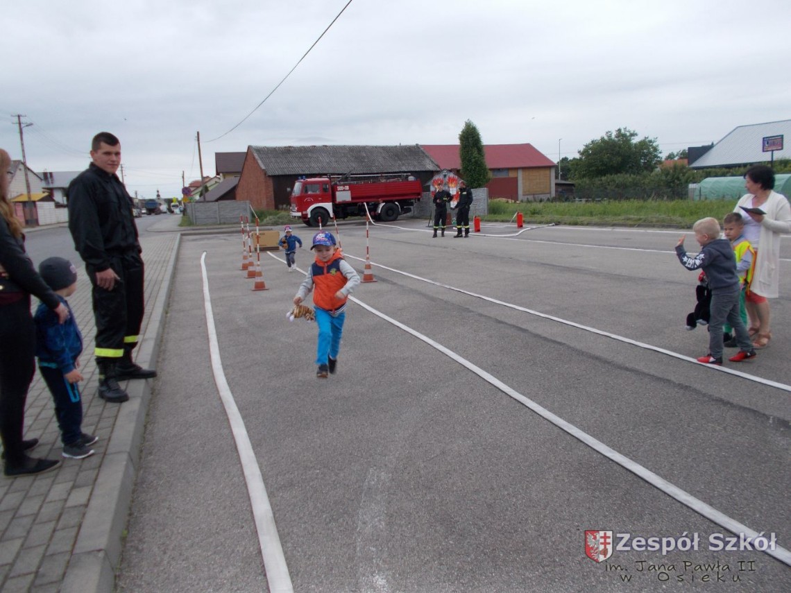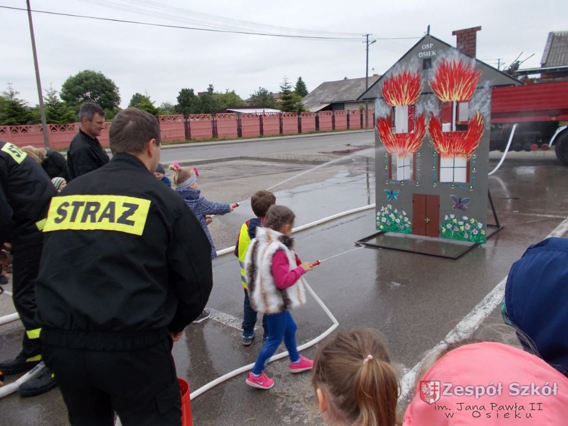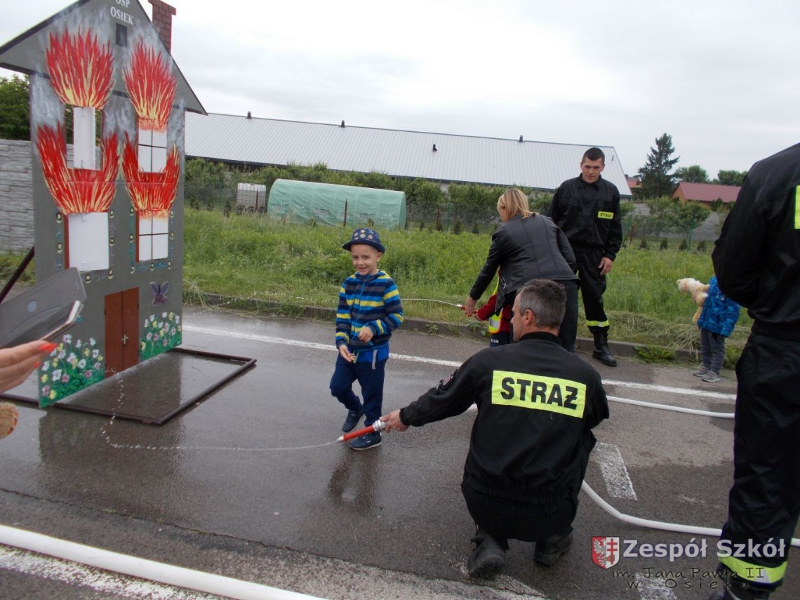 W dalszej części spotkania dzieci miały możliwość konkurować w dwóch drużynach i tym sposobem ,,uratować” misia z pożaru, który był jednocześnie nagrodą za wyścig. Następnie dzieci przeszły przez ,,komorę dymną” gdzie mogli poczuć się jak prawdziwi strażacy w akcji. To nie był jednak koniec atrakcji, strażacy samodzielnie przygotowali dla dzieci makietę ,,palącego się” domku, który każdy przedszkolak mógł zgasić przy użyciu sprzętu gaśniczego.
