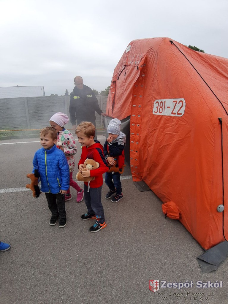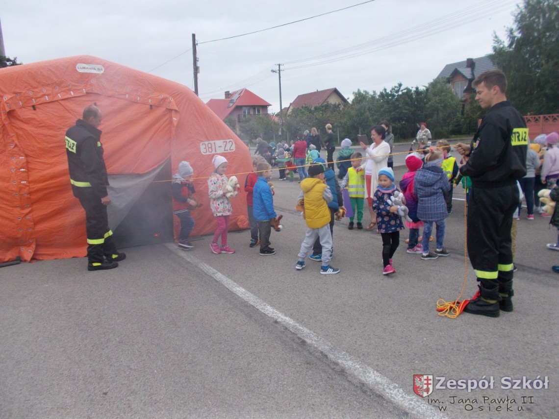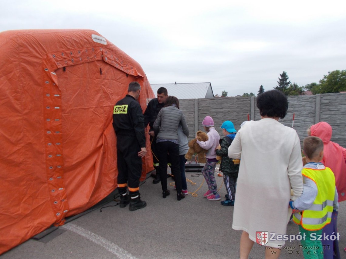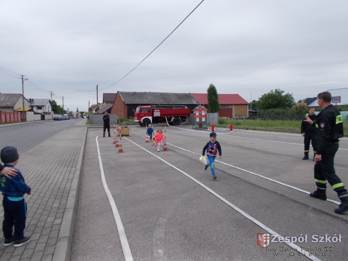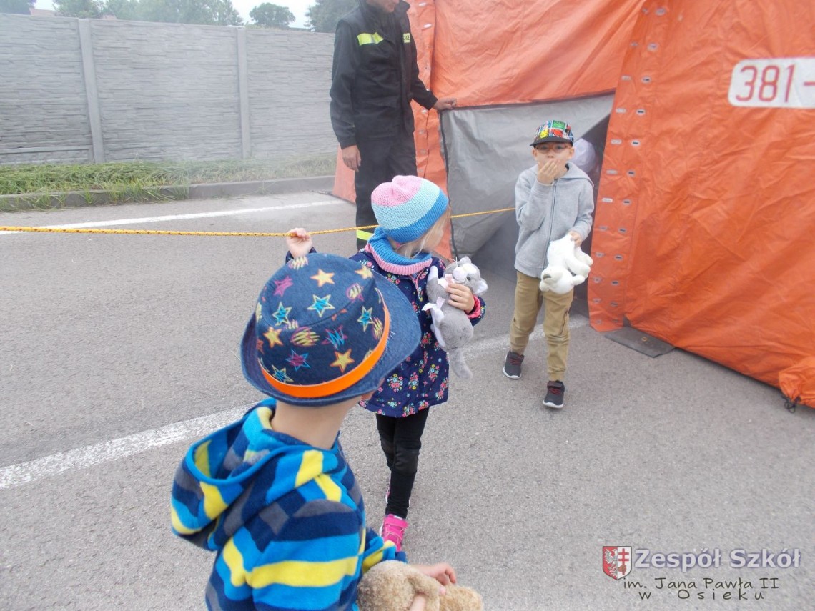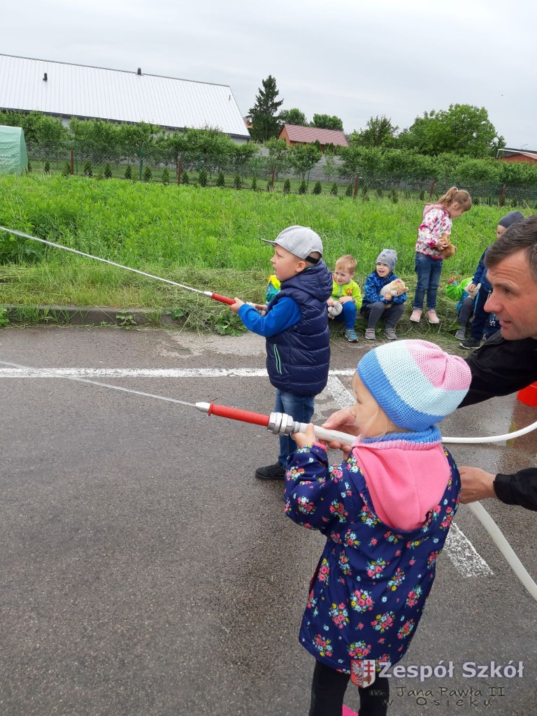 W dalszej części spotkania dzieci miały możliwość konkurować w dwóch drużynach i tym sposobem ,,uratować” misia z pożaru, który był jednocześnie nagrodą za wyścig. Następnie dzieci przeszły przez ,,komorę dymną” gdzie mogli poczuć się jak prawdziwi strażacy w akcji. To nie był jednak koniec atrakcji, strażacy samodzielnie przygotowali dla dzieci makietę ,,palącego się” domku, który każdy przedszkolak mógł zgasić przy użyciu sprzętu gaśniczego.