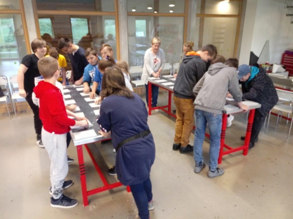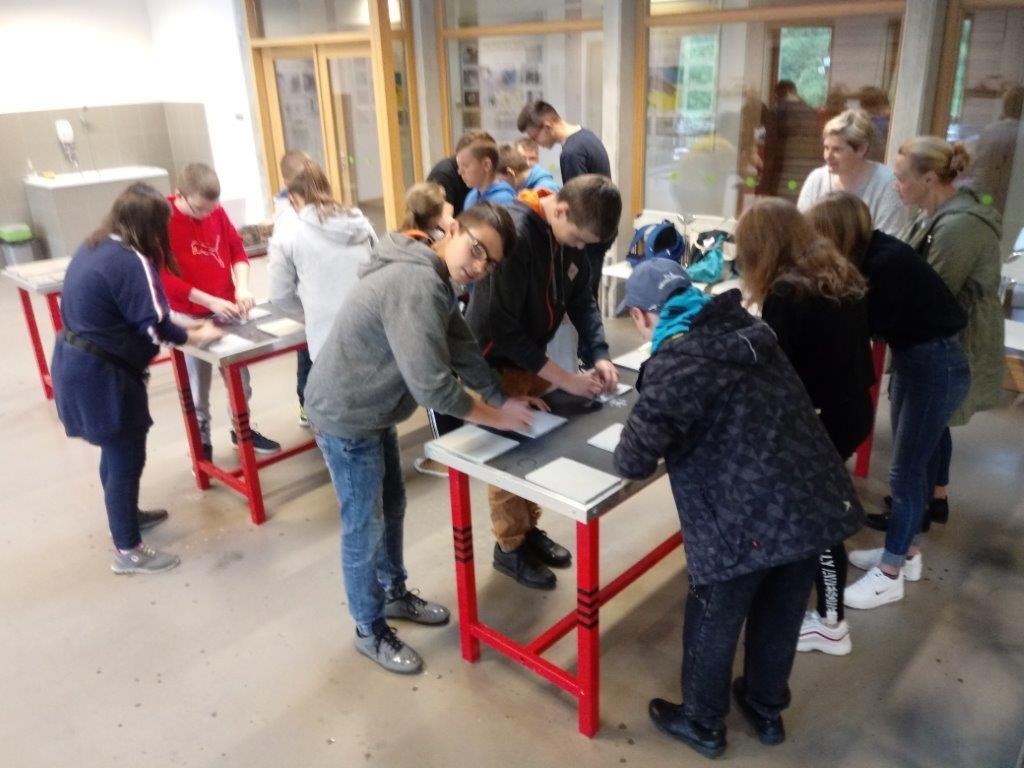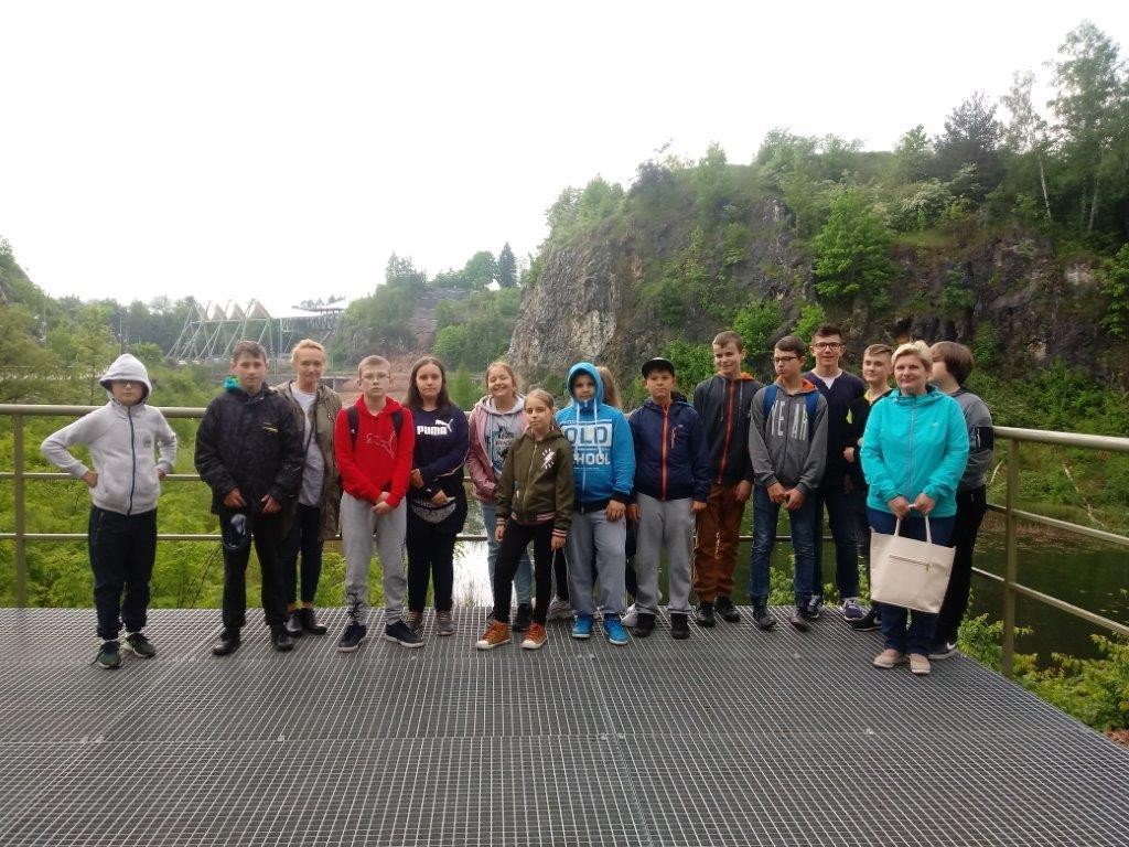 W pierwszym punkcie wycieczki uczniowie zwiedzili GEOPARK – rezerwat przyrody nieożywionej „Wietrznia” . Uczestniczyli w warsztatach szlifowania kamieni oraz w geologicznej grze edukacyjnej.