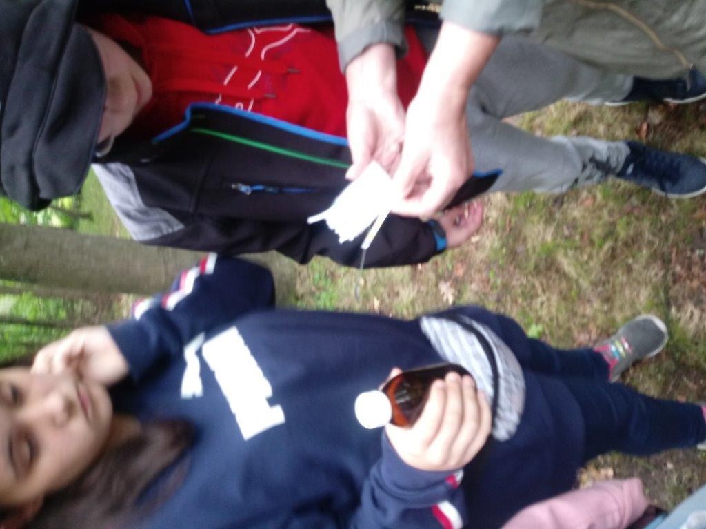 W lesie – Nadleśnictwo Czernica – uczniowie wykorzystując przyrządy pomiarowe oraz pakiet edukacyjny do obserwacji leśnych, dokonali pomiarów stopnia czystości powietrza, gleby, wody.