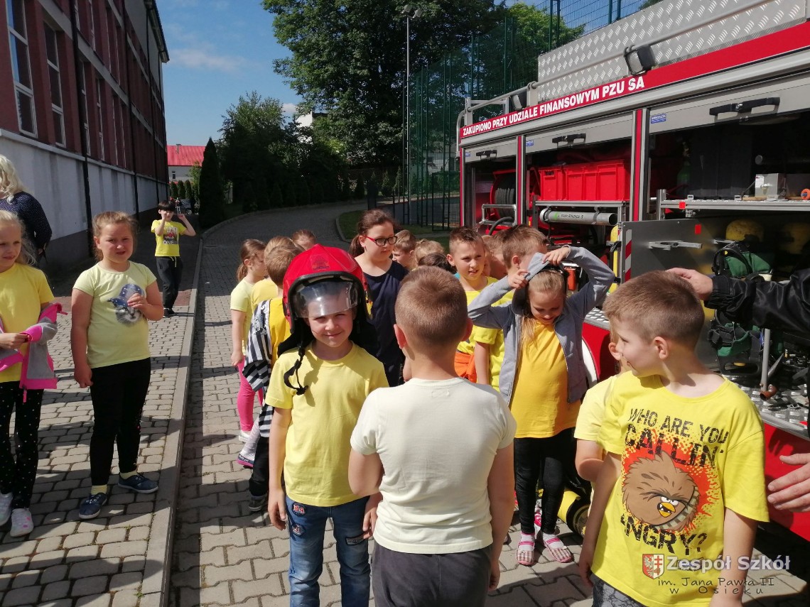 W dniu 31.05.2019r. uczniowie klasy pierwszej uczestniczyli w Dniu Profilaktyki i Recyklingu organizowanym przez uczniów klas starszych. Największą atrakcją było spotkanie ze strażakami i prezentacją wozu strażackiego. W ramach profilaktyki uczniowie klasy pierwszej rozegrali mecz piłki nożnej. Dzień ten był pełen zabaw i dobrego humoru.