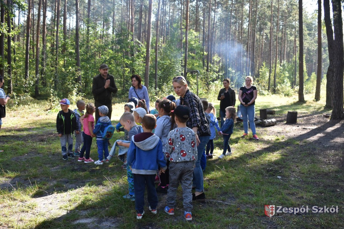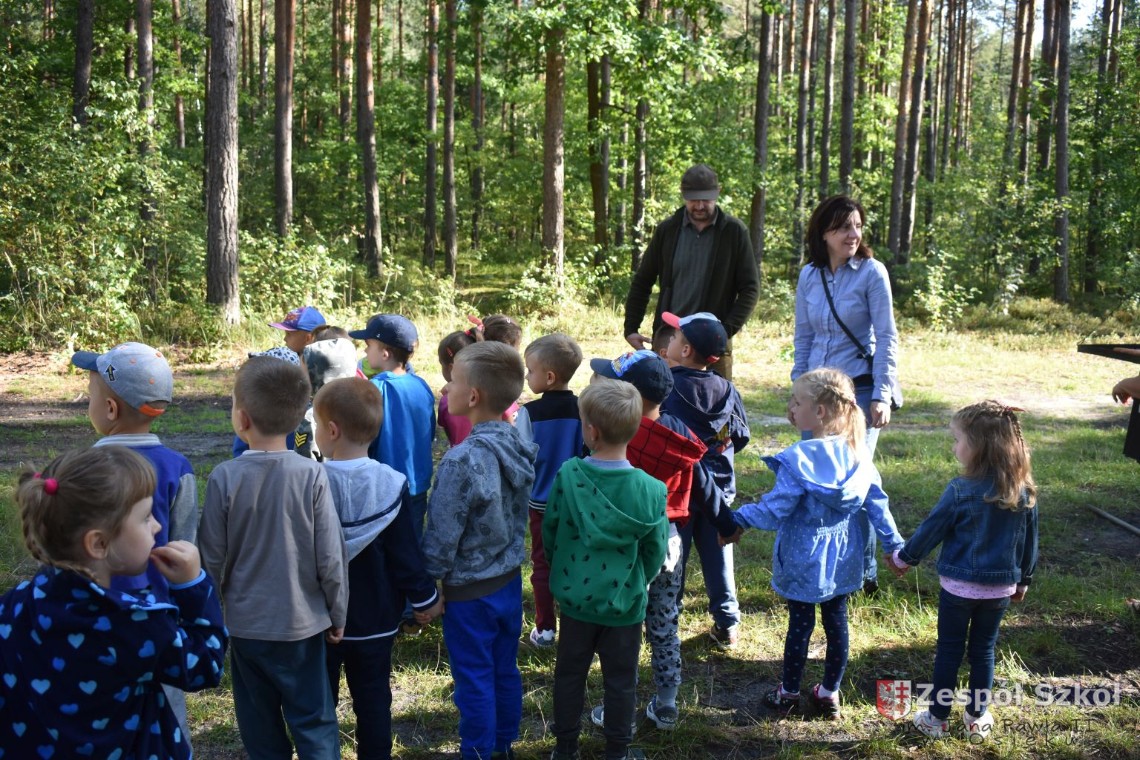 Dnia 12 września br. przedszkolaki z grupy 5 latki A i B wraz z opiekunami pojechały na wycieczkę do lasu do Pliskowoli gdzie spotkały się z podleśniczym Nadleśnictwa Staszów panem Cezarym Frankiewiczem.