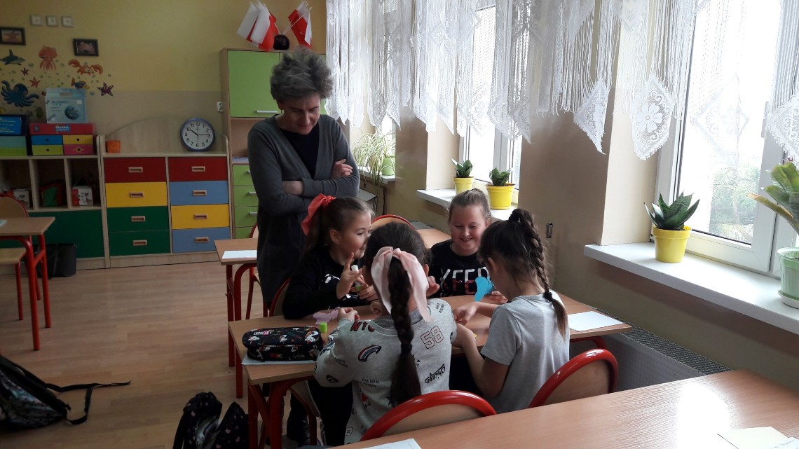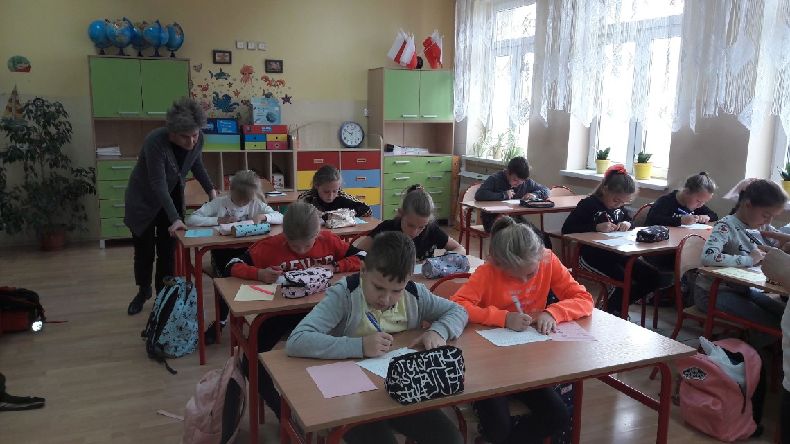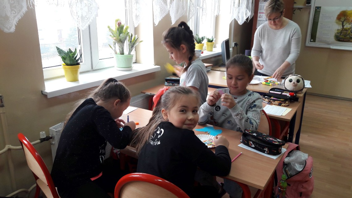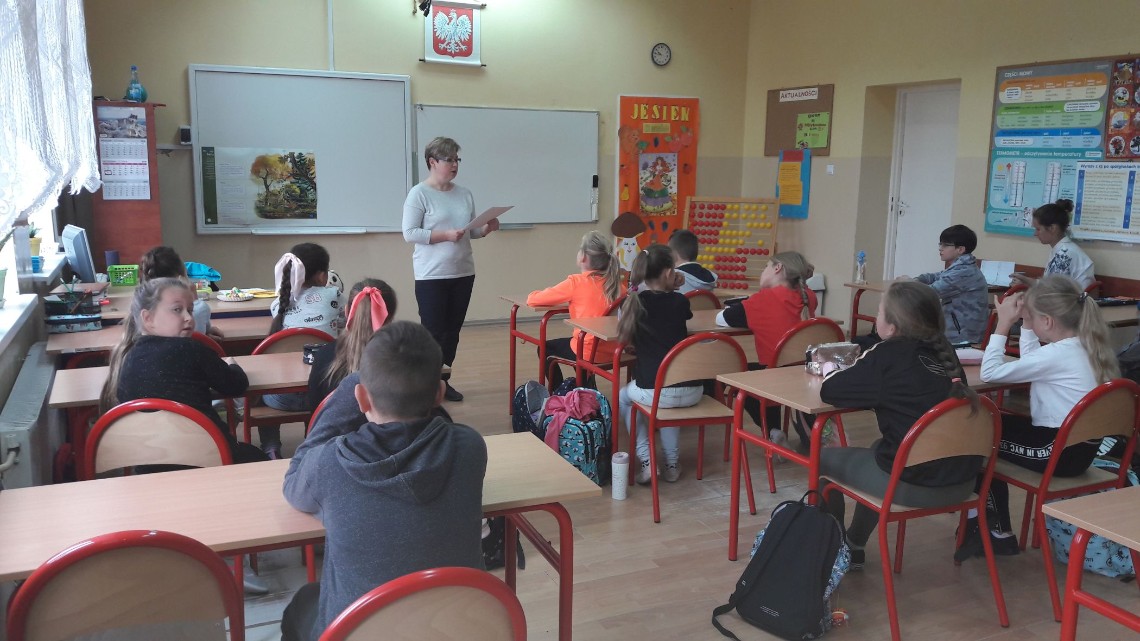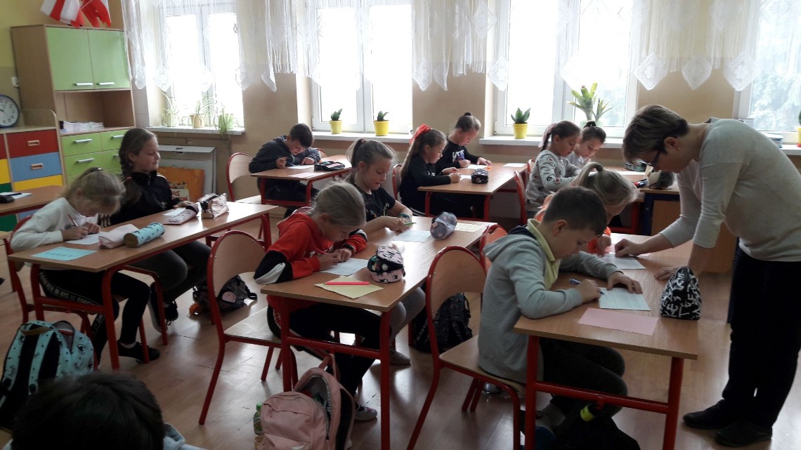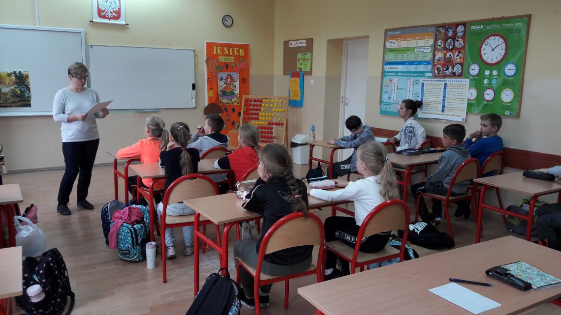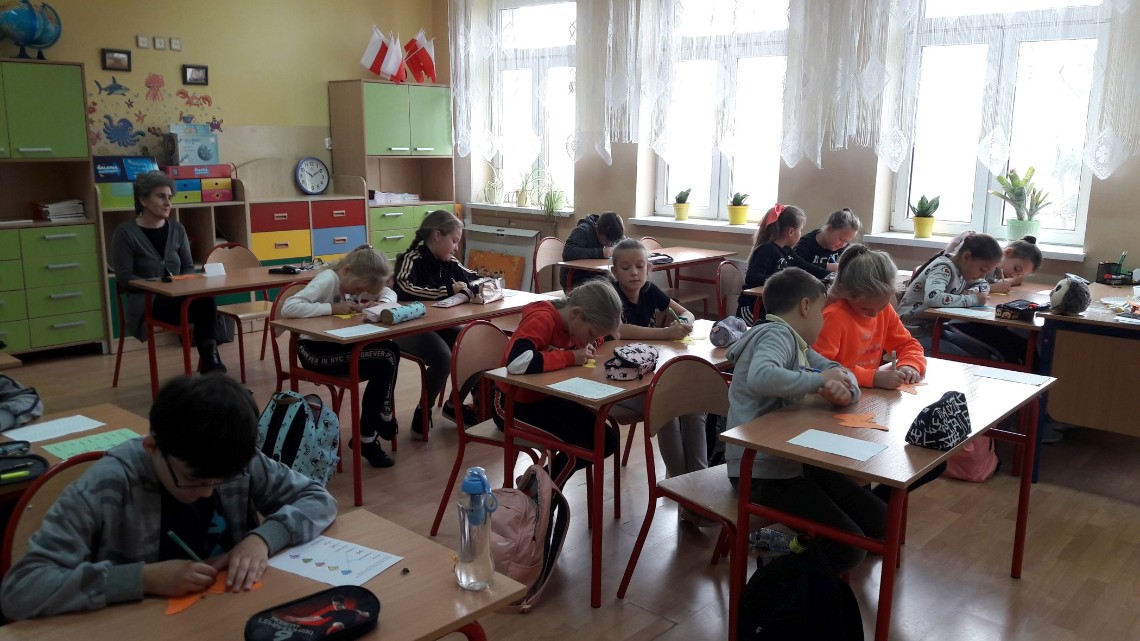 Miesiąc październik jest Miesiącem Bibliotek Szkolnych i w związku z tym w dniu 22.10.2019 r. w klasie III A została przeprowadzona lekcja biblioteczna na temat „Ogród dobrych słów – zajęcia z elementami biblioterapii”. Lekcja była prowadzona przez p. Ewę Basińską z Biblioteki Pedagogicznej w Staszowie. Uczniowie wysłuchali opowiadania o roślinach rosnących w ogrodzie dobrych słów (proszę, przepraszam, dziękuję itp.), na podstawie którego odbyła się dyskusja klasowa jak również dzieci uzupełniały karty pracy. Na podsumowanie lekcji uczniowie otrzymali papierowe motyle, na których wypisali dobre i miłe słowa jakie chcieliby skierować i wysłać do innych ludzi. Następnie wykorzystując swoją kreatywność przyozdobili wszystkie motylki, które stworzyły przepiękną dekoracje w klasie. Była to bardzo interesująca i pouczająca lekcja, na której dzieci utrwalały „czarodziejskie słowa”, jak również zostały zachęcone do częstszego sięgania po książkę. Spotkanie odbyło się we ścisłej współpracy z p. Zdzisławą Król naszą szkolną bibliotekarką, która również gościła na lekcji.