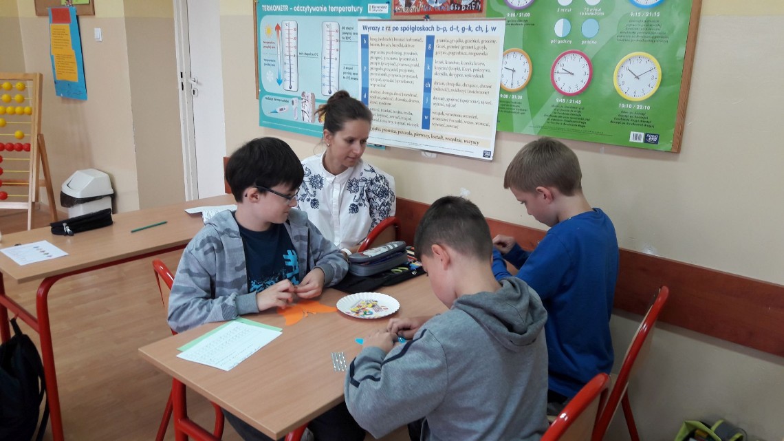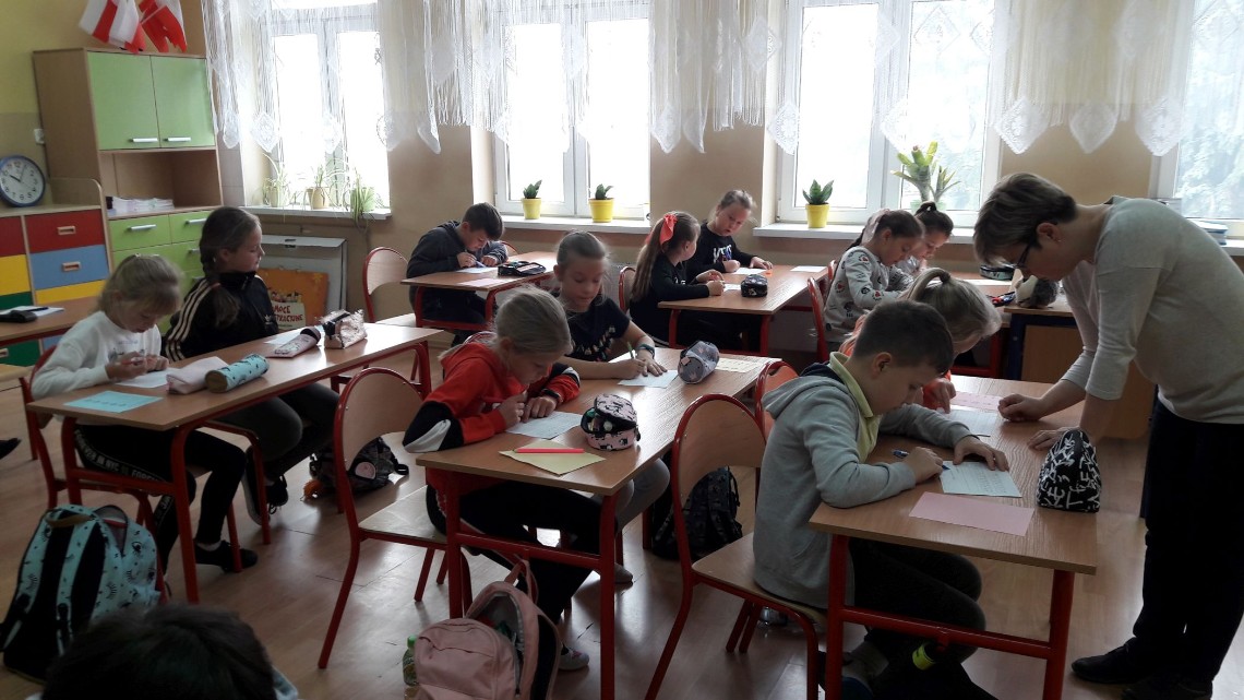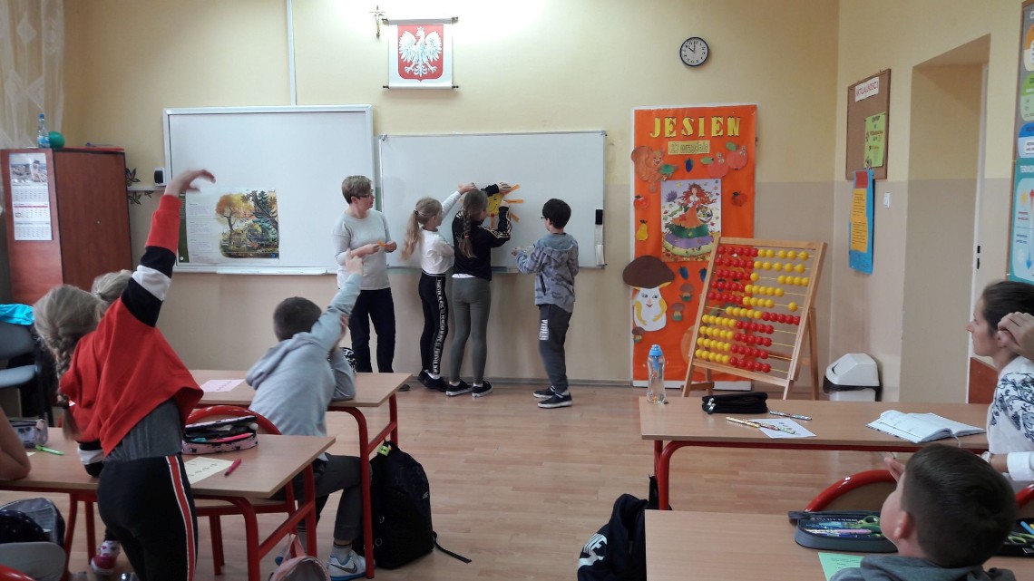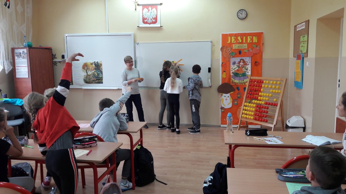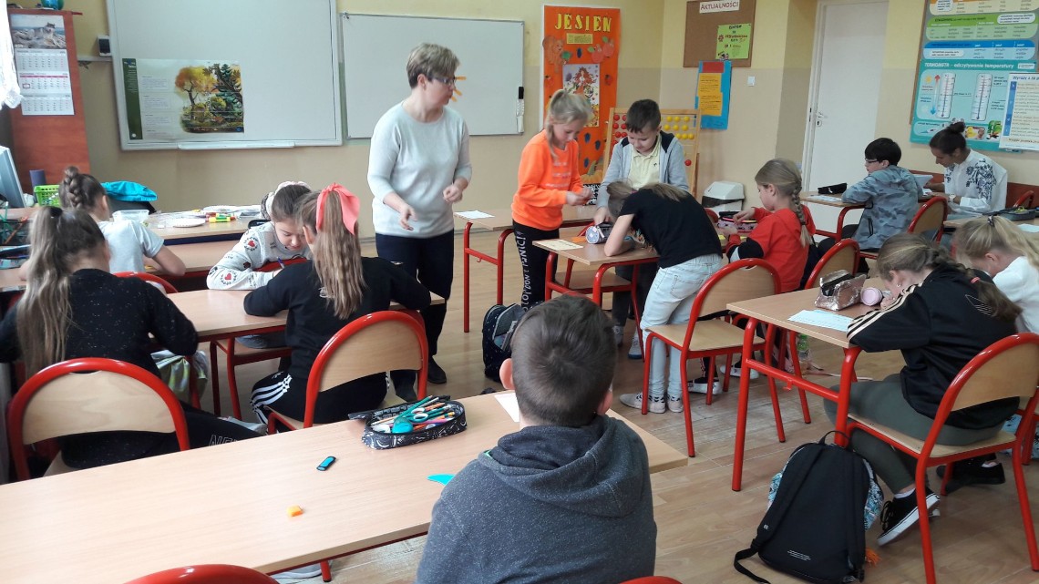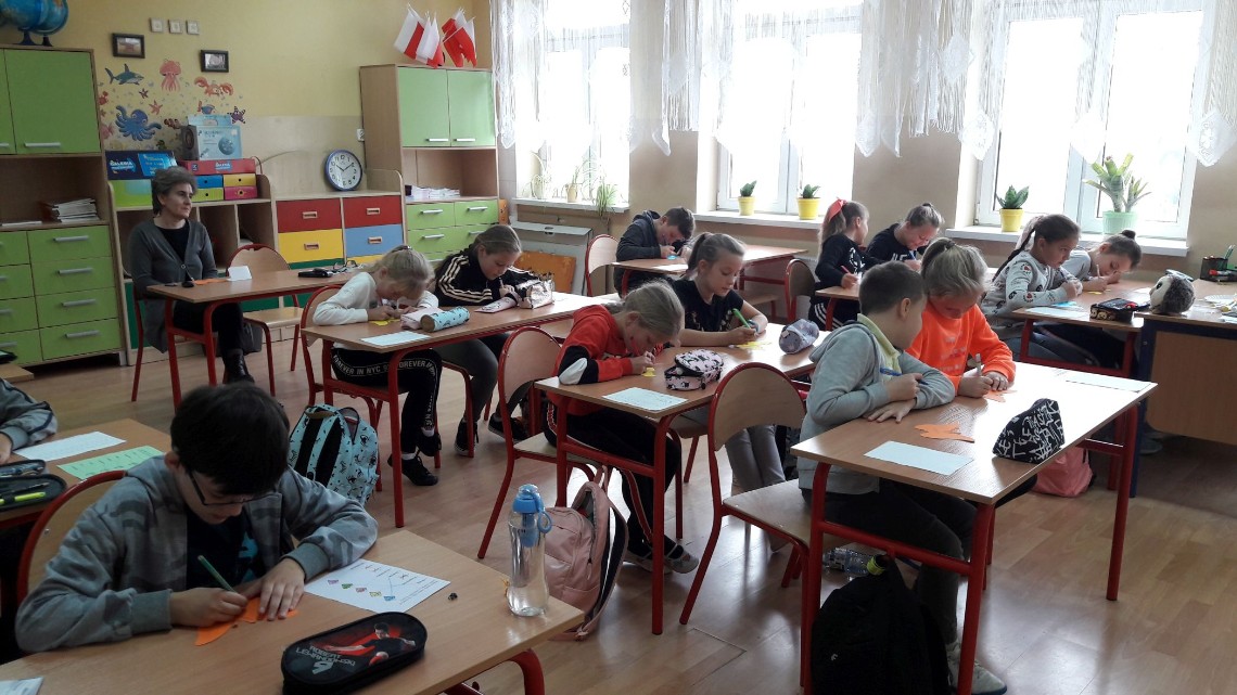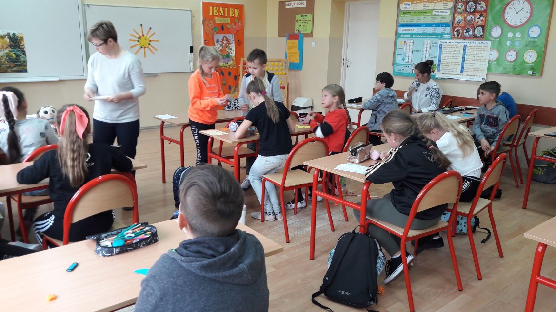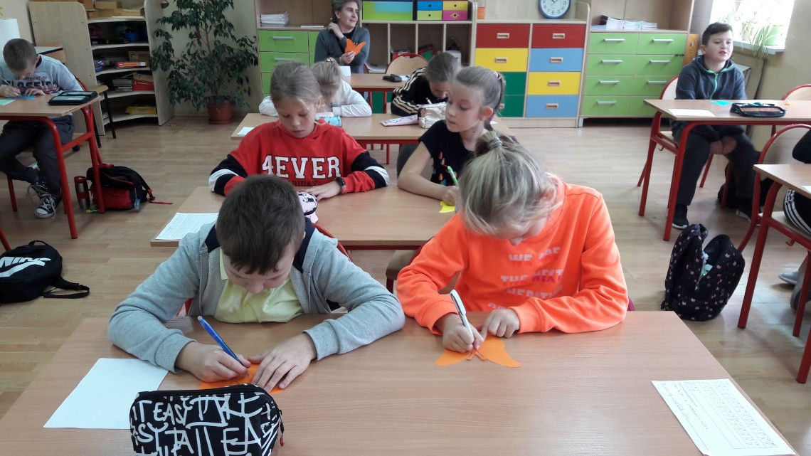 Miesiąc październik jest Miesiącem Bibliotek Szkolnych i w związku z tym w dniu 22.10.2019 r. w klasie III A została przeprowadzona lekcja biblioteczna na temat „Ogród dobrych słów – zajęcia z elementami biblioterapii”. Lekcja była prowadzona przez p. Ewę Basińską z Biblioteki Pedagogicznej w Staszowie. Uczniowie wysłuchali opowiadania o roślinach rosnących w ogrodzie dobrych słów (proszę, przepraszam, dziękuję itp.), na podstawie którego odbyła się dyskusja klasowa jak również dzieci uzupełniały karty pracy. Na podsumowanie lekcji uczniowie otrzymali papierowe motyle, na których wypisali dobre i miłe słowa jakie chcieliby skierować i wysłać do innych ludzi. Następnie wykorzystując swoją kreatywność przyozdobili wszystkie motylki, które stworzyły przepiękną dekoracje w klasie. Była to bardzo interesująca i pouczająca lekcja, na której dzieci utrwalały „czarodziejskie słowa”, jak również zostały zachęcone do częstszego sięgania po książkę. Spotkanie odbyło się we ścisłej współpracy z p. Zdzisławą Król naszą szkolną bibliotekarką, która również gościła na lekcji.