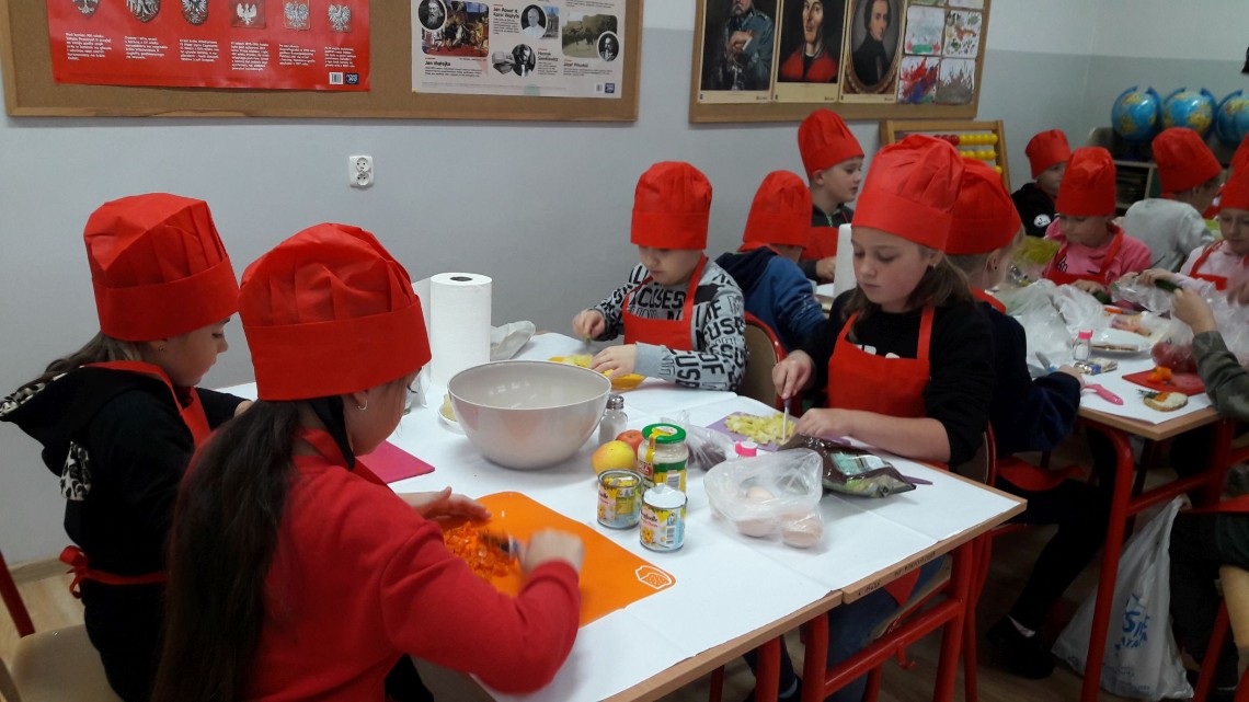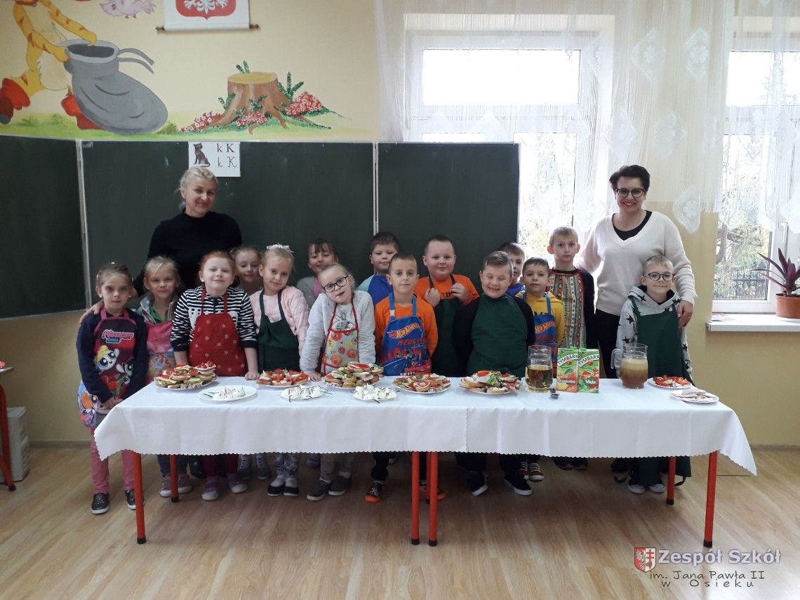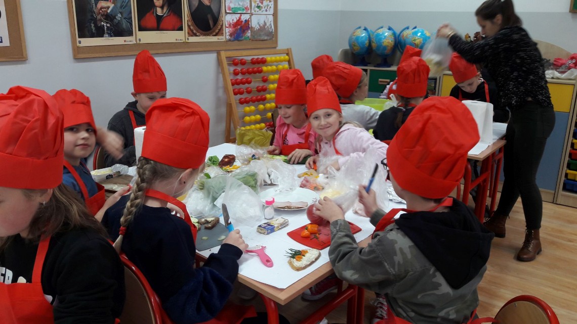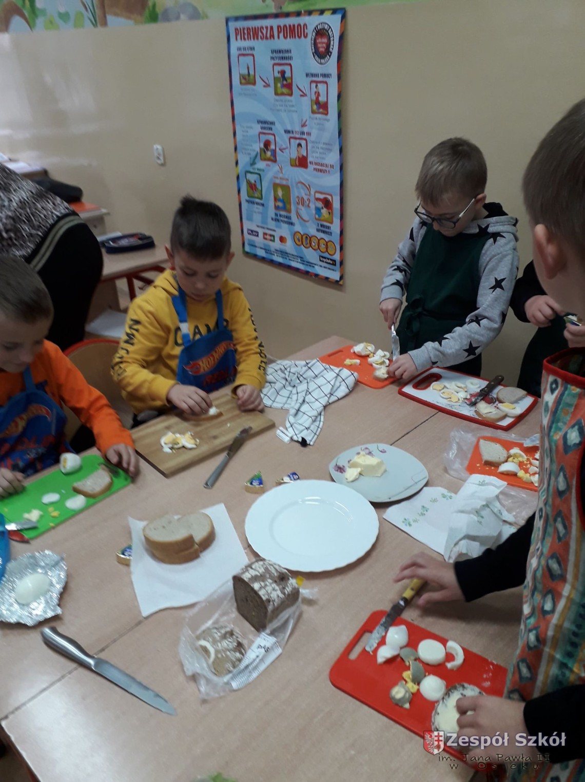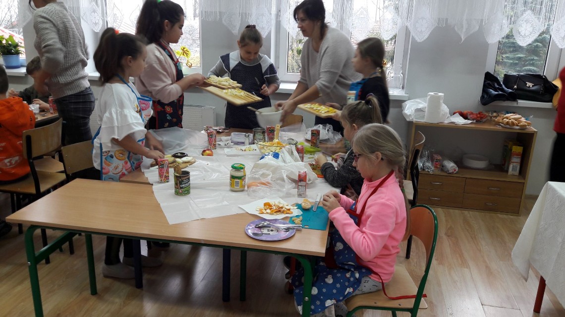Już kilka lat wspólnie ze szkołami z całej Polski obchodzimy Dzień Śniadanie Daje Moc. Śniadanie to najlepszy start w nowy dzień. Głównym celem tego programu jest: zwiększenie świadomości na temat zdrowego odżywiania i roli śniadania w diecie dziecka.Uczniowie dowiadują się, jak poszczególne składniki znajdujące się w pokarmach wpływają na funkcjonowanie ich organizmów. Zapoznają się również z 12 zasadami zdrowego odżywiania. Dzieci przygotowały urozmaicone potrawy: pomysłowe, kolorowe kanapki, sałatki jarzynowe i owocowe w towarzystwie zdrowych soków.Śniadanie przyrządzone zostało zgodnie z podstawowymi zasadami higieny i spożyte w kulturalny sposób.