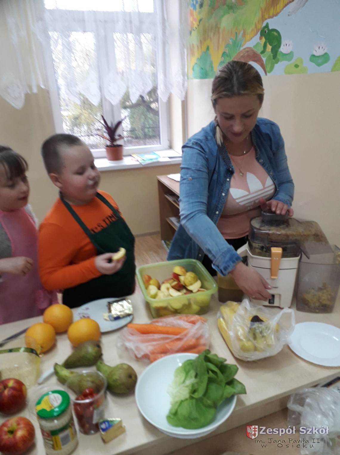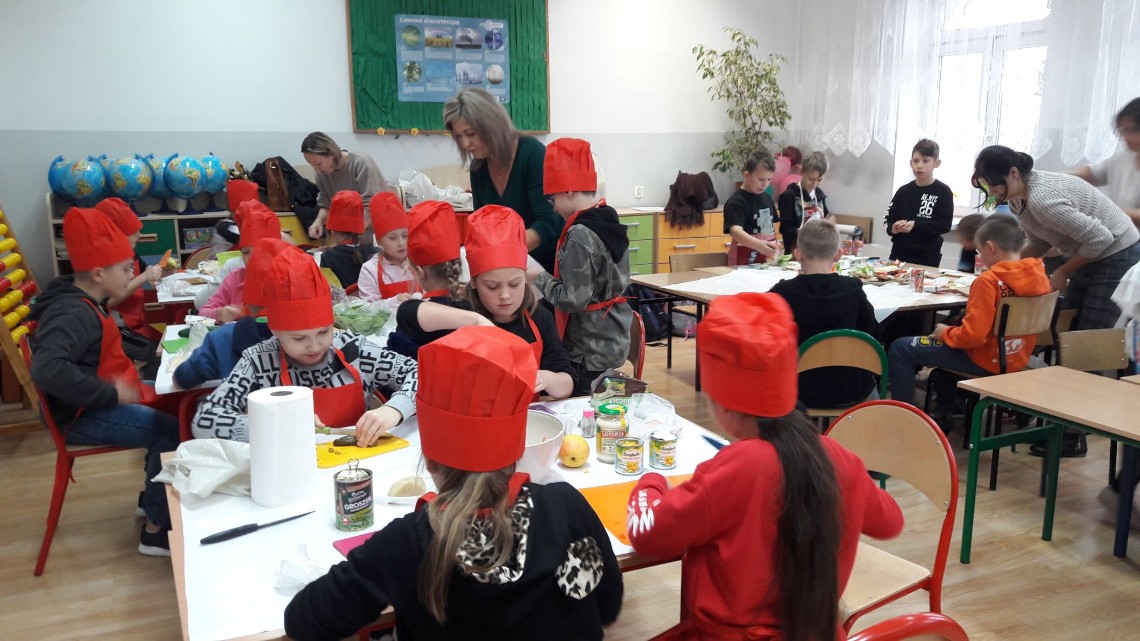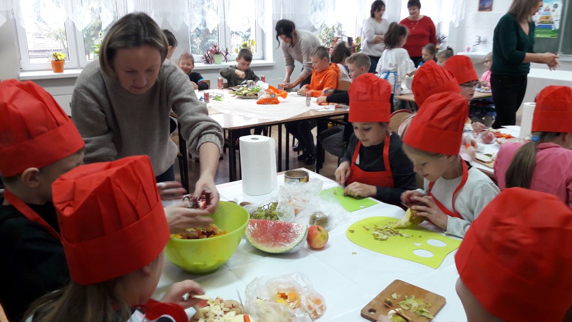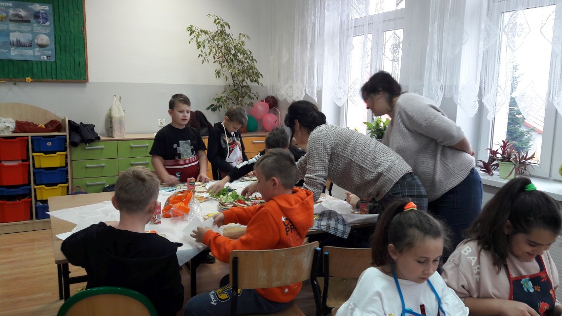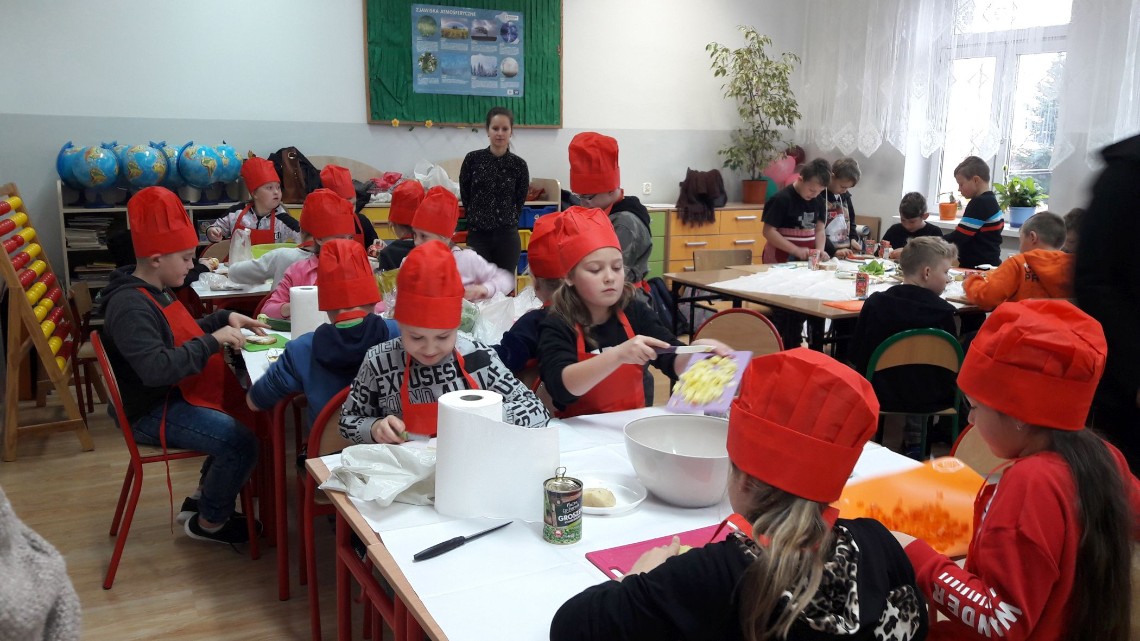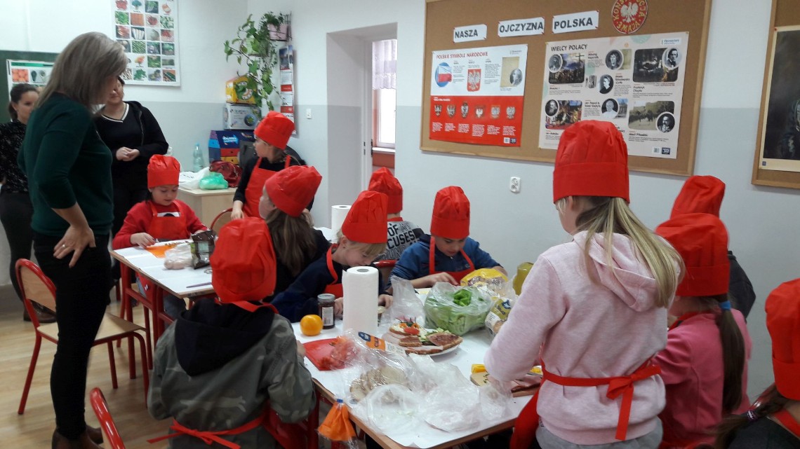 Już kilka lat wspólnie ze szkołami z całej Polski obchodzimy Dzień Śniadanie Daje Moc. Śniadanie to najlepszy start w nowy dzień. Głównym celem tego programu jest: zwiększenie świadomości na temat zdrowego odżywiania i roli śniadania w diecie dziecka.Uczniowie dowiadują się, jak poszczególne składniki znajdujące się w pokarmach wpływają na funkcjonowanie ich organizmów. Zapoznają się również z 12 zasadami zdrowego odżywiania. Dzieci przygotowały urozmaicone potrawy: pomysłowe, kolorowe kanapki, sałatki jarzynowe i owocowe w towarzystwie zdrowych soków.Śniadanie przyrządzone zostało zgodnie z podstawowymi zasadami higieny i spożyte w kulturalny sposób.