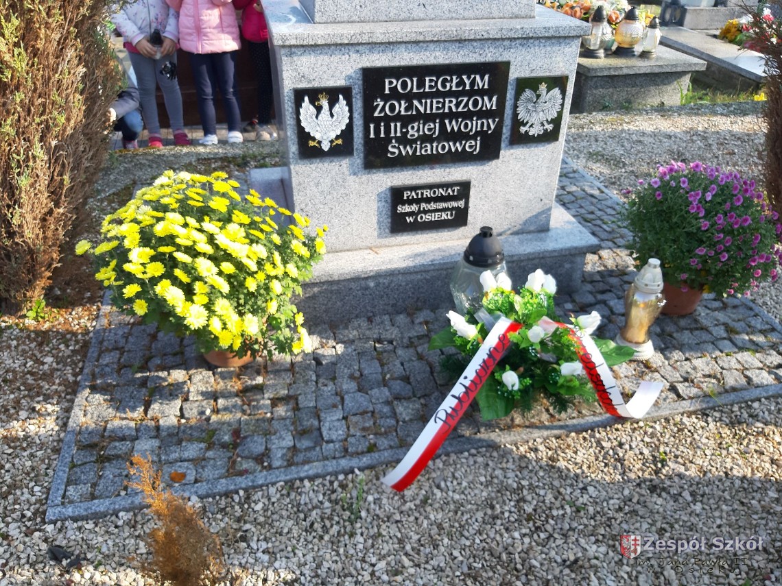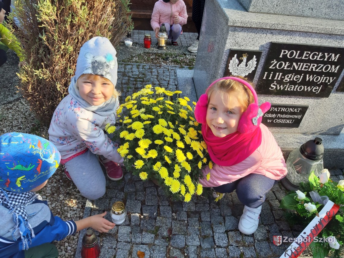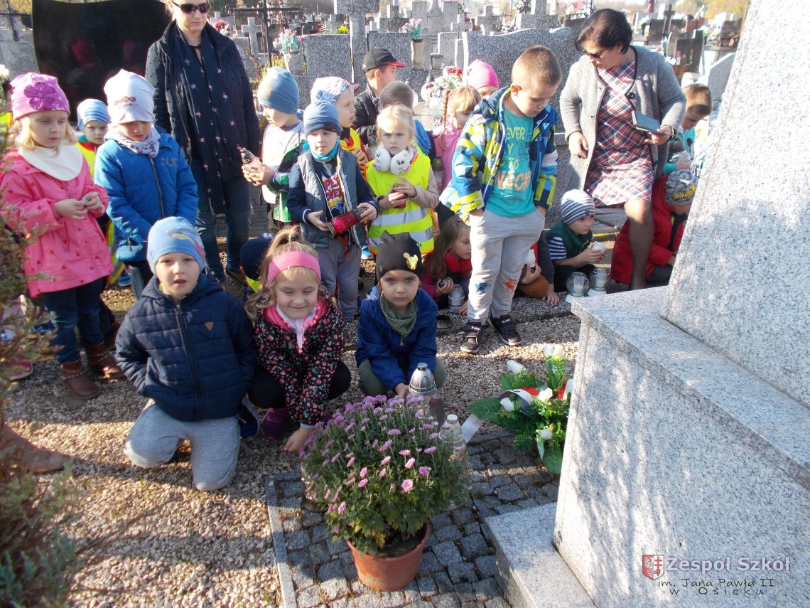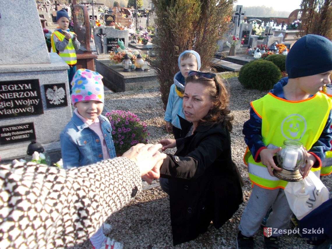 W dniu 24 IX 2019 r. przed Świętem Zmarłych dzieci ze wszystkich grup wiekowych z Publicznego Przedszkola w Osieku wybrały się na wycieczkę na Cmentarz, której celem było oddanie hołdu żołnierzom, którzy zginęli w walce o wyzwolenie miasta z okupacji hitlerowskiej , złożenie kwiatów oraz zapalenie zniczy na ich grobach. To była bardzo ważna lekcja wychowania rodzinnego, obywatelskiego i patriotycznego, która pozostanie dzieciom w pamięci.