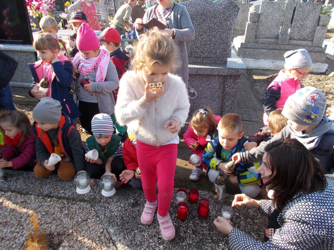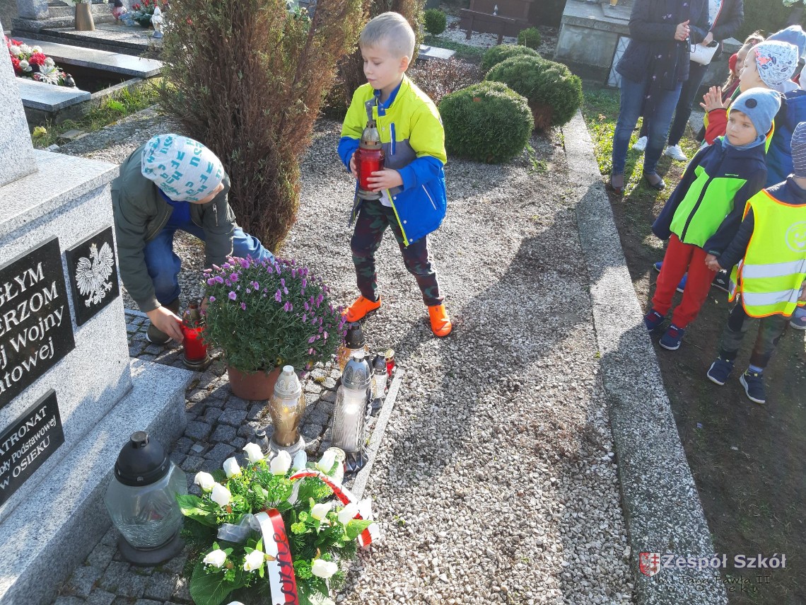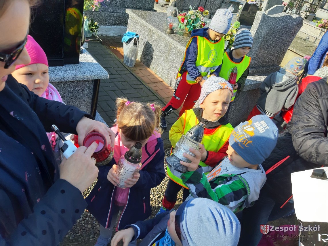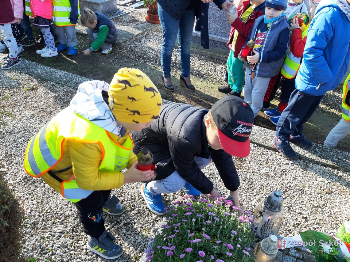W dniu 24 IX 2019 r. przed Świętem Zmarłych dzieci ze wszystkich grup wiekowych z Publicznego Przedszkola w Osieku wybrały się na wycieczkę na Cmentarz, której celem było oddanie hołdu żołnierzom, którzy zginęli w walce o wyzwolenie miasta z okupacji hitlerowskiej , złożenie kwiatów oraz zapalenie zniczy na ich grobach. To była bardzo ważna lekcja wychowania rodzinnego, obywatelskiego i patriotycznego, która pozostanie dzieciom w pamięci.