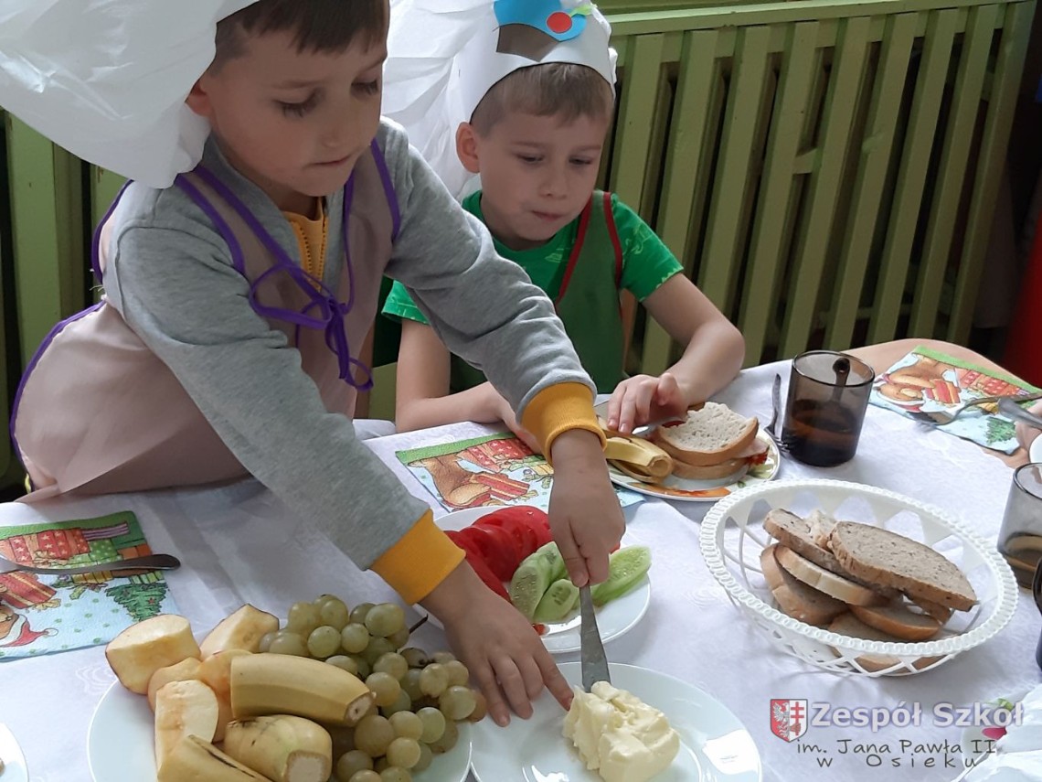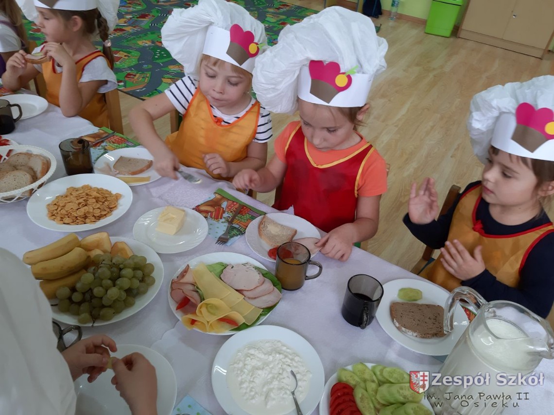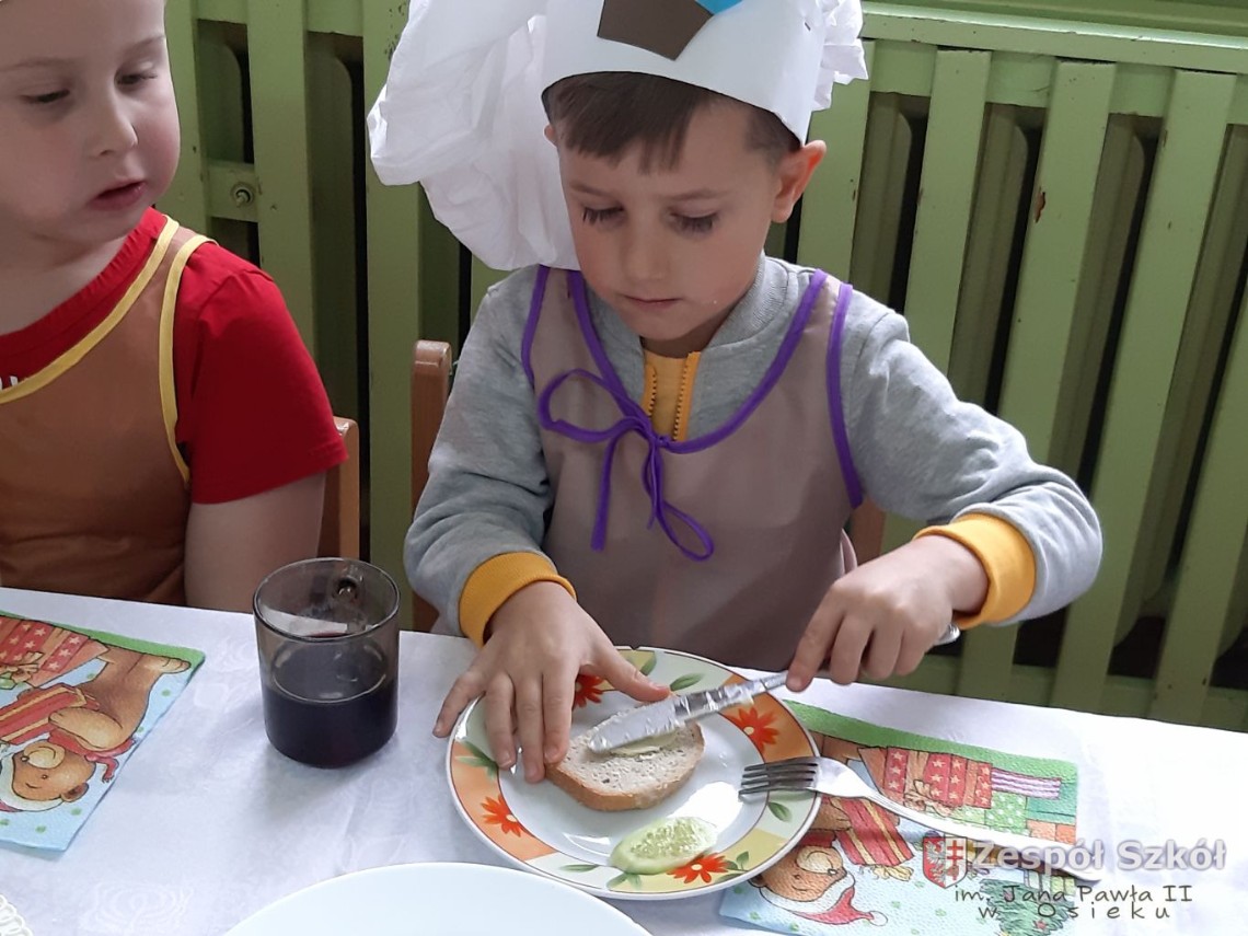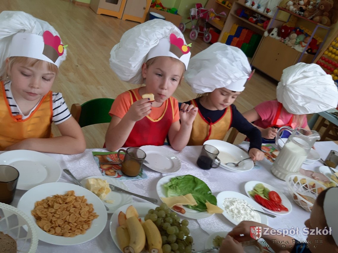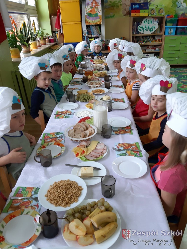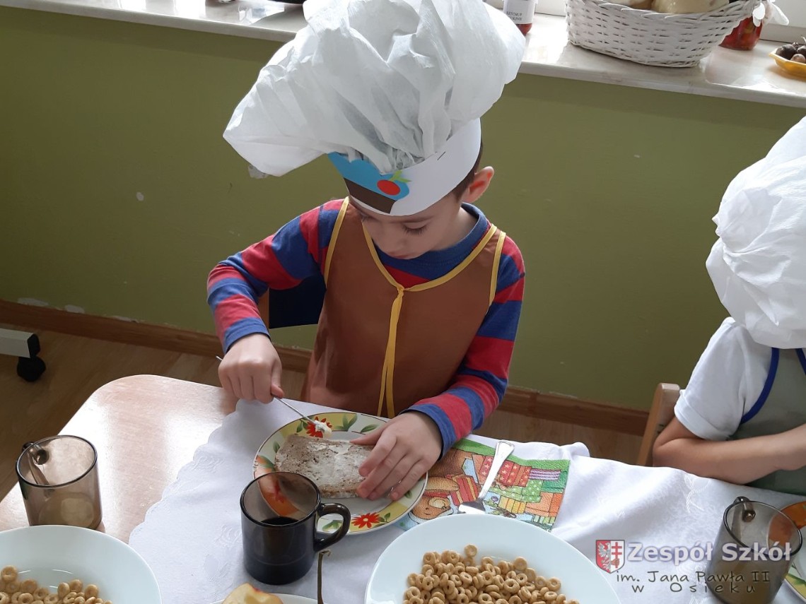 Śniadanie to najważniejszy posiłek dnia, dzięki któremu dzieci mają energię do nauki, lepiej koncentrują się podczas zajęć i mają siłę do zabawy. Kształtowanie odpowiednich nawyków żywieniowych jest bardzo ważne, dlatego 8 listopada dzieci z grupy sześciolatków uczestniczyły w programie edukacyjnym Śniadanie Daje Moc. Dzieci miały możliwość wspólnego przygotowywania zdrowego śniadania w oparciu o poznane zasady zdrowego odżywiania, które pełnią ważną rolę prawidłowego żywienia w codziennym życiu.