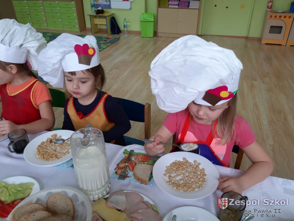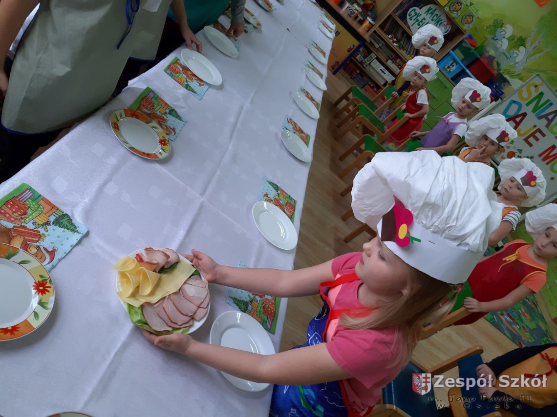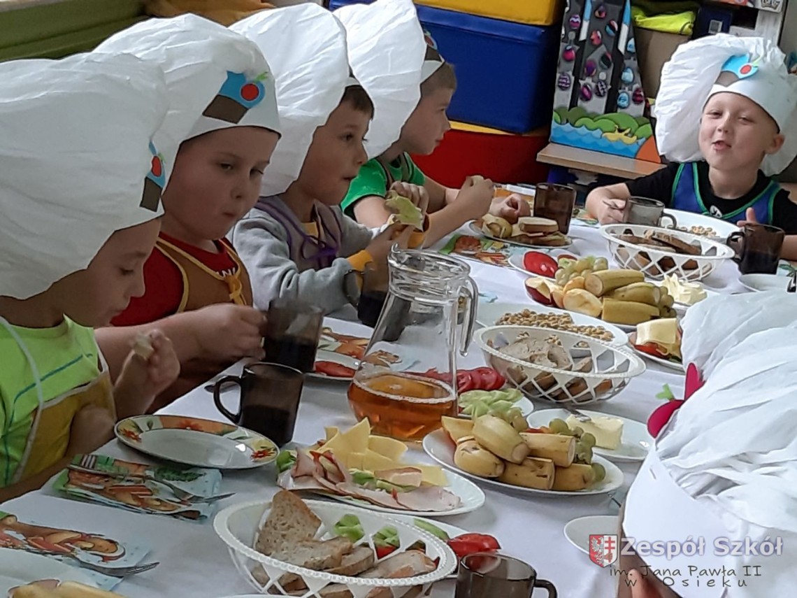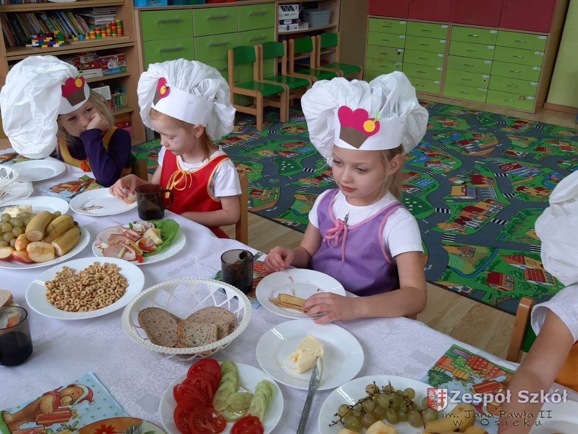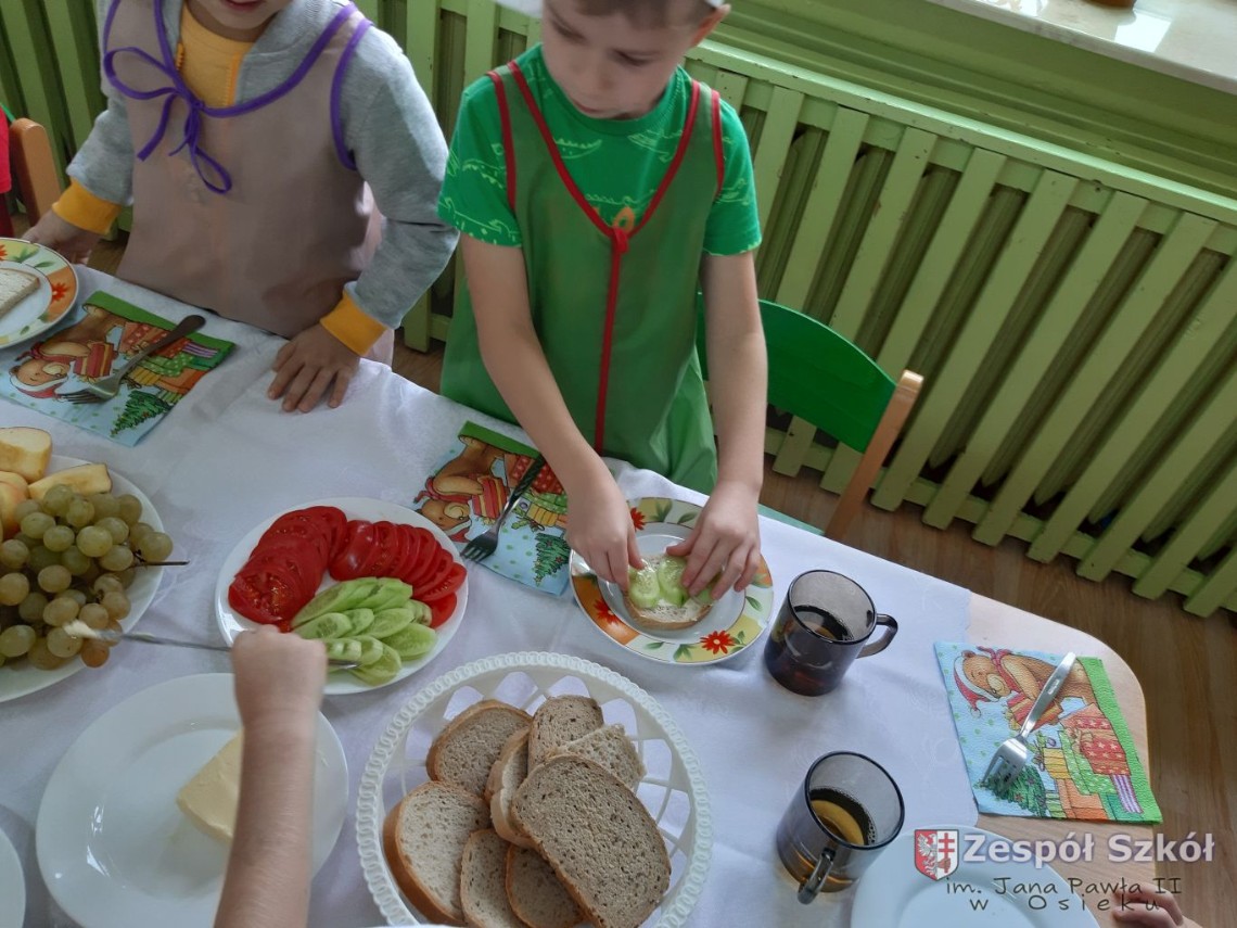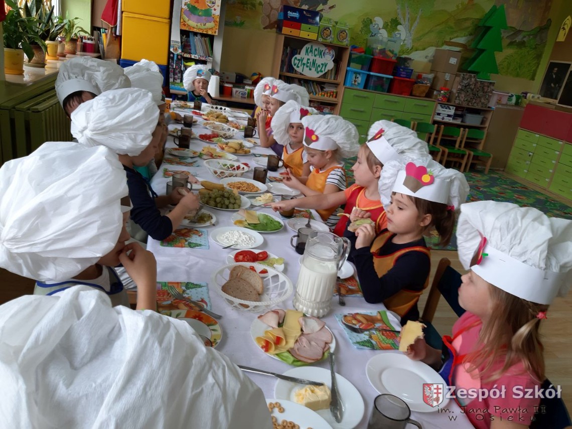 Śniadanie to najważniejszy posiłek dnia, dzięki któremu dzieci mają energię do nauki, lepiej koncentrują się podczas zajęć i mają siłę do zabawy. Kształtowanie odpowiednich nawyków żywieniowych jest bardzo ważne, dlatego 8 listopada dzieci z grupy sześciolatków uczestniczyły w programie edukacyjnym Śniadanie Daje Moc. Dzieci miały możliwość wspólnego przygotowywania zdrowego śniadania w oparciu o poznane zasady zdrowego odżywiania, które pełnią ważną rolę prawidłowego żywienia w codziennym życiu.