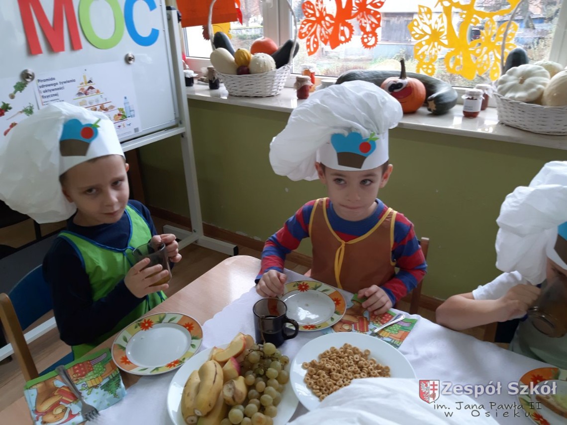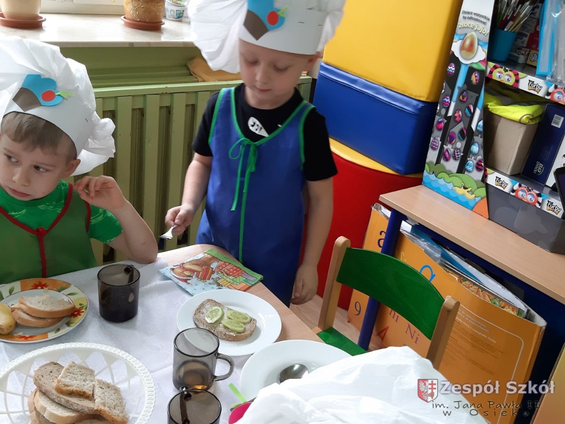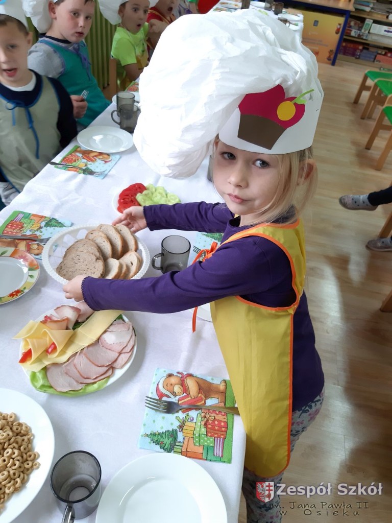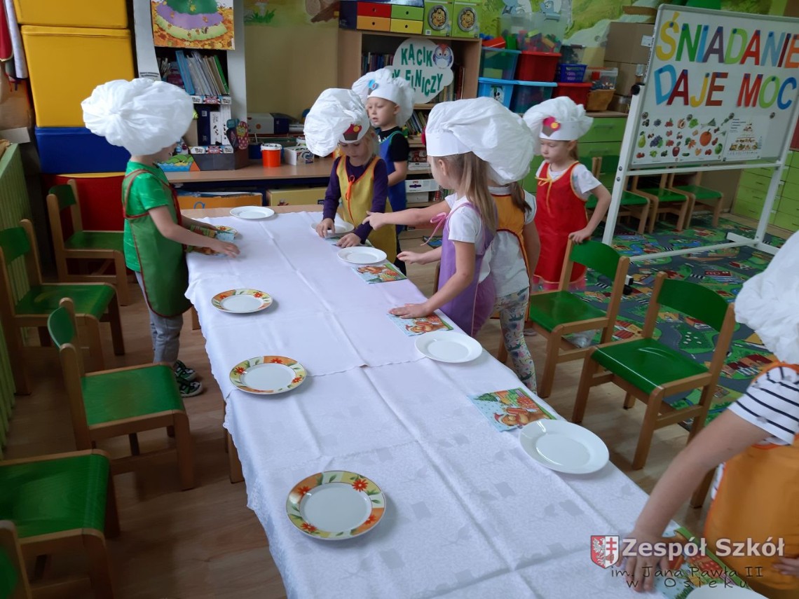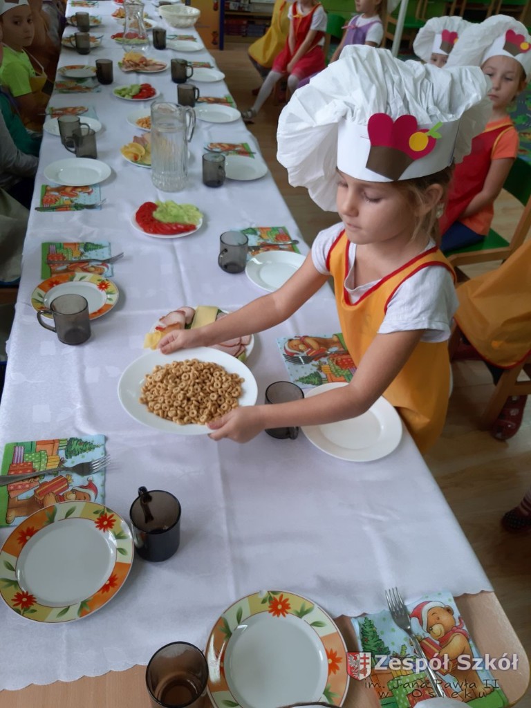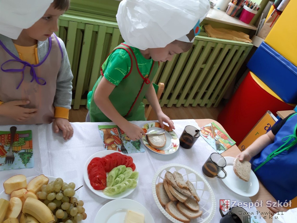 Śniadanie to najważniejszy posiłek dnia, dzięki któremu dzieci mają energię do nauki, lepiej koncentrują się podczas zajęć i mają siłę do zabawy. Kształtowanie odpowiednich nawyków żywieniowych jest bardzo ważne, dlatego 8 listopada dzieci z grupy sześciolatków uczestniczyły w programie edukacyjnym Śniadanie Daje Moc. Dzieci miały możliwość wspólnego przygotowywania zdrowego śniadania w oparciu o poznane zasady zdrowego odżywiania, które pełnią ważną rolę prawidłowego żywienia w codziennym życiu.