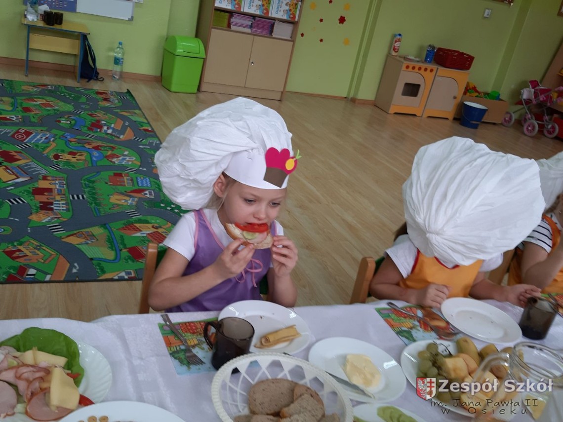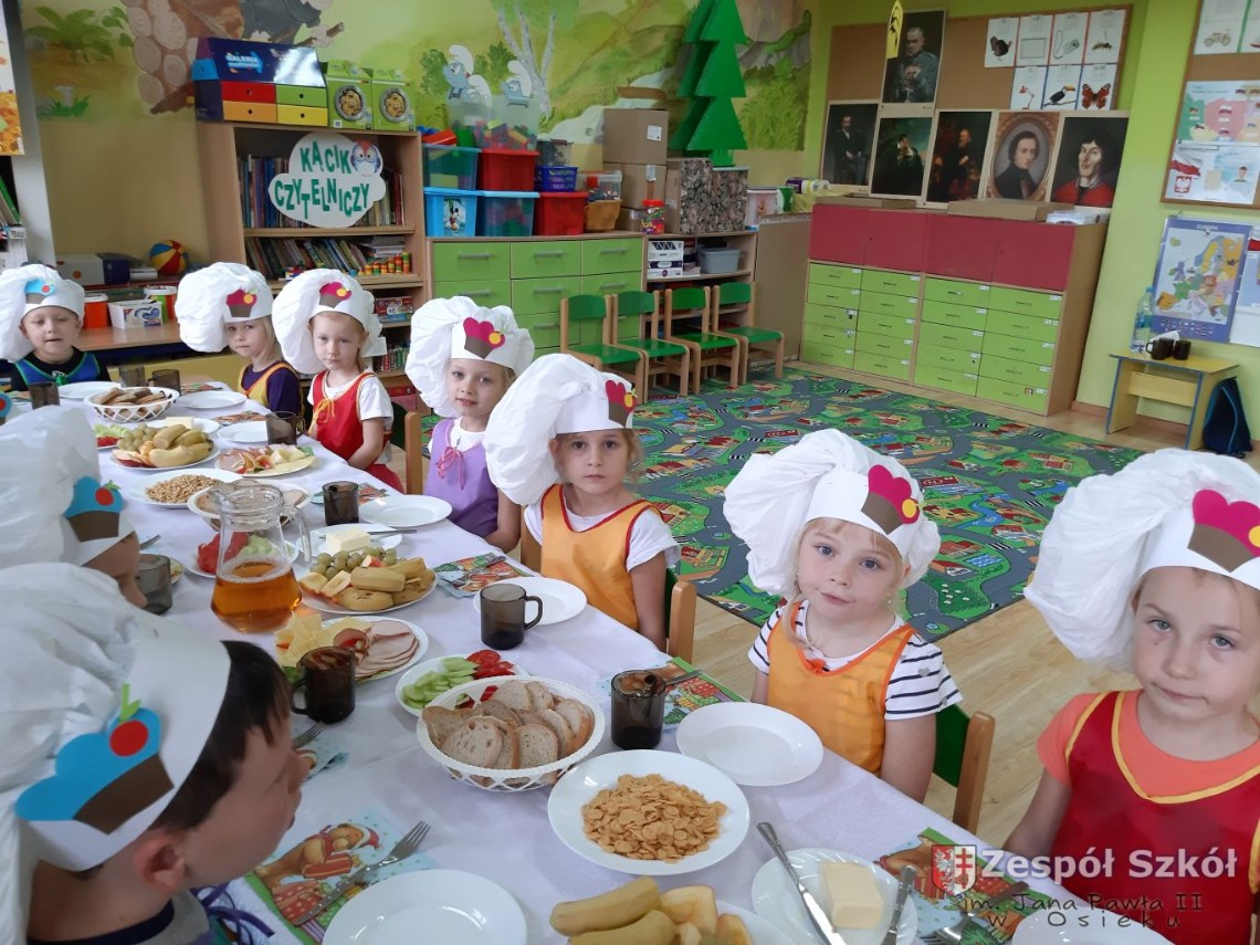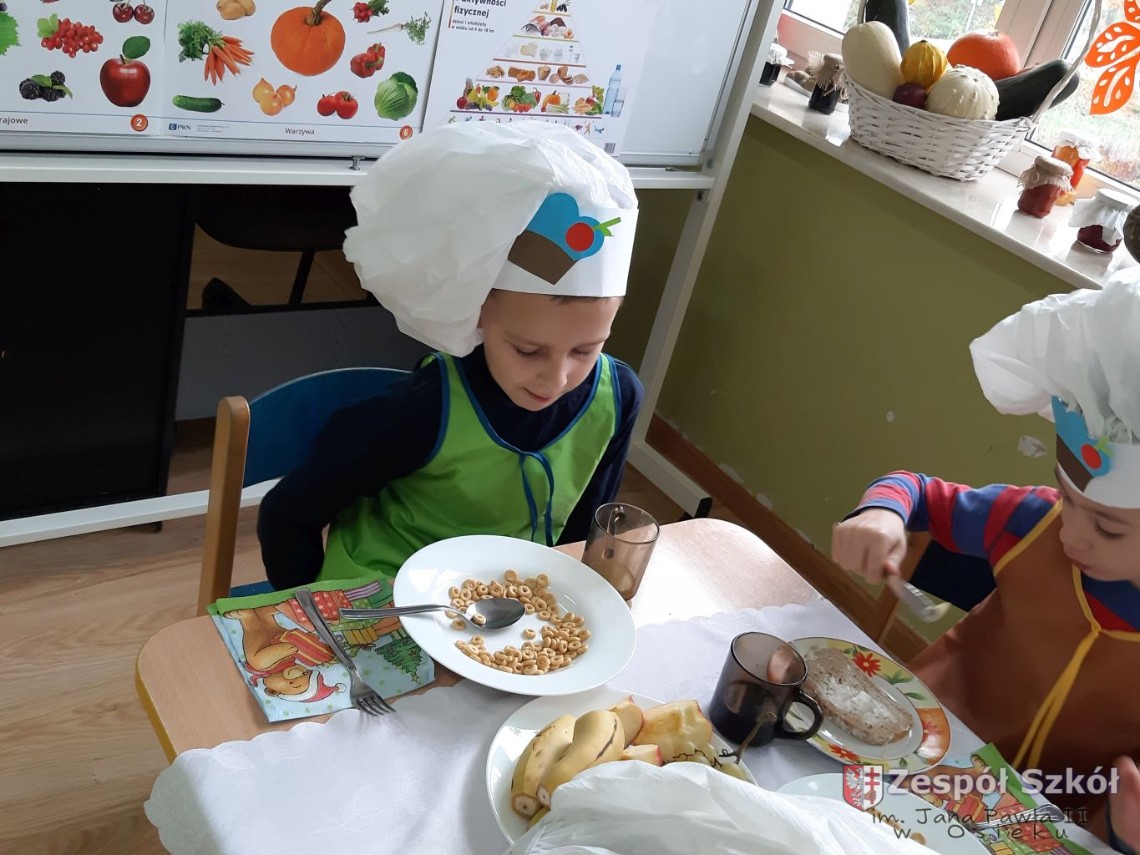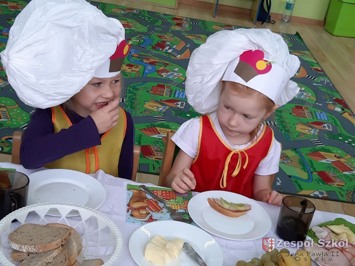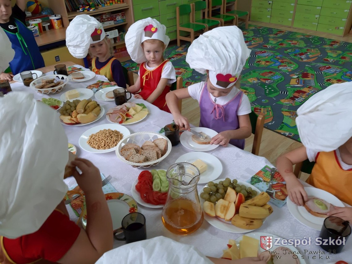 Śniadanie to najważniejszy posiłek dnia, dzięki któremu dzieci mają energię do nauki, lepiej koncentrują się podczas zajęć i mają siłę do zabawy. Kształtowanie odpowiednich nawyków żywieniowych jest bardzo ważne, dlatego 8 listopada dzieci z grupy sześciolatków uczestniczyły w programie edukacyjnym Śniadanie Daje Moc. Dzieci miały możliwość wspólnego przygotowywania zdrowego śniadania w oparciu o poznane zasady zdrowego odżywiania, które pełnią ważną rolę prawidłowego żywienia w codziennym życiu.