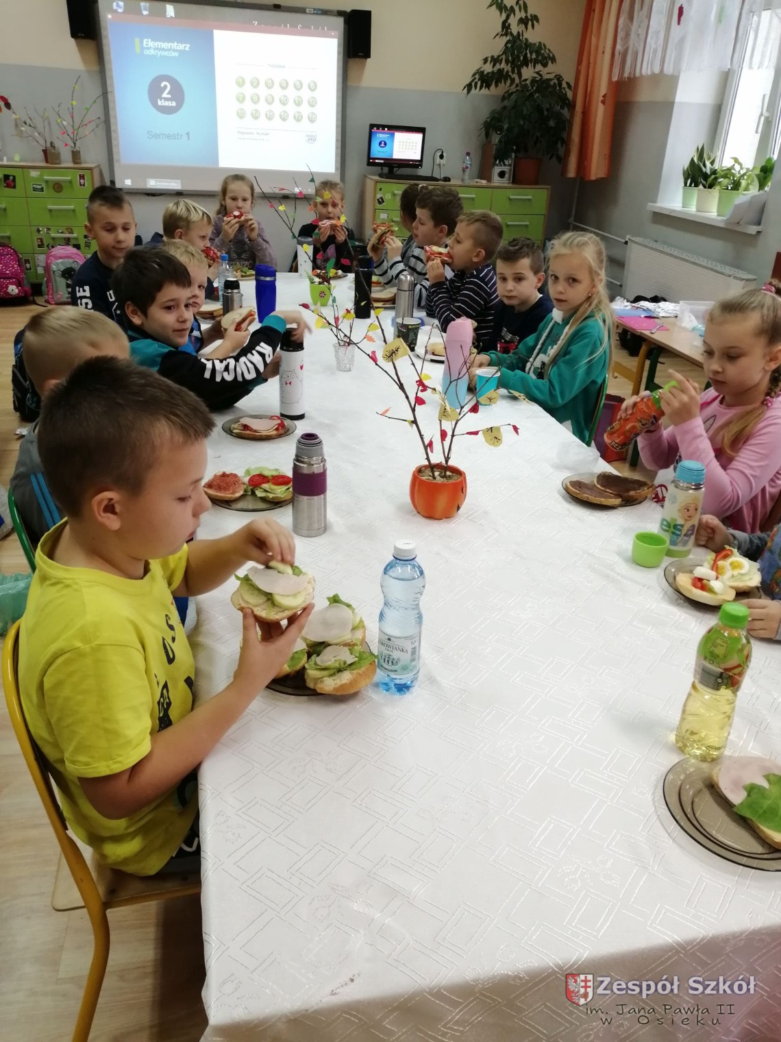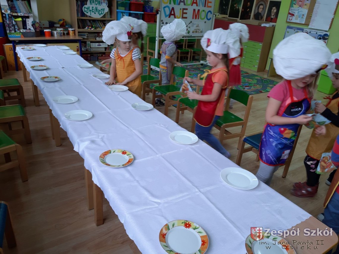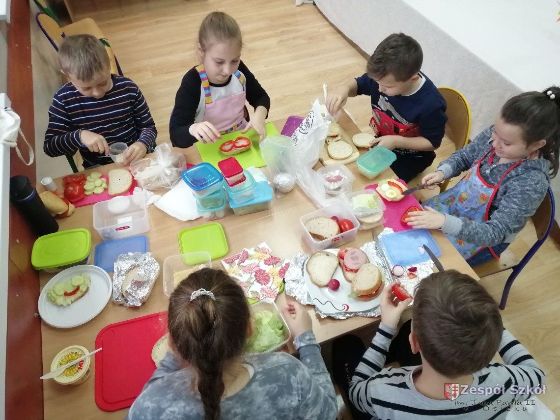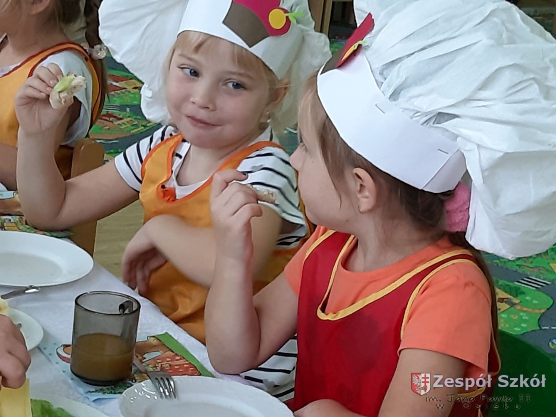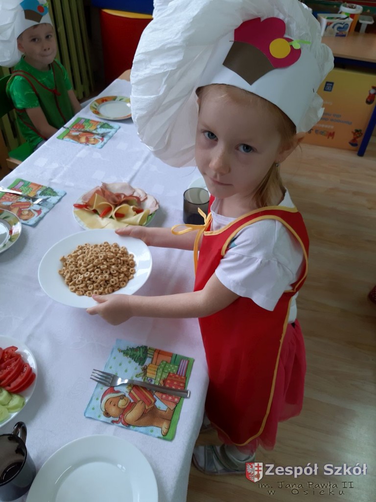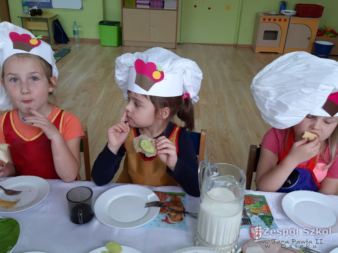 Śniadanie to najważniejszy posiłek dnia, dzięki któremu dzieci mają energię do nauki, lepiej koncentrują się podczas zajęć i mają siłę do zabawy. Kształtowanie odpowiednich nawyków żywieniowych jest bardzo ważne, dlatego 8 listopada dzieci z grupy sześciolatków uczestniczyły w programie edukacyjnym Śniadanie Daje Moc. Dzieci miały możliwość wspólnego przygotowywania zdrowego śniadania w oparciu o poznane zasady zdrowego odżywiania, które pełnią ważną rolę prawidłowego żywienia w codziennym życiu.