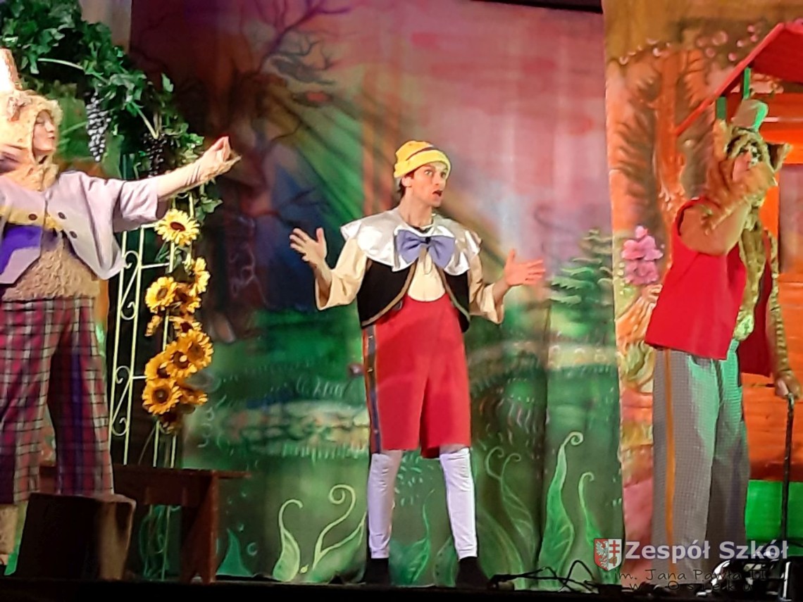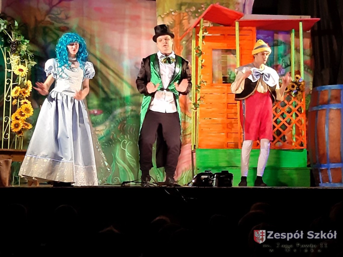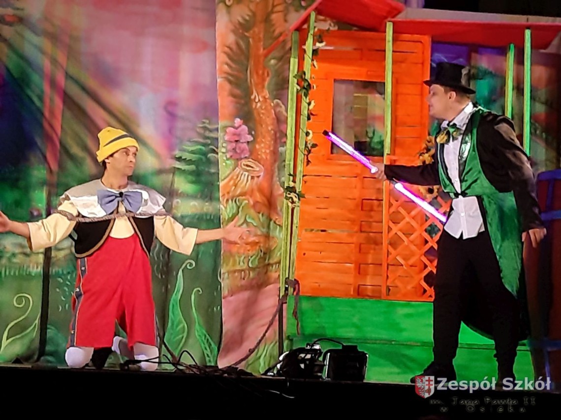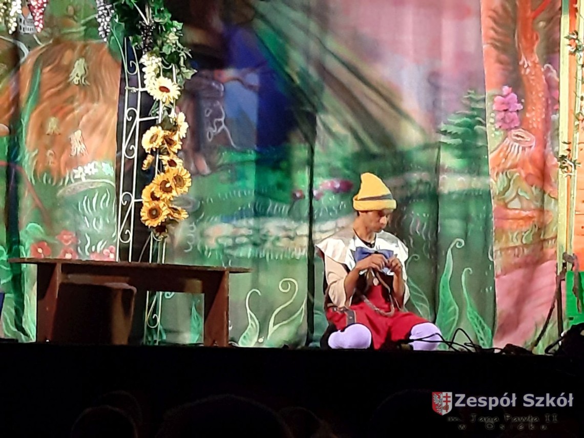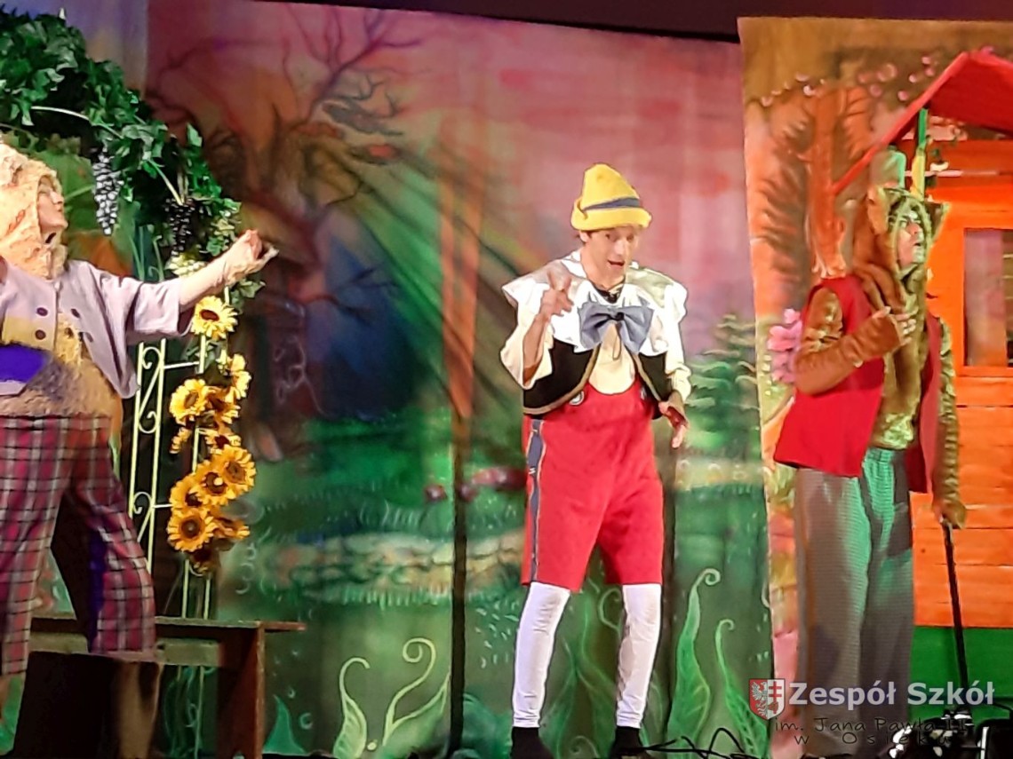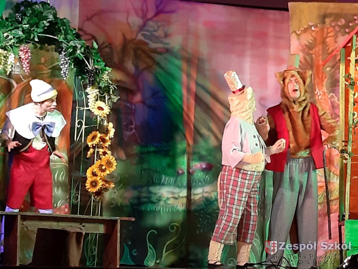 Dnia 12.11.2019r. przedszkolaki z grupy 4, 5 i 6-latków uczestniczyły w wyciecze autokarowej do Staszowa. Celem wycieczki było obejrzenie spektaklu „Pinokio” w wykonaniu profesjonalnych aktorów Katolickiego Teatru Edukacji Pokolenie JP2, rozbudzanie zainteresowań teatralnych dzieci, uczenie się kultury odbioru sztuki. Dzieci obejrzały uroczy, mądry, zabawny i wzruszający spektakl o drewnianym pajacu, który zabiegając o to, by stać się prawdziwym chłopcem przekonał się, że starszym należy się szacunek, że kłamstwo nie popłaca a miłość czyni cuda. Dzieci z zapartym tchem śledziły pełną przygód opowieść o pajacu, który jak nikt dotąd poddał próbie swoją odwagę i lojalność. Przedszkolaki nagrodziły aktorów gromkimi brawami.