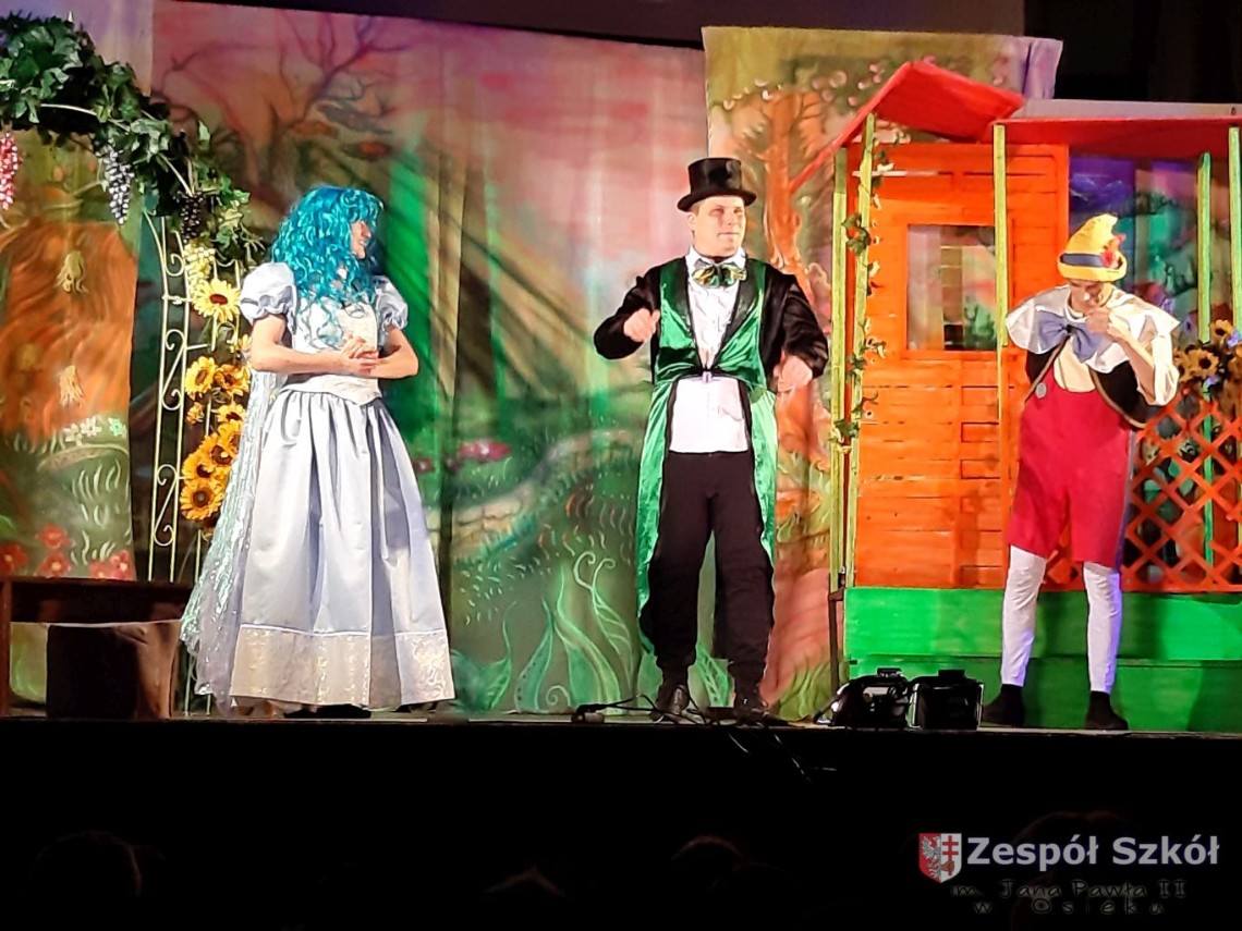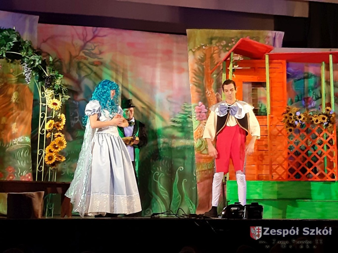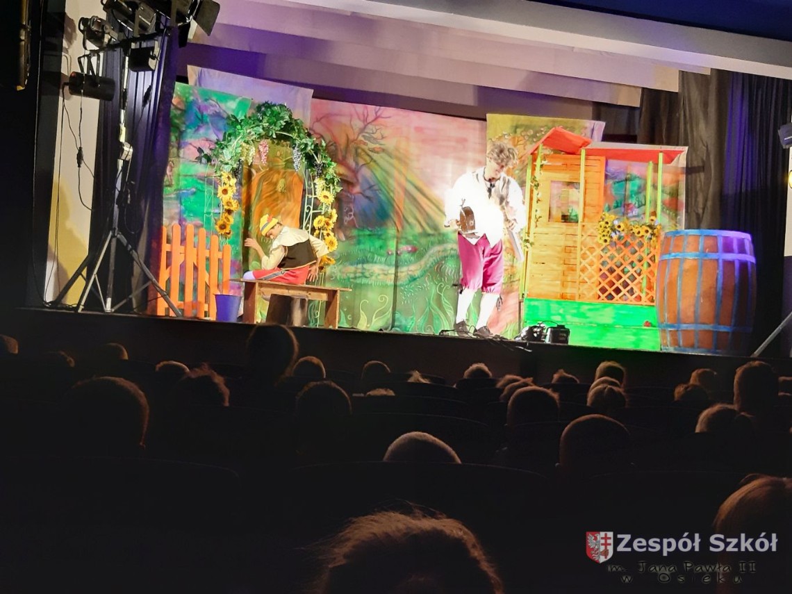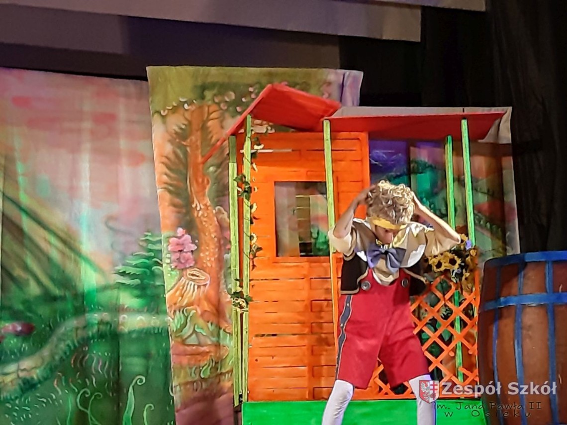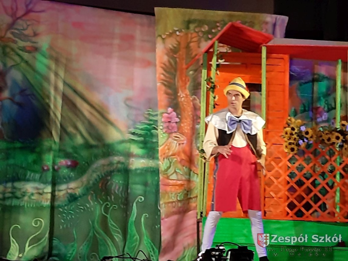 Dnia 12.11.2019r. przedszkolaki z grupy 4, 5 i 6-latków uczestniczyły w wyciecze autokarowej do Staszowa. Celem wycieczki było obejrzenie spektaklu „Pinokio” w wykonaniu profesjonalnych aktorów Katolickiego Teatru Edukacji Pokolenie JP2, rozbudzanie zainteresowań teatralnych dzieci, uczenie się kultury odbioru sztuki. Dzieci obejrzały uroczy, mądry, zabawny i wzruszający spektakl o drewnianym pajacu, który zabiegając o to, by stać się prawdziwym chłopcem przekonał się, że starszym należy się szacunek, że kłamstwo nie popłaca a miłość czyni cuda. Dzieci z zapartym tchem śledziły pełną przygód opowieść o pajacu, który jak nikt dotąd poddał próbie swoją odwagę i lojalność. Przedszkolaki nagrodziły aktorów gromkimi brawami.