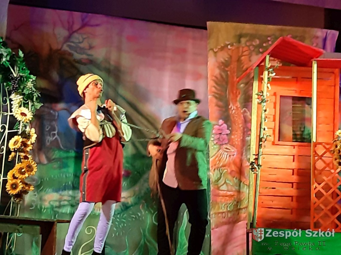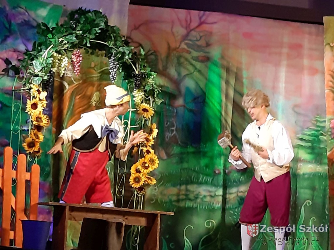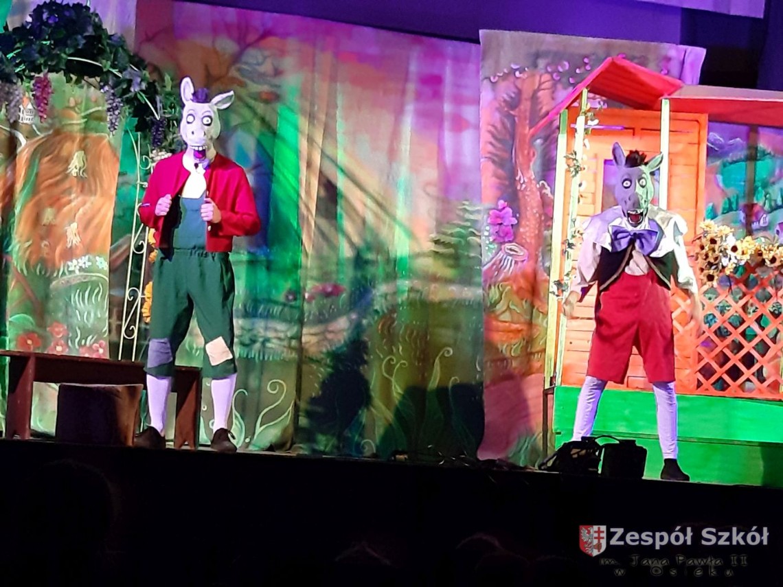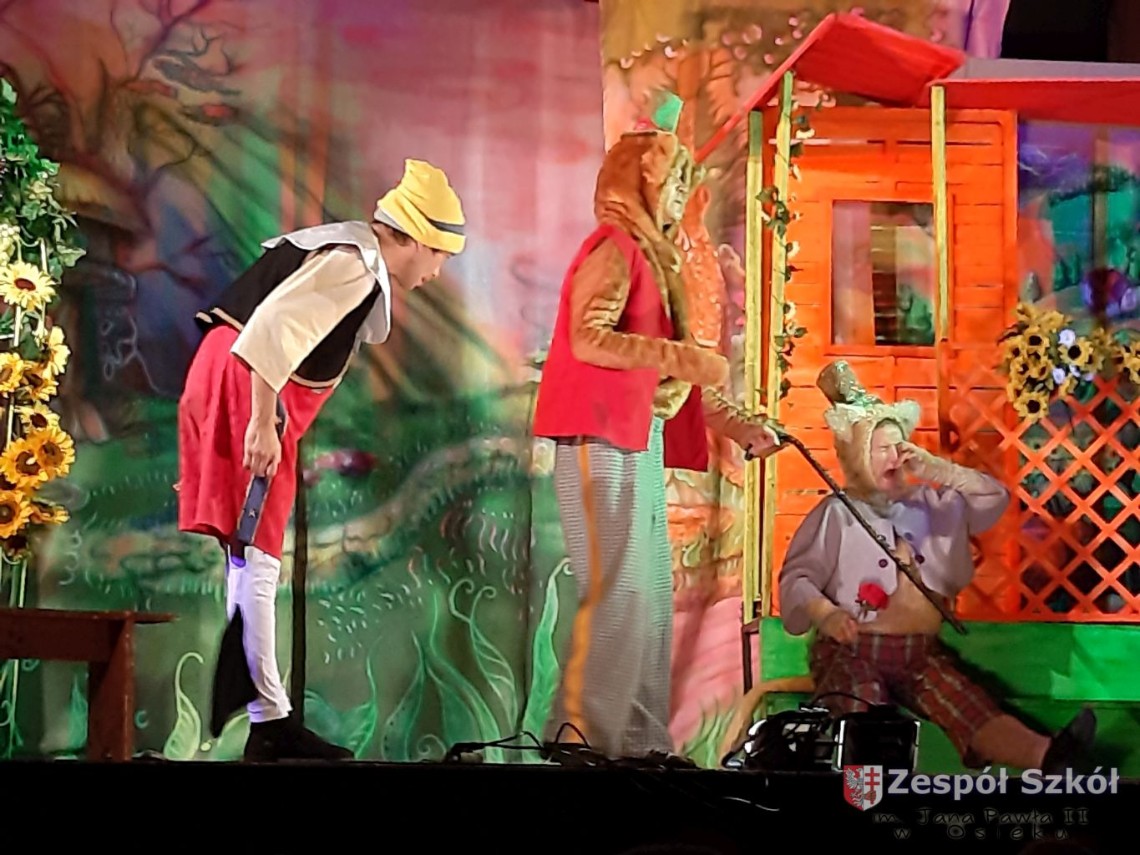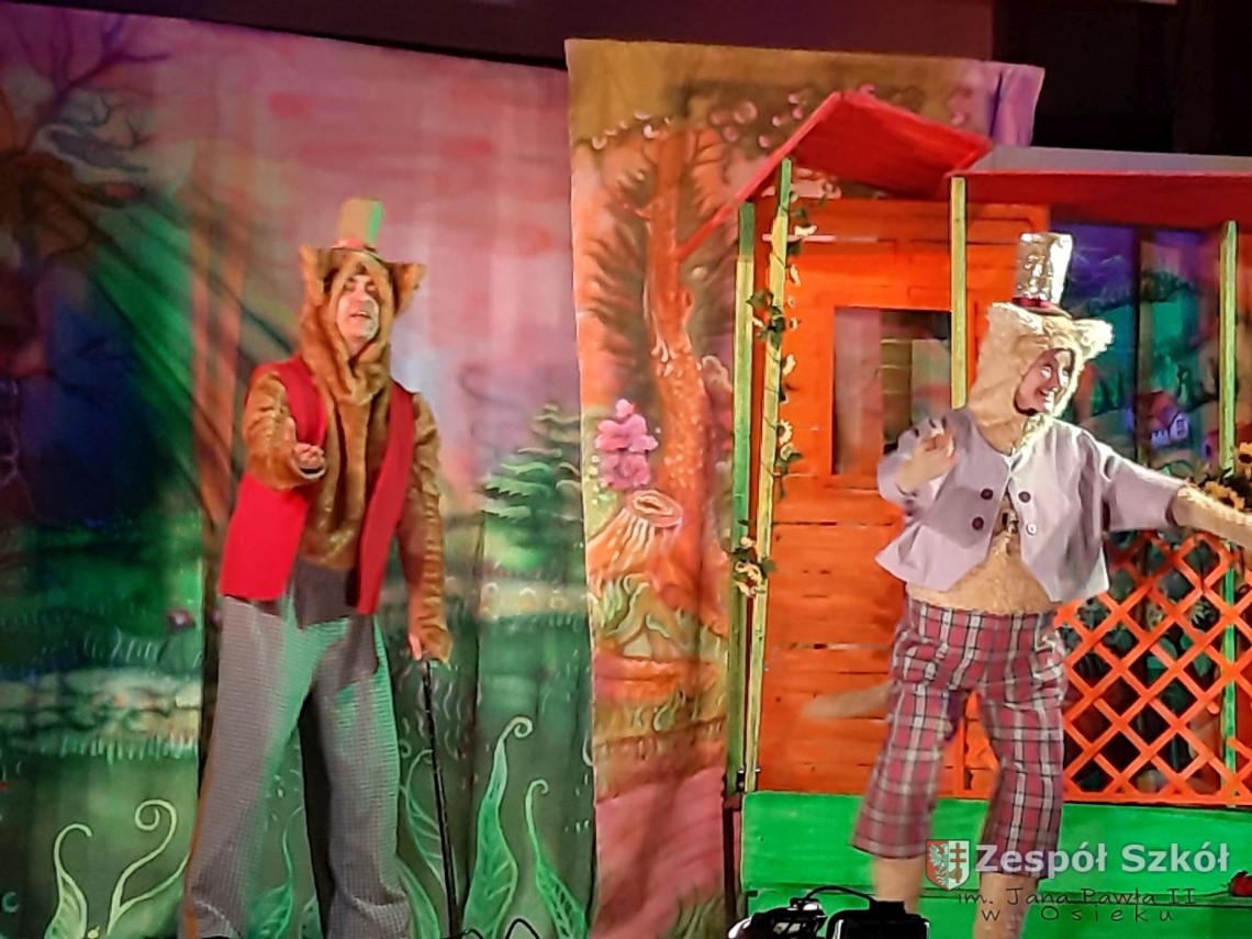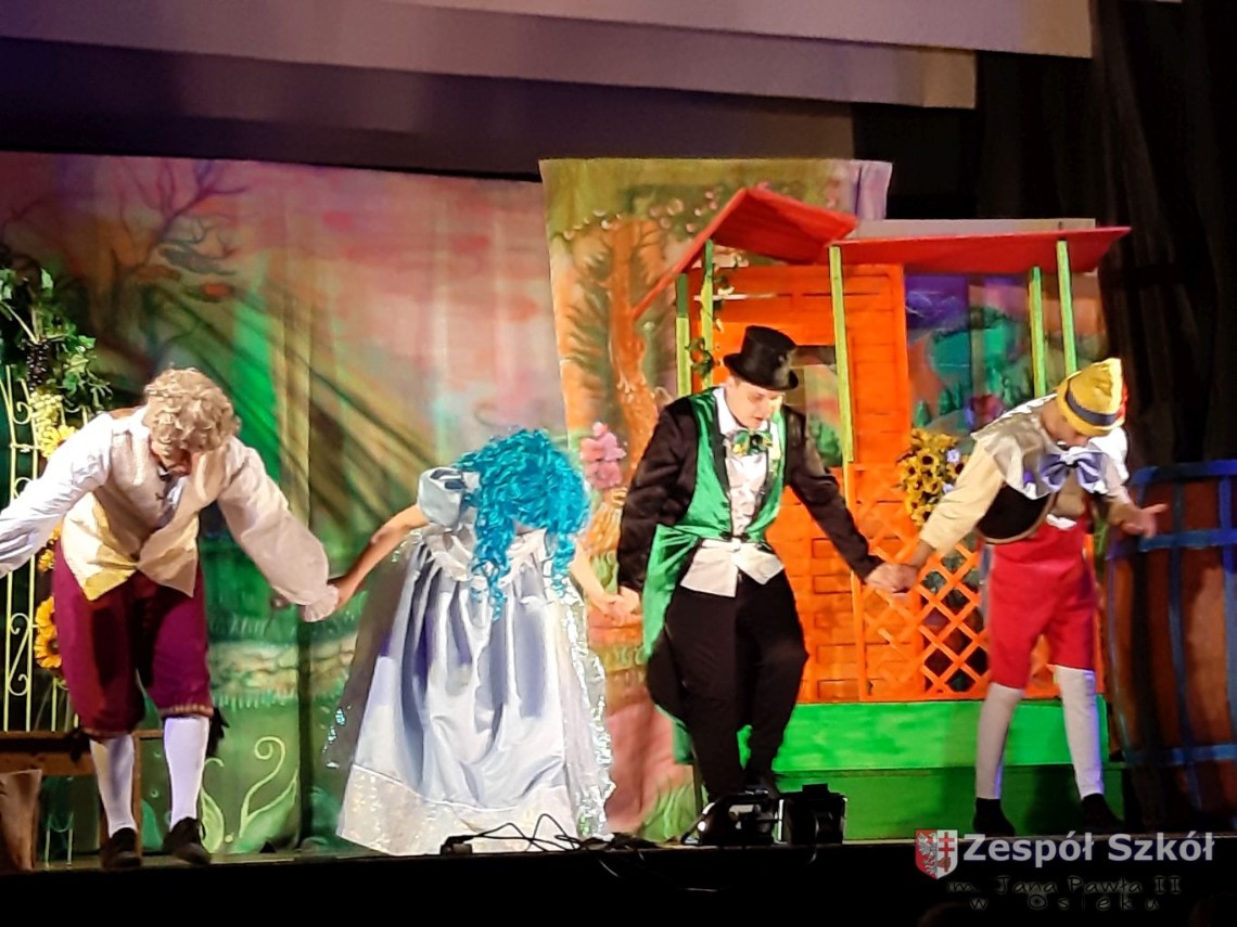 Dnia 12.11.2019r. przedszkolaki z grupy 4, 5 i 6-latków uczestniczyły w wyciecze autokarowej do Staszowa. Celem wycieczki było obejrzenie spektaklu „Pinokio” w wykonaniu profesjonalnych aktorów Katolickiego Teatru Edukacji Pokolenie JP2, rozbudzanie zainteresowań teatralnych dzieci, uczenie się kultury odbioru sztuki. Dzieci obejrzały uroczy, mądry, zabawny i wzruszający spektakl o drewnianym pajacu, który zabiegając o to, by stać się prawdziwym chłopcem przekonał się, że starszym należy się szacunek, że kłamstwo nie popłaca a miłość czyni cuda. Dzieci z zapartym tchem śledziły pełną przygód opowieść o pajacu, który jak nikt dotąd poddał próbie swoją odwagę i lojalność. Przedszkolaki nagrodziły aktorów gromkimi brawami.