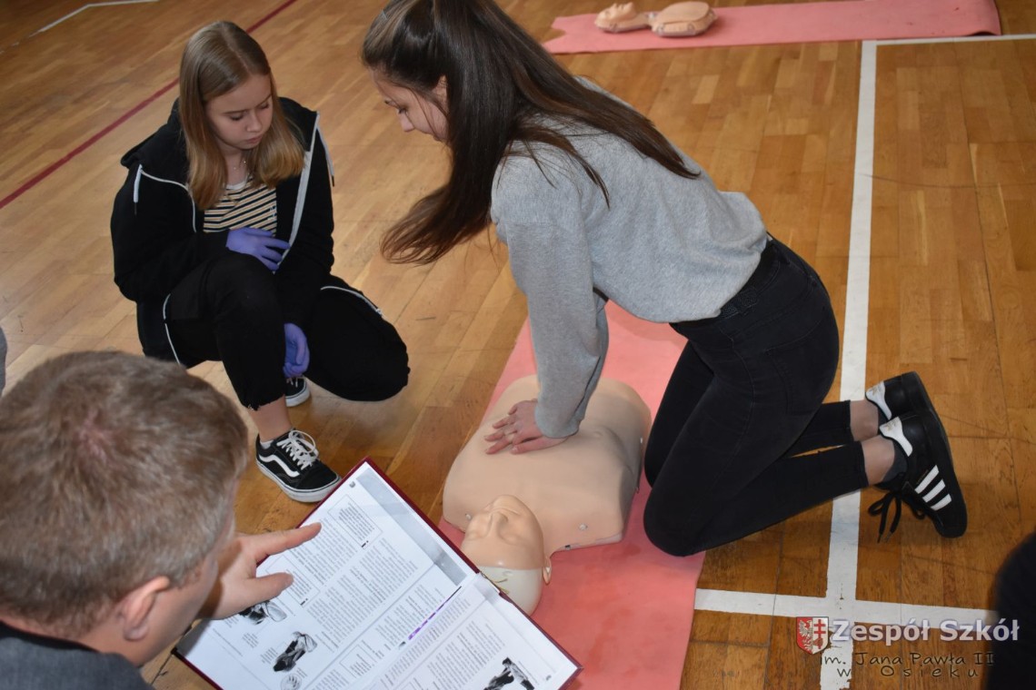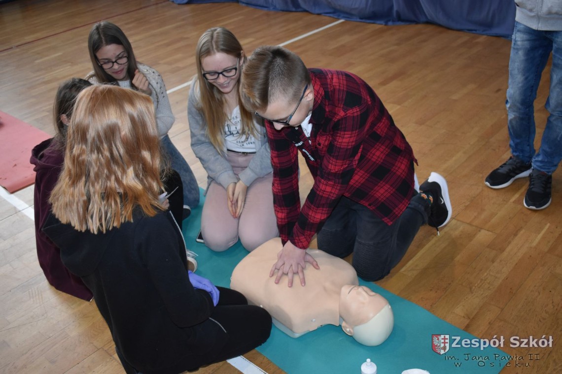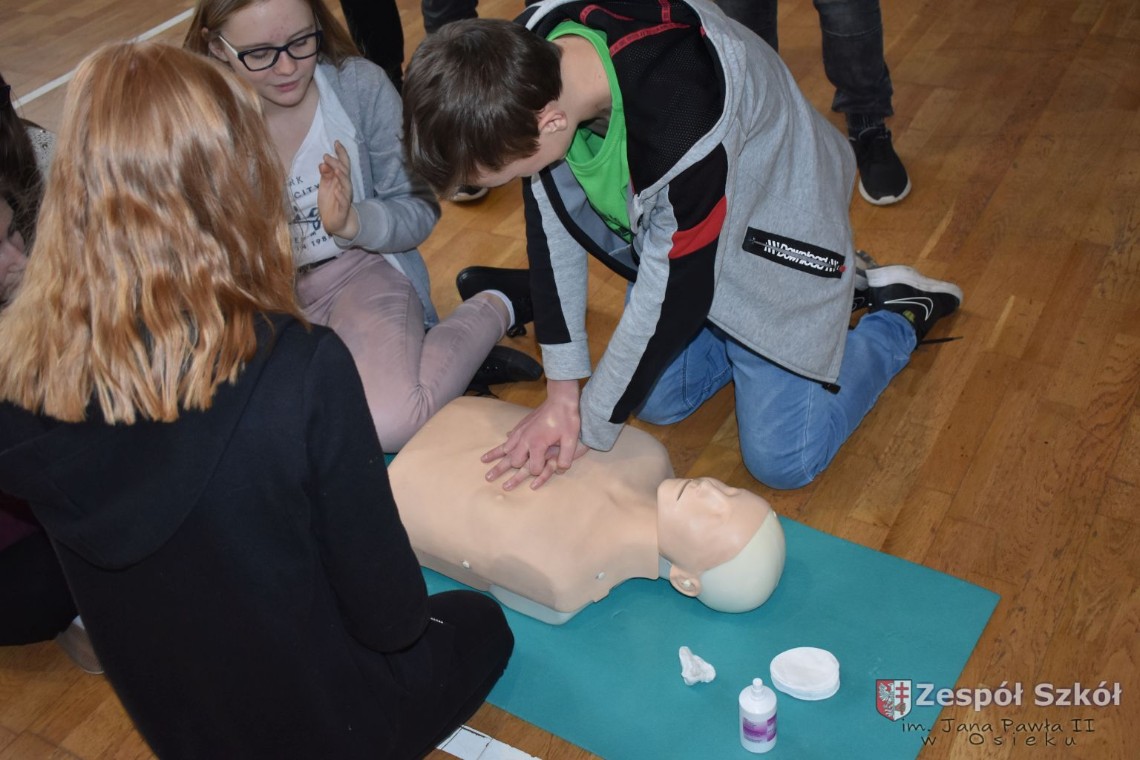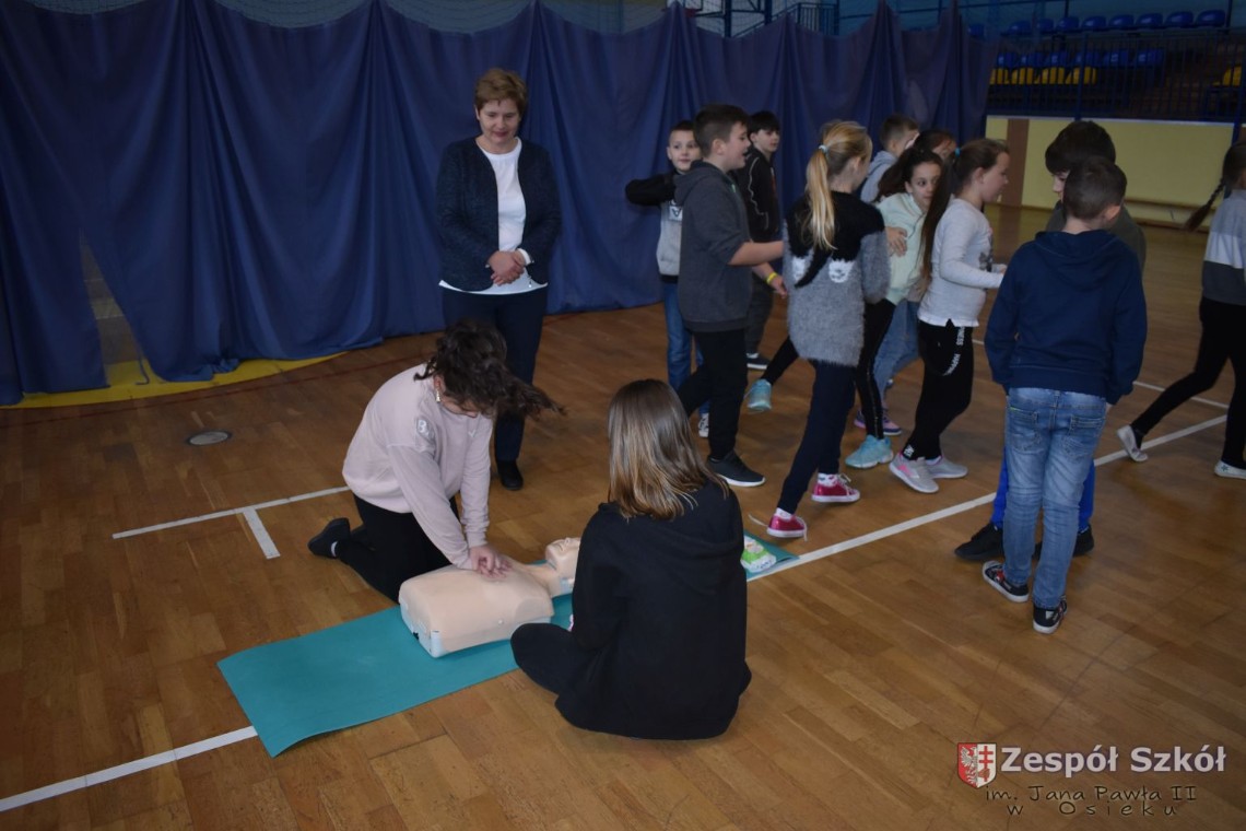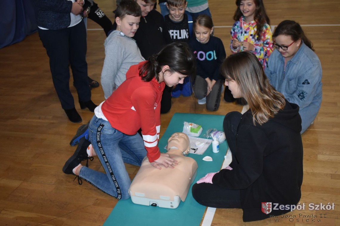 W ramach Europejskiego Dnia Przywracania Czynności Serca w Zespole Szkół im. Jana Pawła II w Osieku w pokazach i ćwiczeniach prawidłowej resuscytacji na fantomach uczestniczyli: Dyrekcja szkoły, nauczyciele i uczniowie klas I –VIII szkoły podstawowej. Reakcja w sytuacji nagłego zdarzenia jest naszym obowiązkiem, ale powinna stać się także zwykłym odruchem.