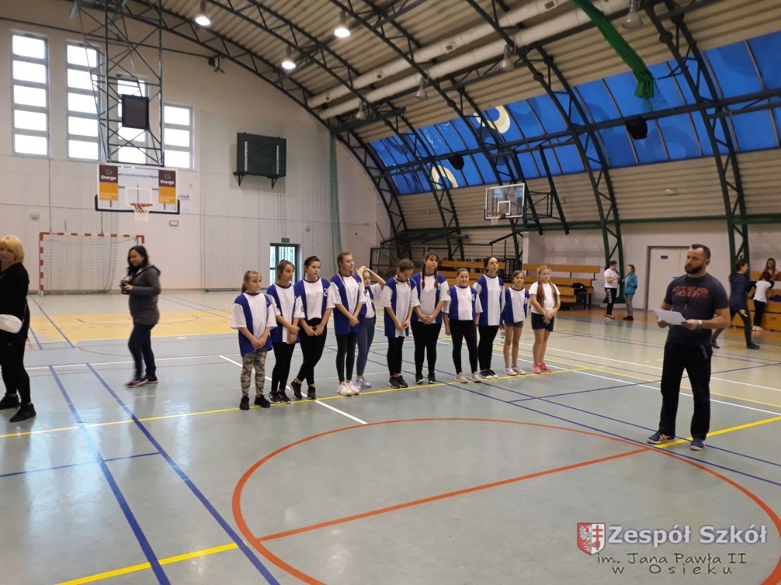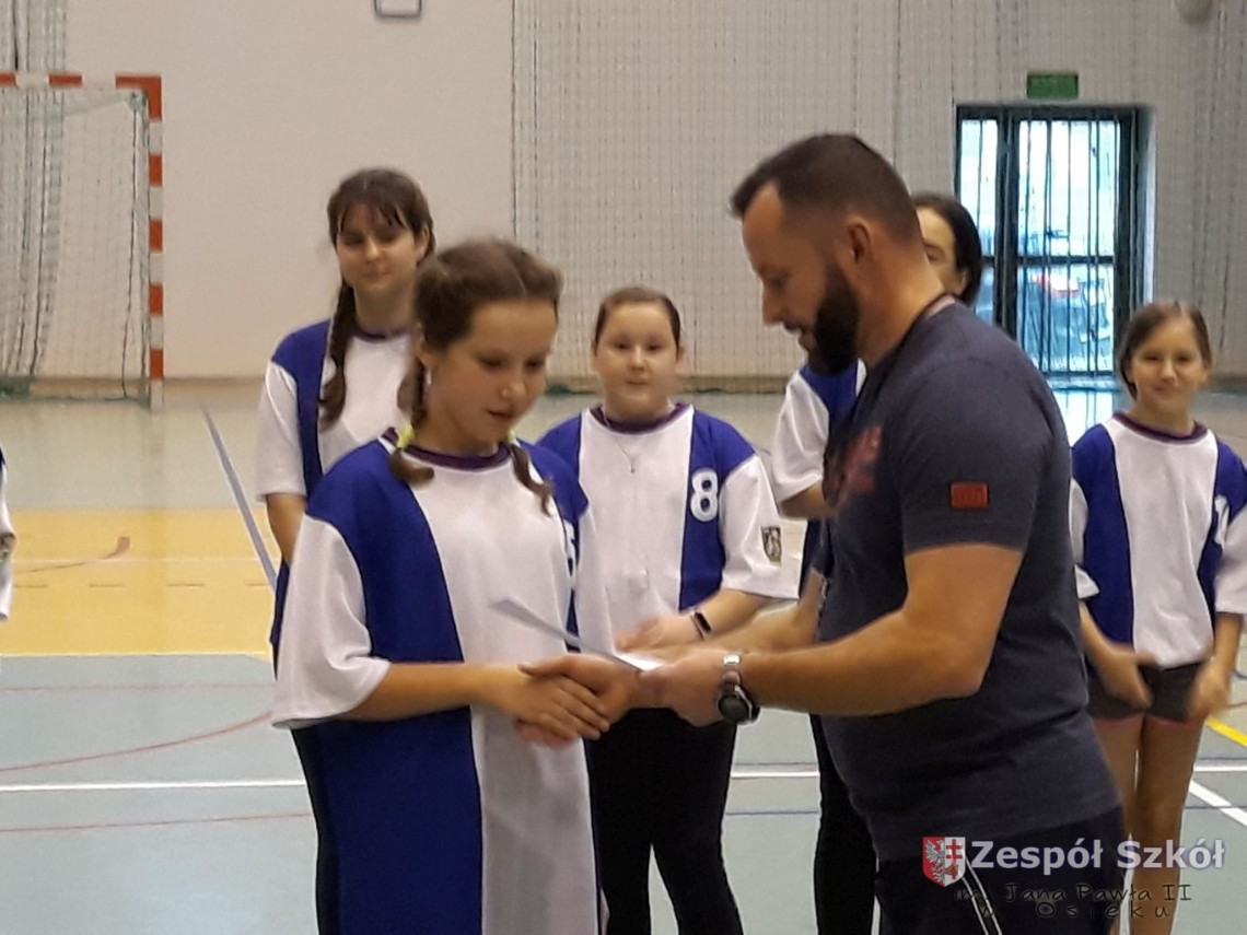 Nasze koszykarki zagrały ambitnie, z radością, bez tremy. Gra jest dla nich przyjemnością. Trenuje ich 18 lecz zagrać mogło tylko 11. Pozostałe koleżanki dopingowały je osobiście. Tak więc podtrzymujemy tradycję koszykarską w naszej szkole.