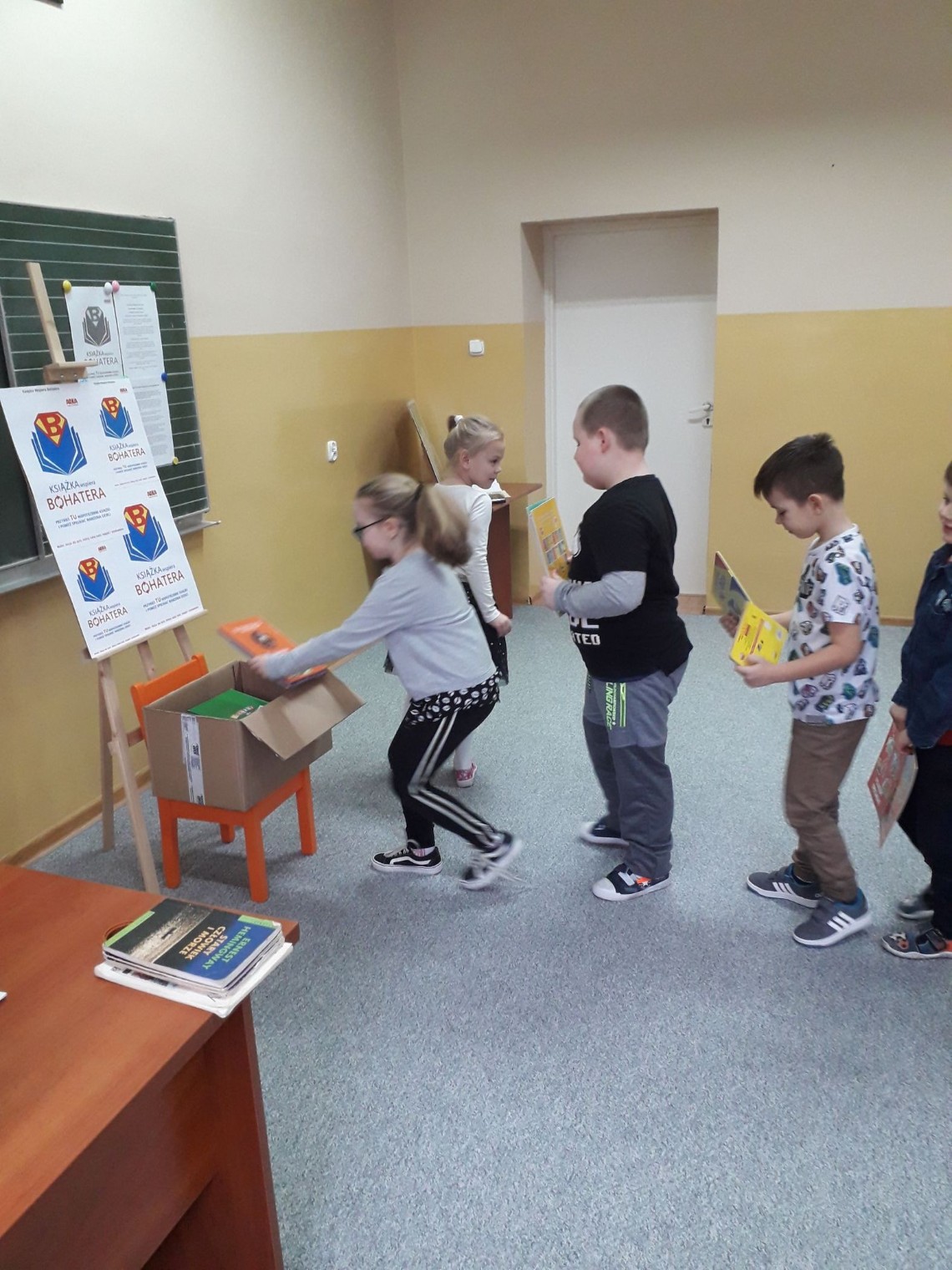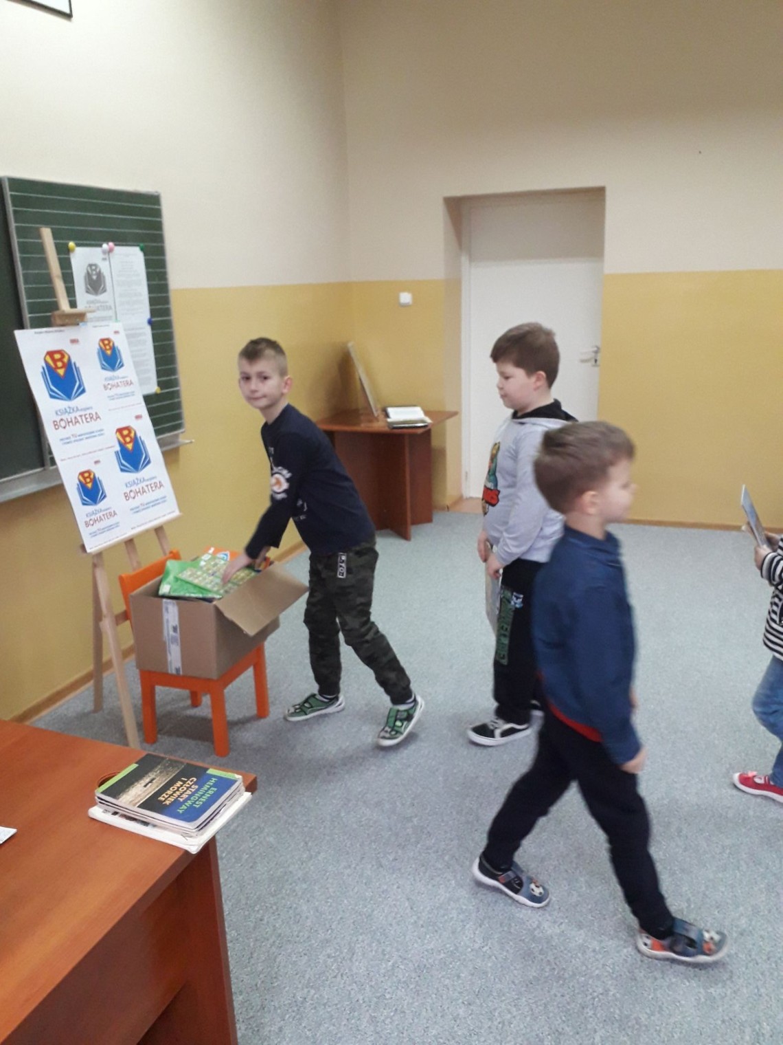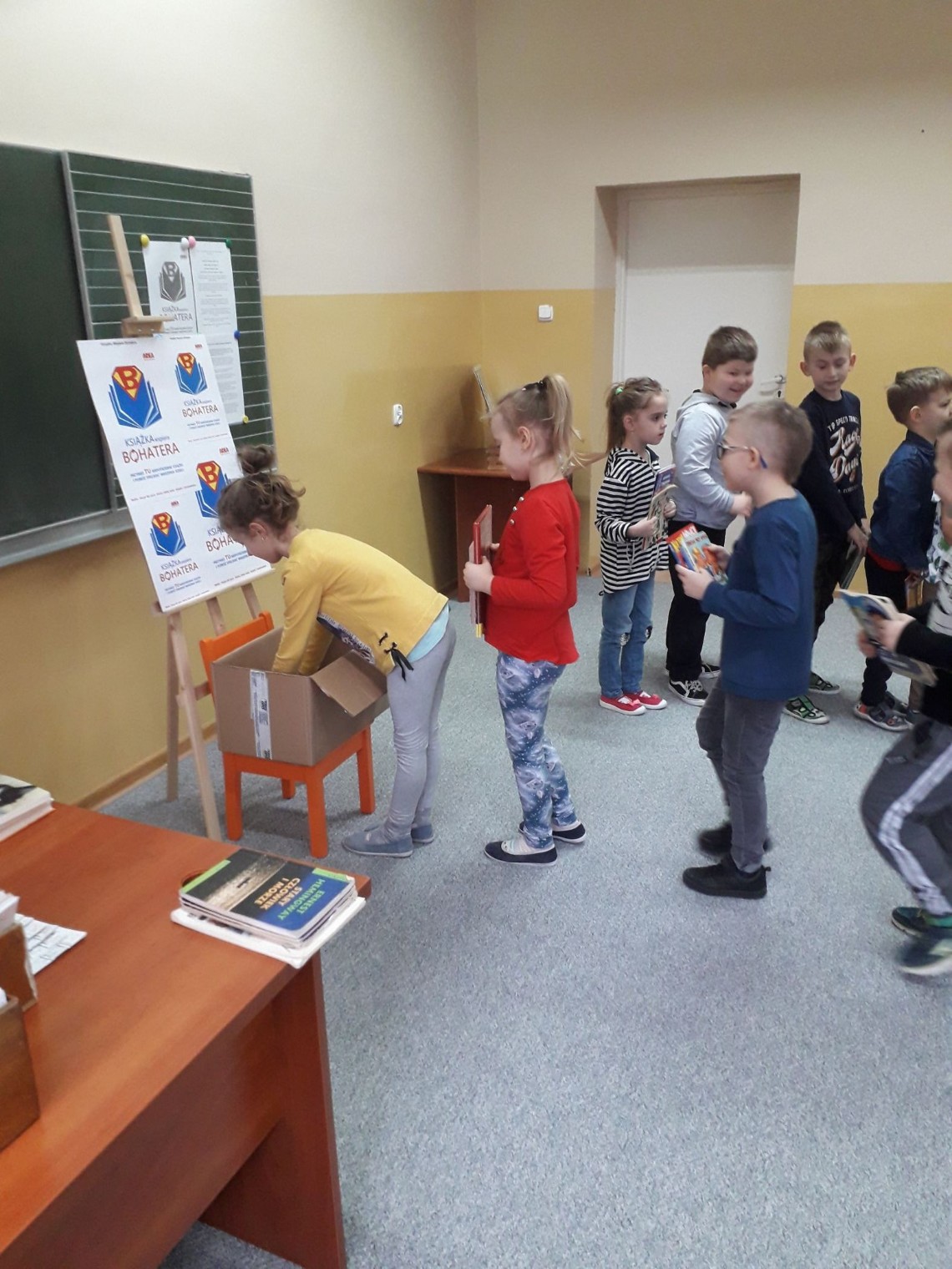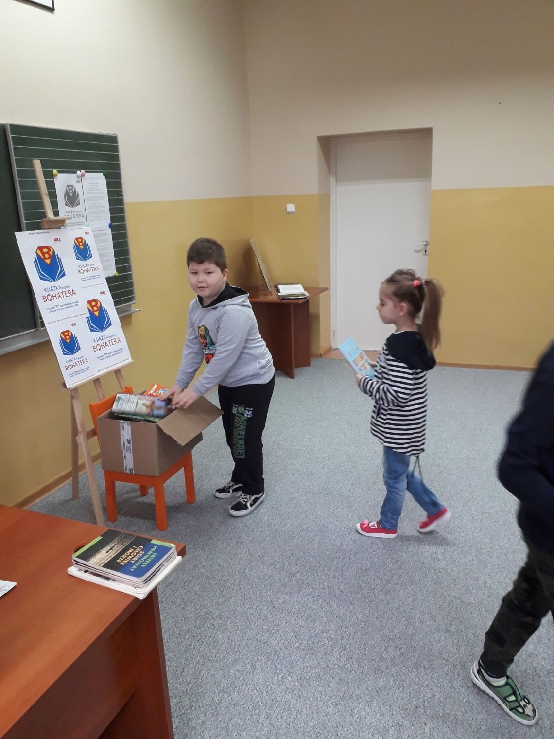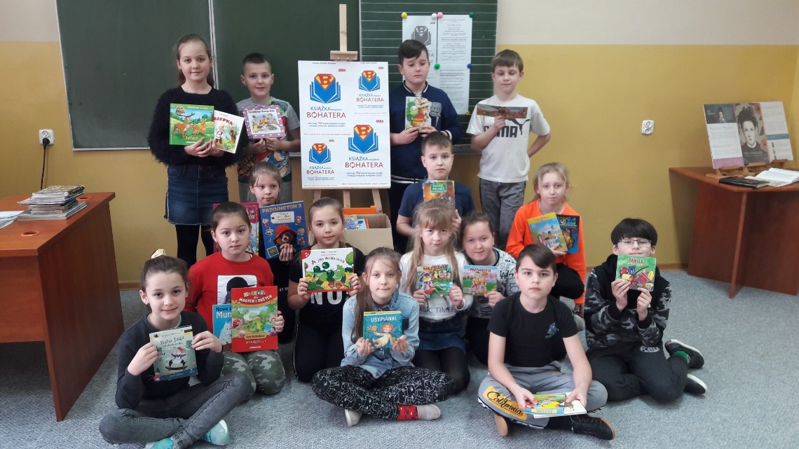 „Książka wspiera bohatera” to nowa inicjatywa fundacji, która łączy w sobie kilka aspektów: ochronę środowiska, edukację kulturalną i pomoc społeczną. Uczniowie naszej szkoły angażując się w akcję, pokazali jak wiele można uczynić dla innych. Szczególnie mocno zaangażowały się klasy Ia z wych. M. Gawłowicz, IIIa z wych. R. Gazdecką, IIIb z wych. M. Sucharzewską, IV z wych. M. Łysiak i Vb z wych. E. Świątkiewicz-Maj.