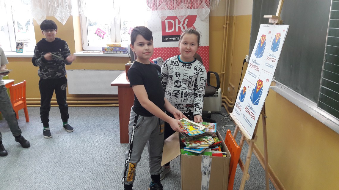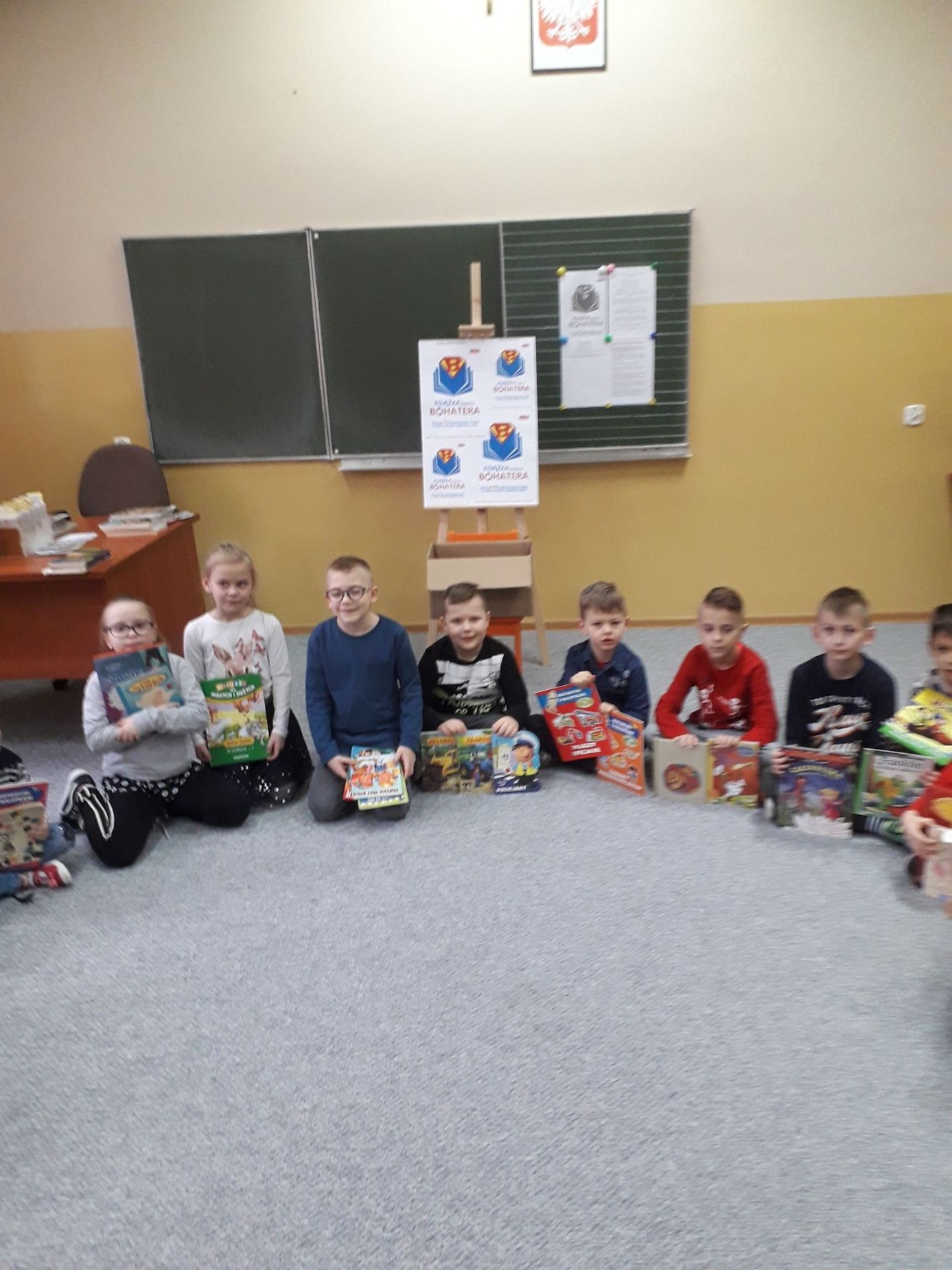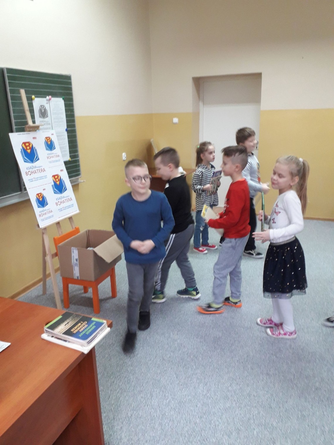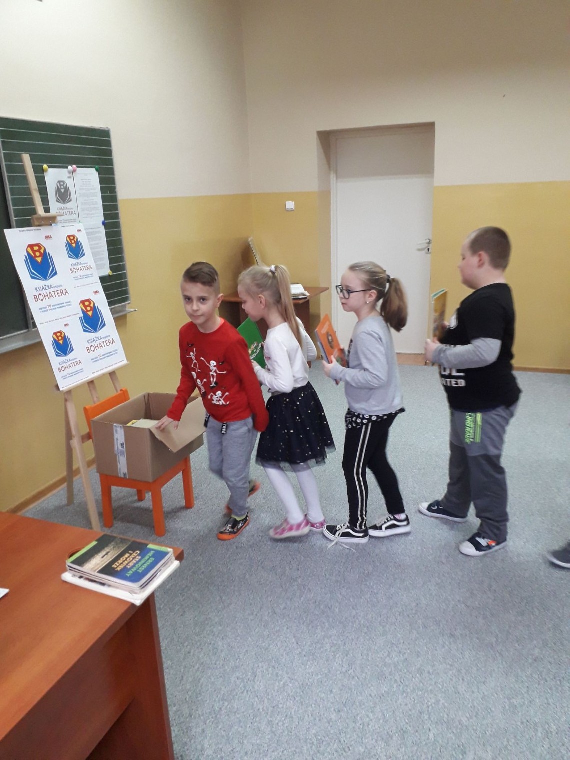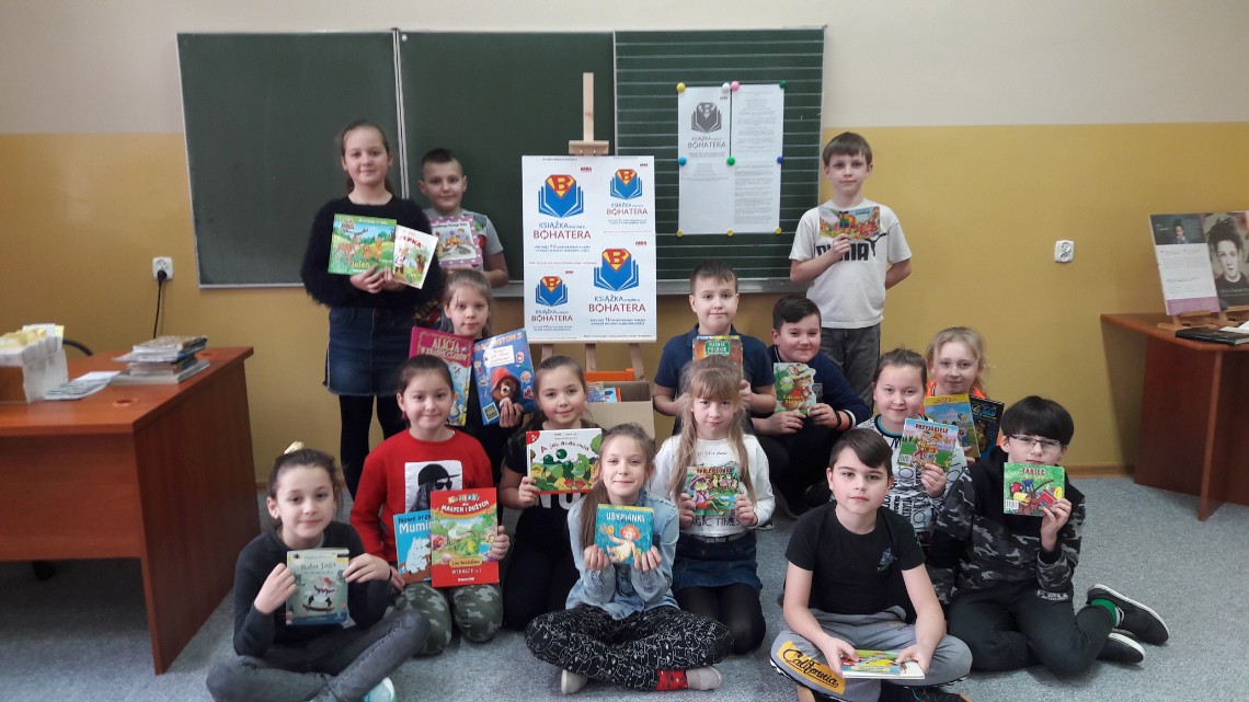 „Książka wspiera bohatera” to nowa inicjatywa fundacji, która łączy w sobie kilka aspektów: ochronę środowiska, edukację kulturalną i pomoc społeczną. Uczniowie naszej szkoły angażując się w akcję, pokazali jak wiele można uczynić dla innych. Szczególnie mocno zaangażowały się klasy Ia z wych. M. Gawłowicz, IIIa z wych. R. Gazdecką, IIIb z wych. M. Sucharzewską, IV z wych. M. Łysiak i Vb z wych. E. Świątkiewicz-Maj.